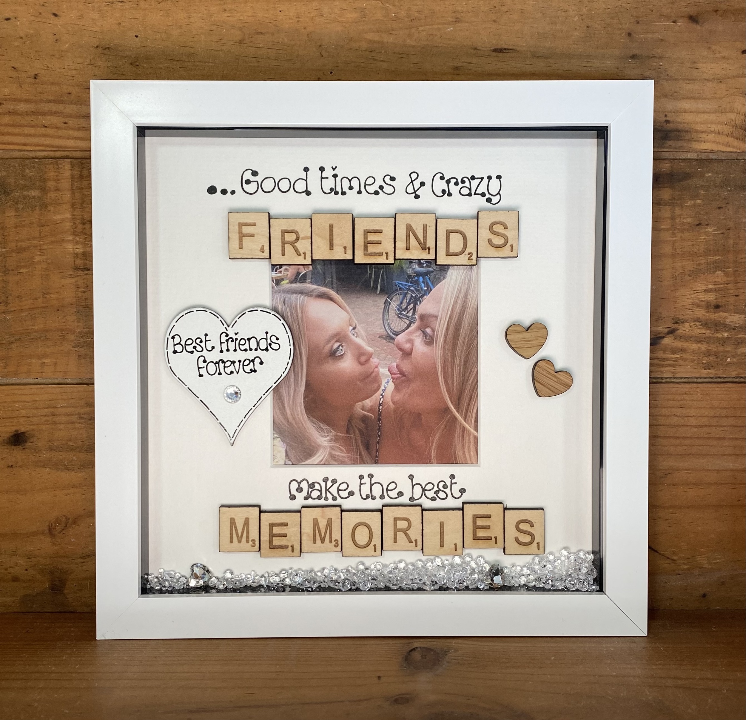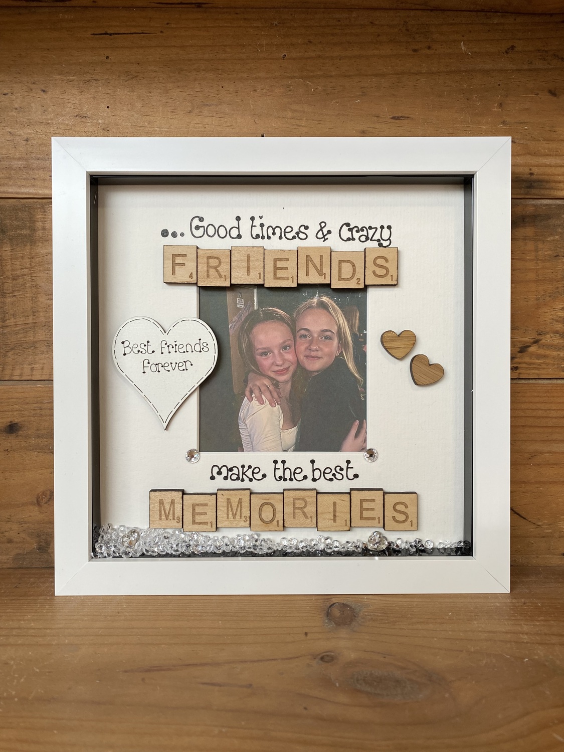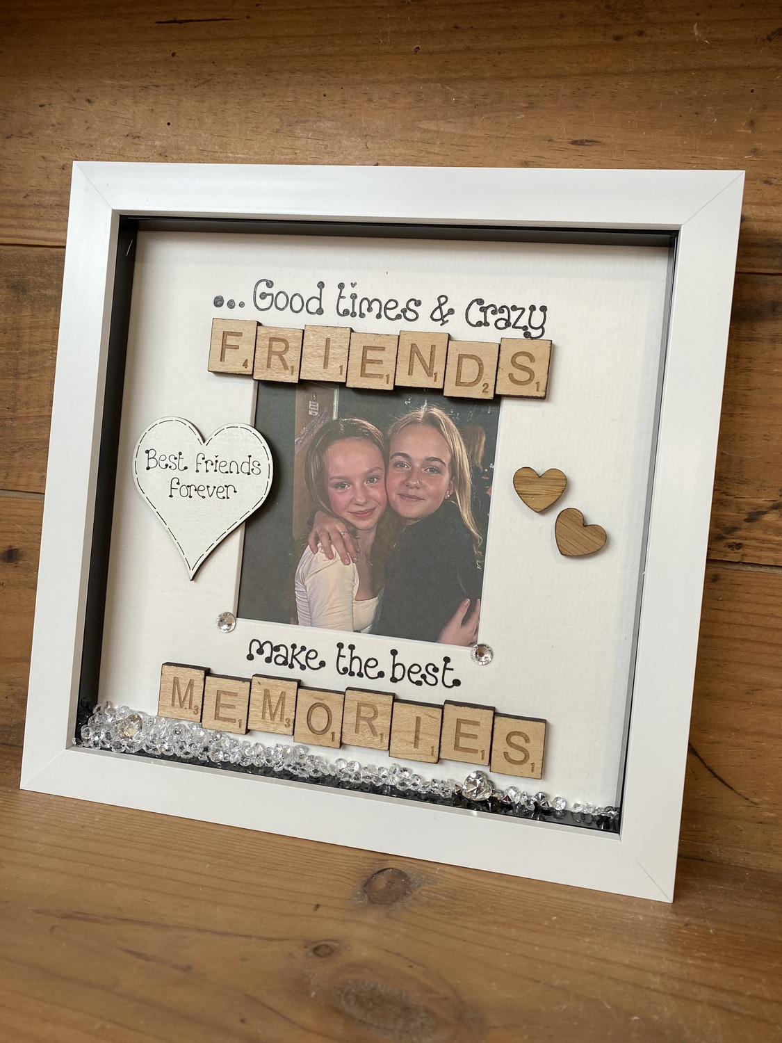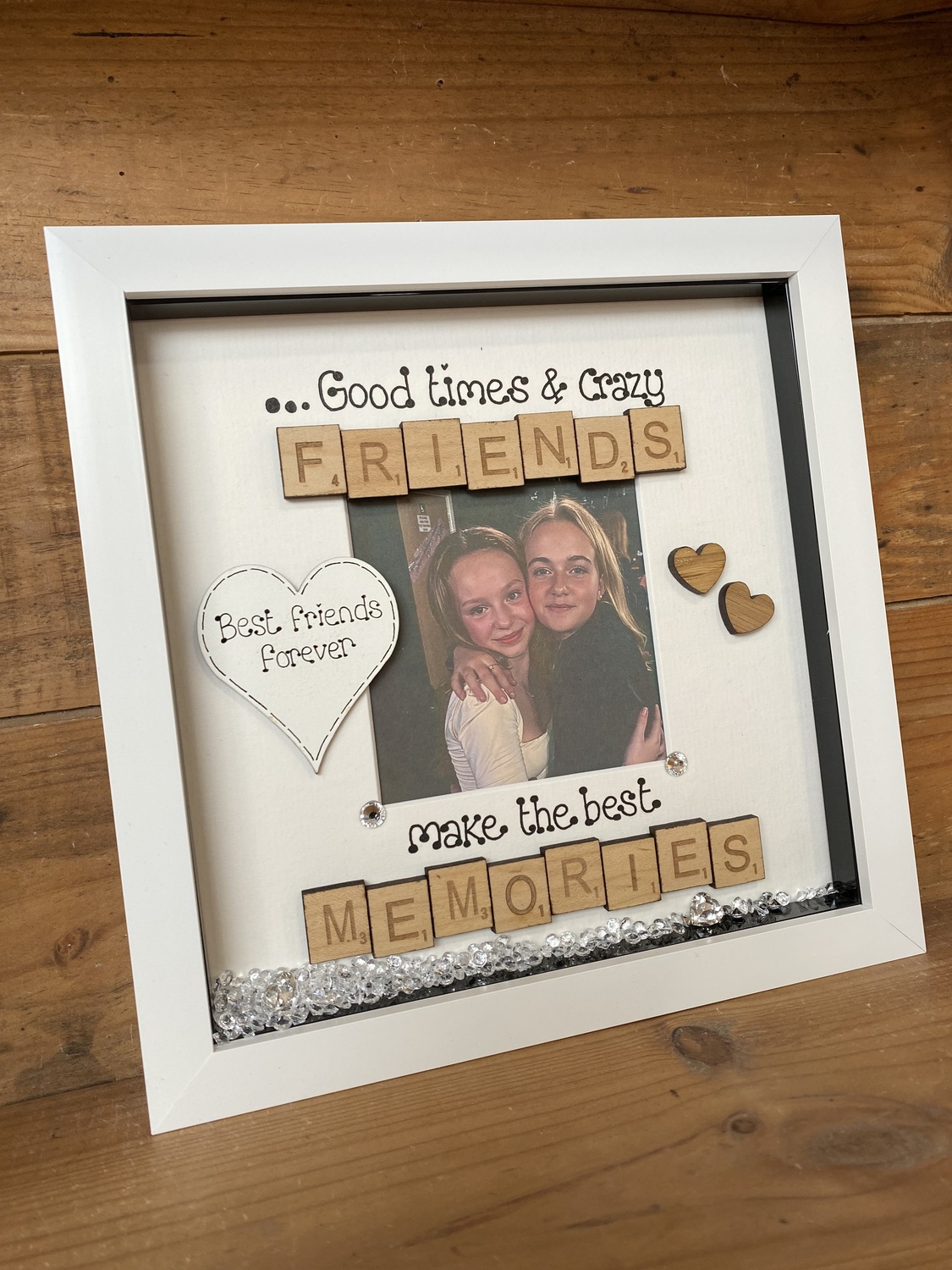 Embellished with scrabble tiles , oak hearts and diamanté’s