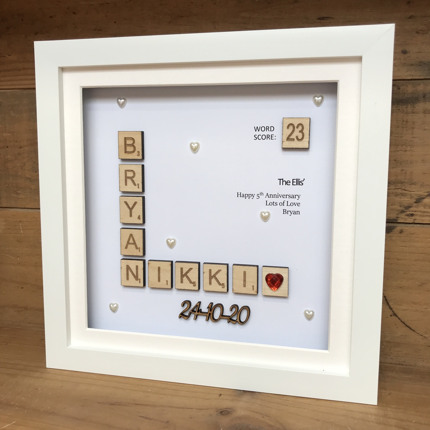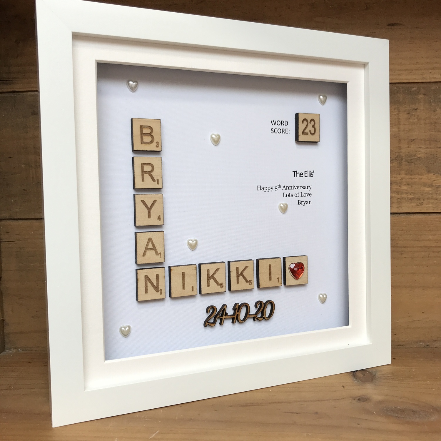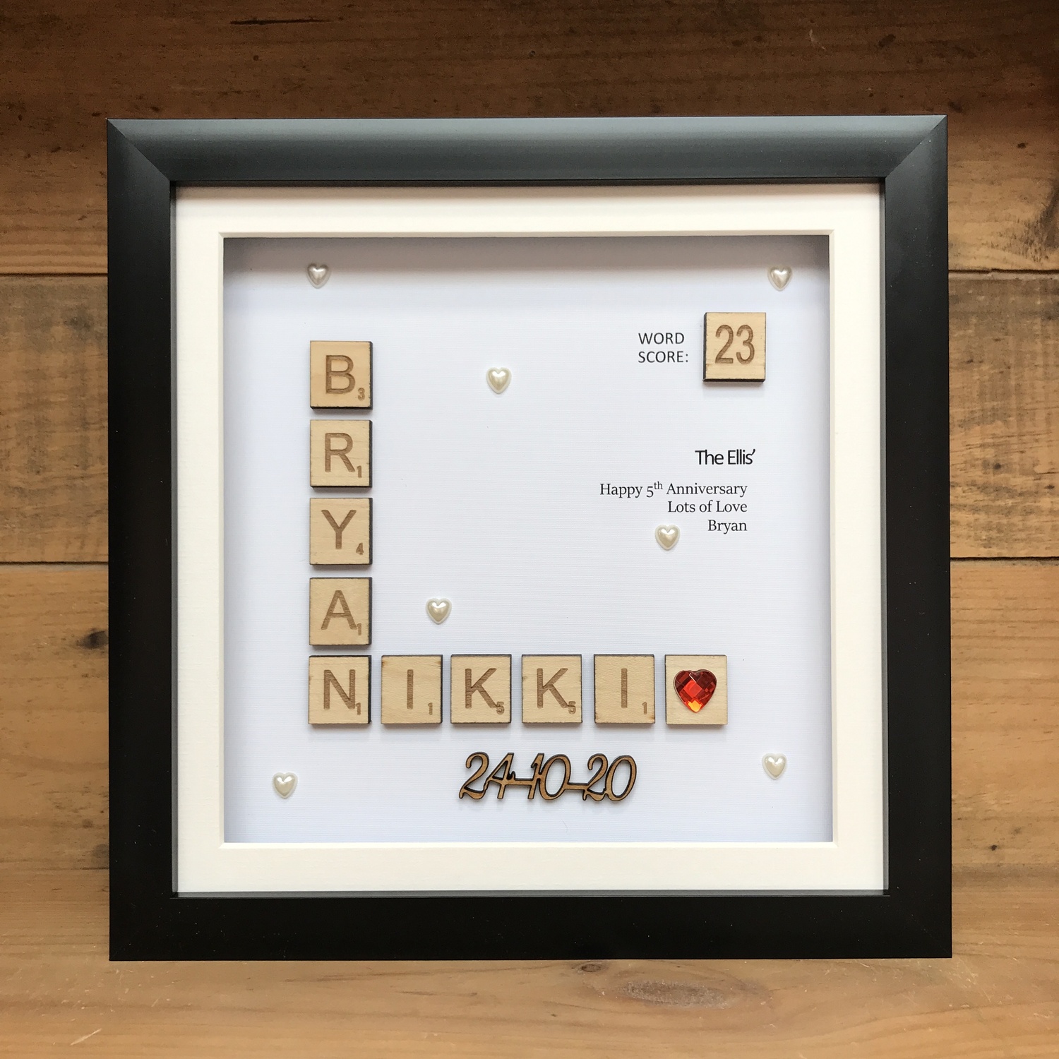 Create a memorable gift from Scrabble letter tiles! Your points will come from how many your names add up to You can also leave a message to appear in the bottom corner, so add a family motto or favourite motivational quote which will be accompanied by your overall word score printed on its own tile.