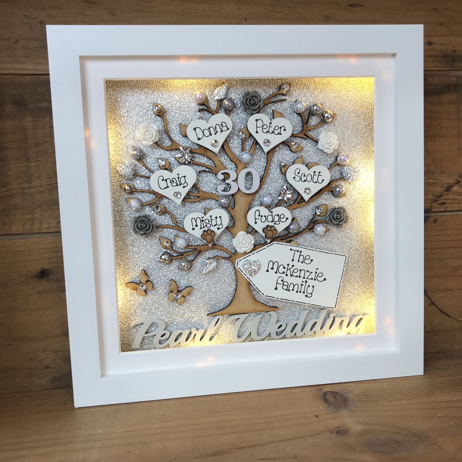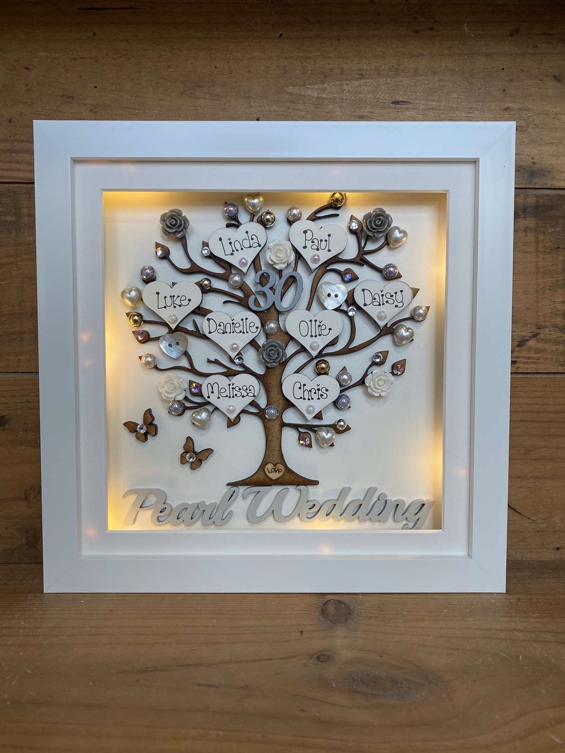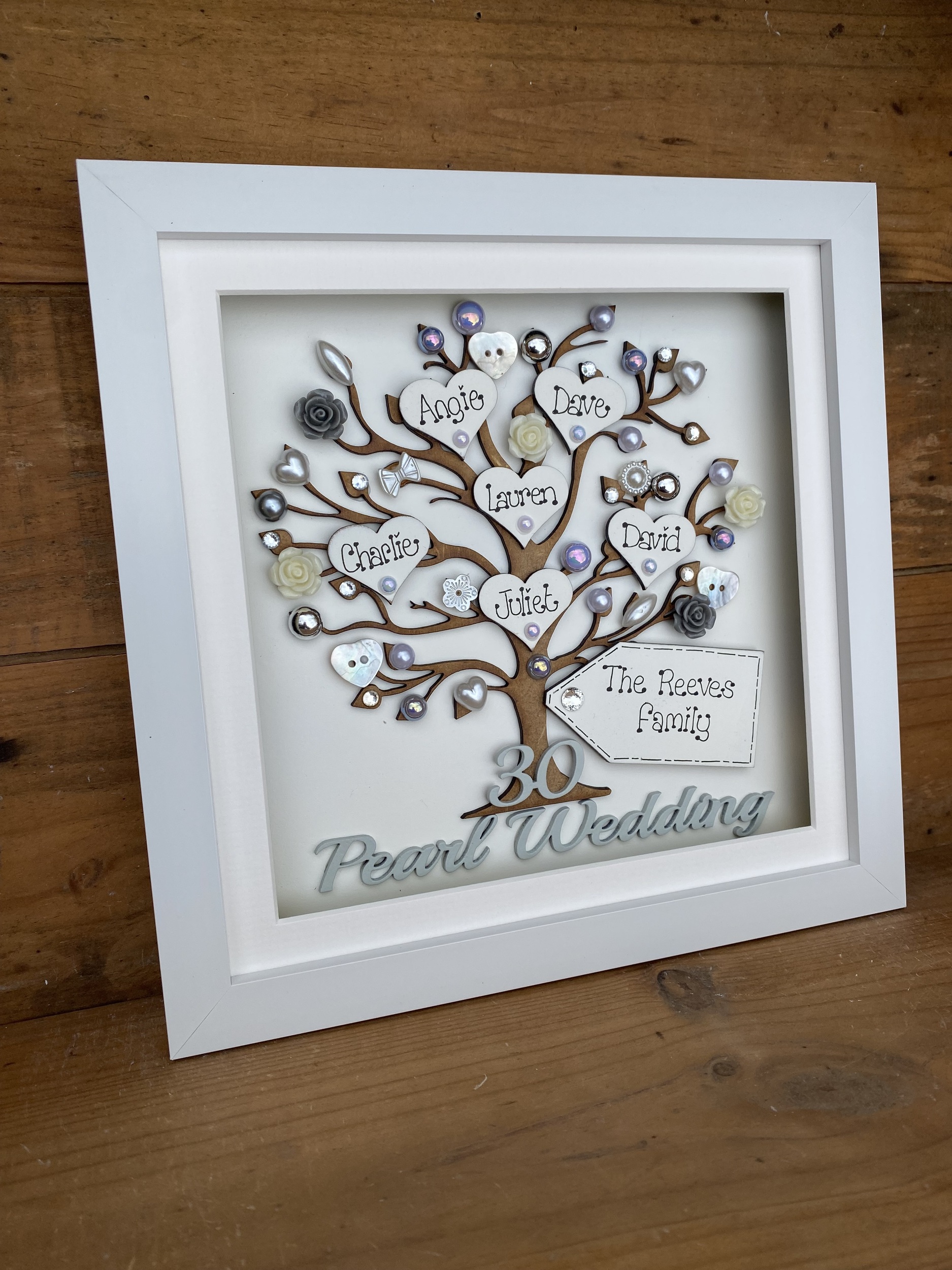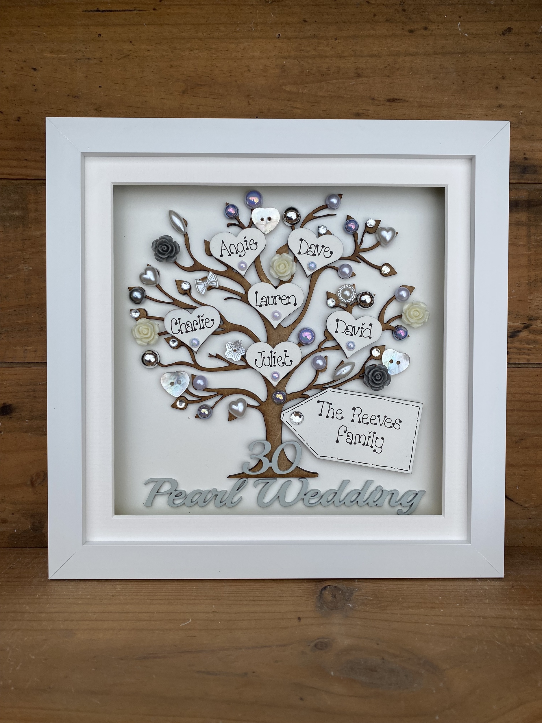 The frame can be made to match your wedding colours or home décor and I can bling it up as much or as little as you like