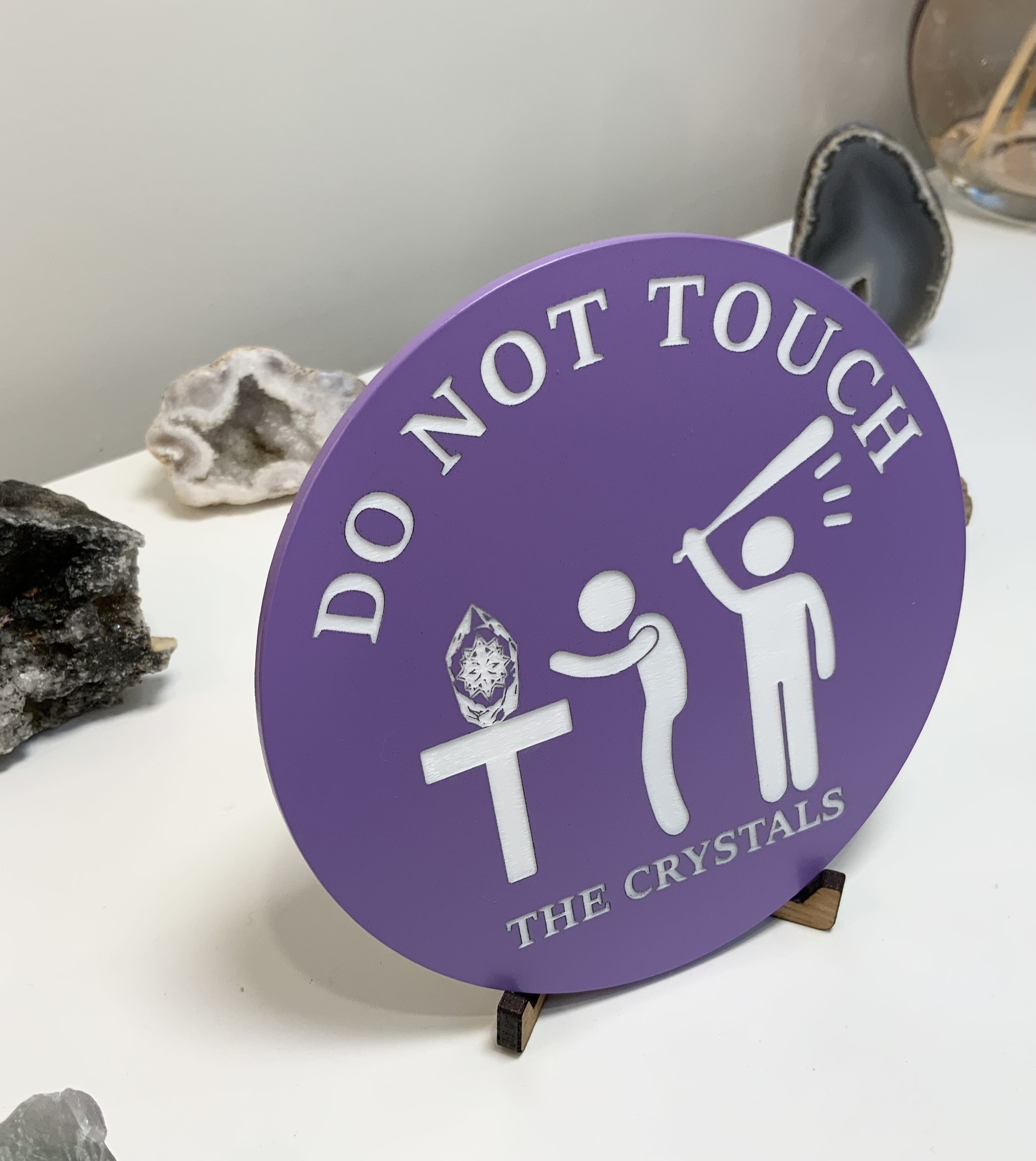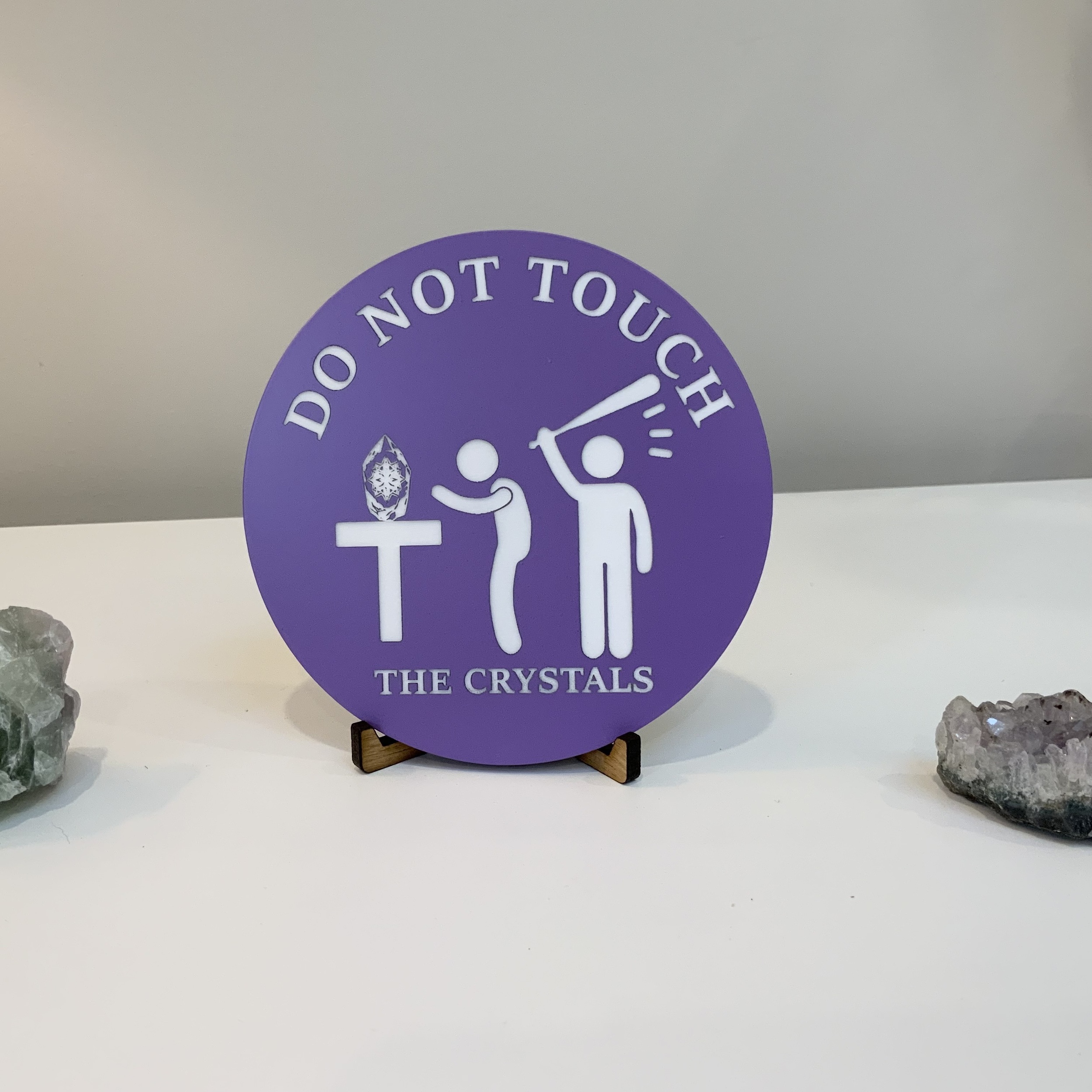 Keep your crystals safe and your vibes high with this cheeky acrylic sign. Whether you’re a crystal queen or just tired of sticky fingers near your sacred stash, this novelty piece says it loud and clear.