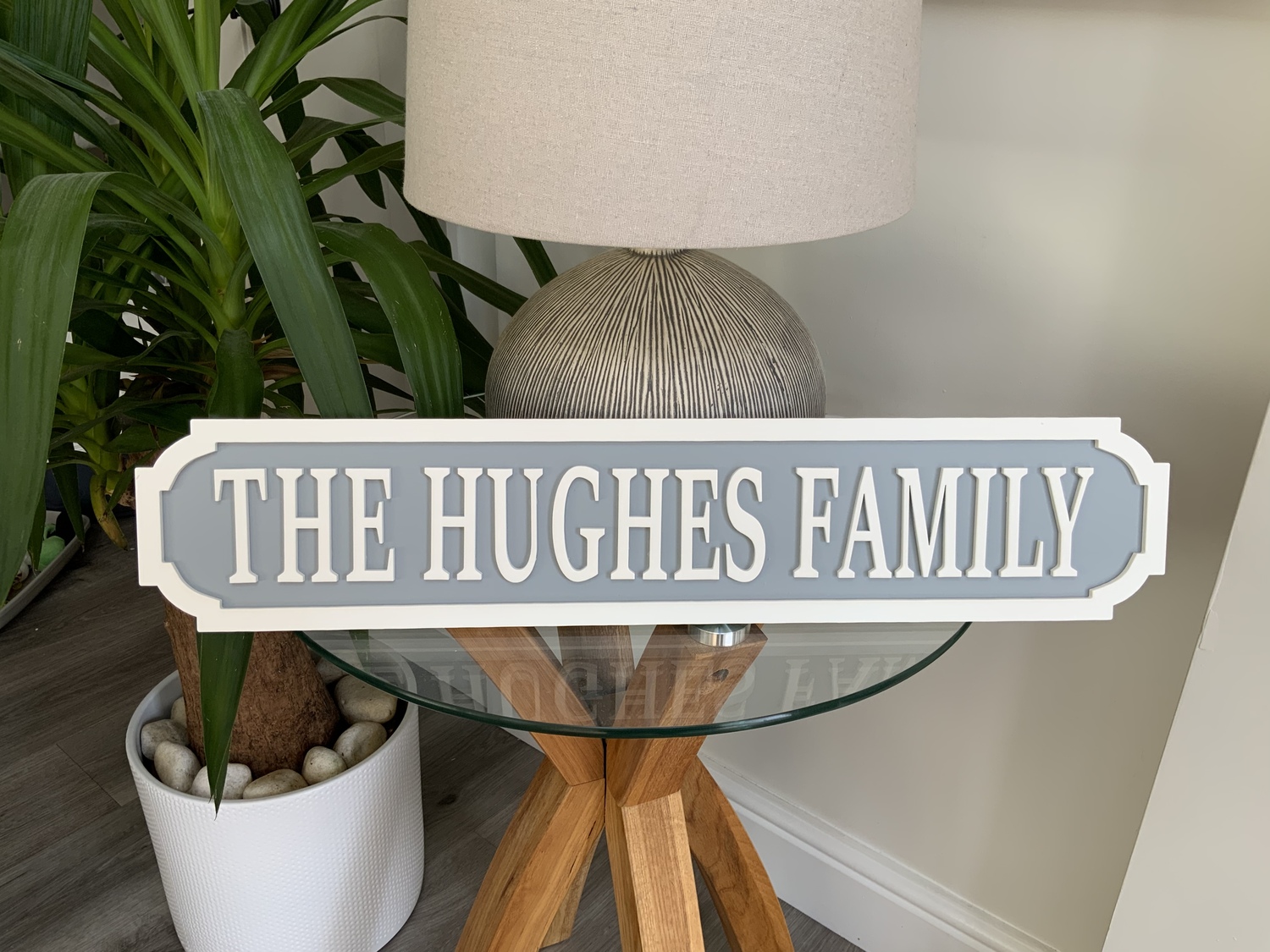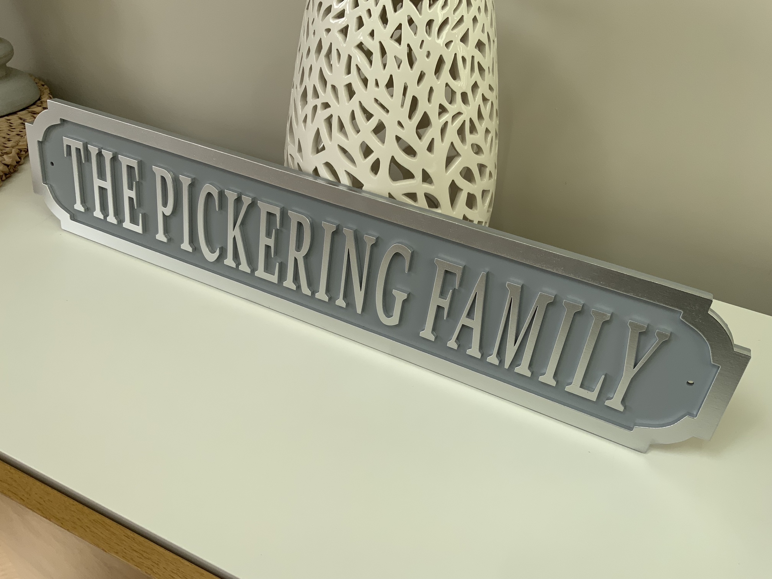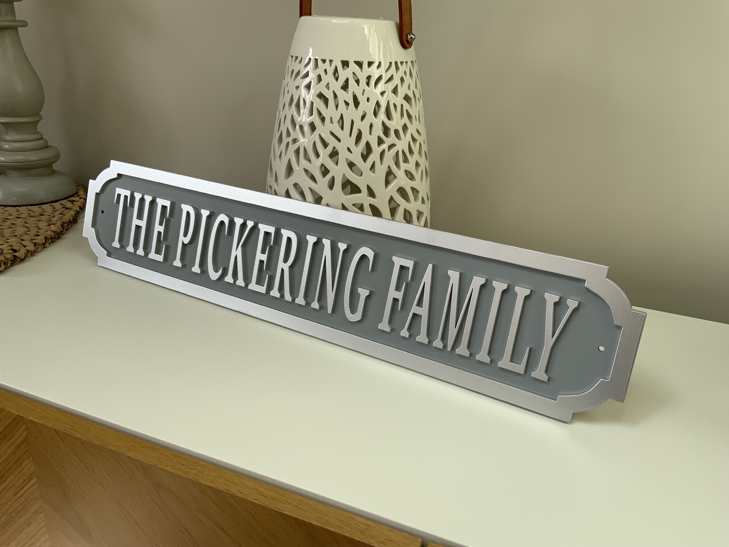 - Large:* approx. 60cm x 12cm, personalised with up to two lines of text.