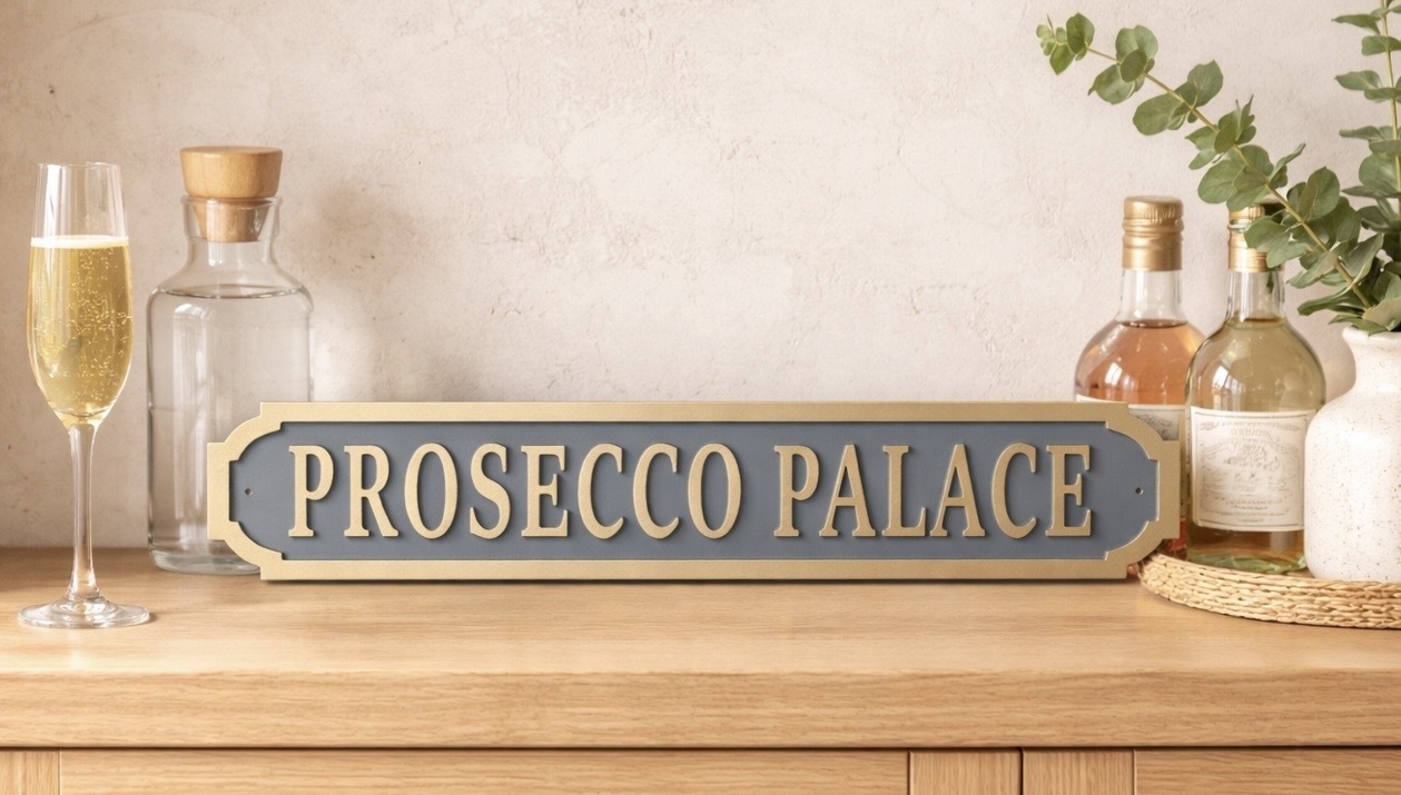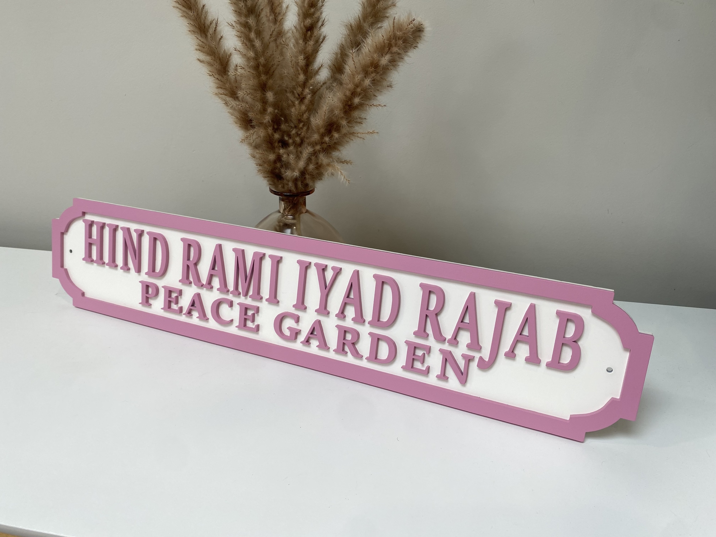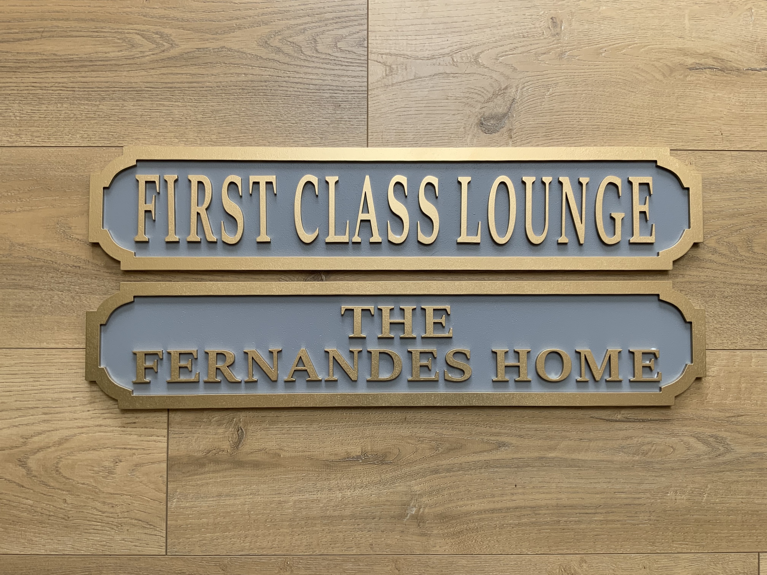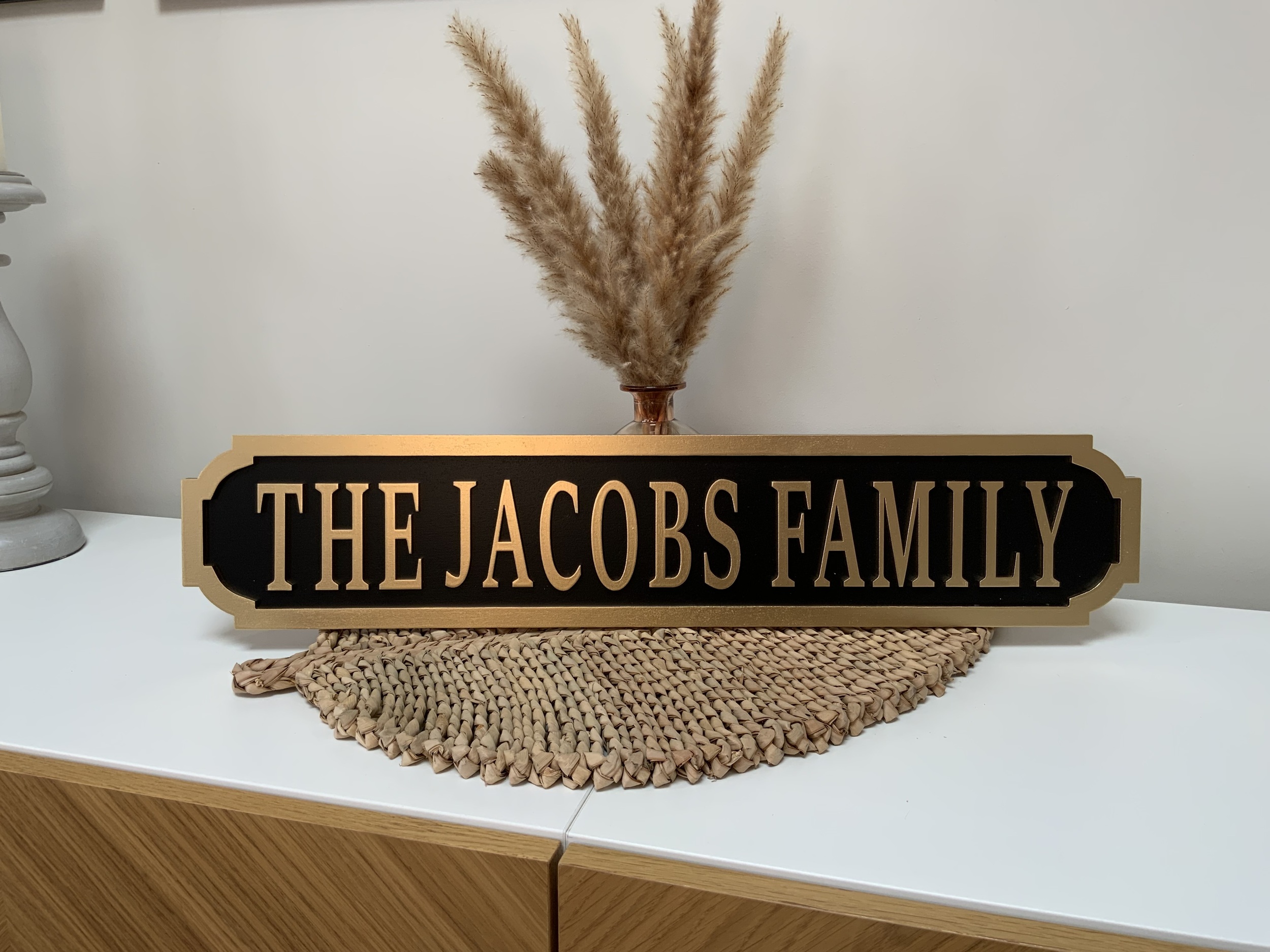 - Large:* approx. 60cm x 12cm, personalised with up to two lines of text.