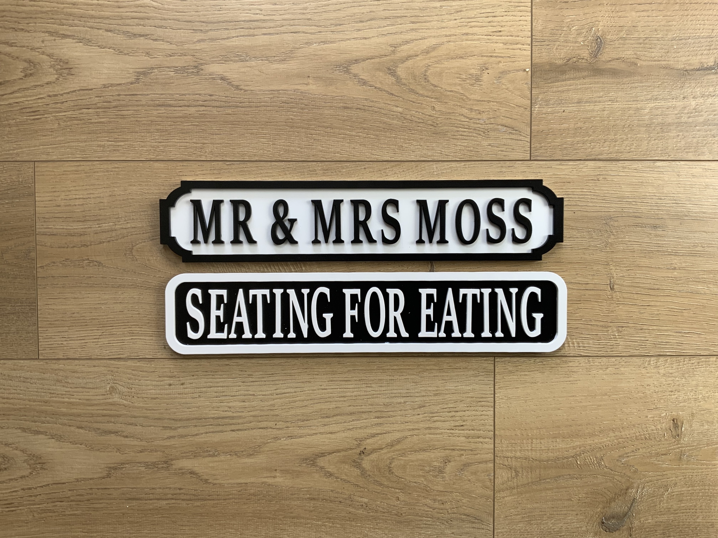 - Available in a variety of colours for the base, text, and border—check the colour chart in the photos.