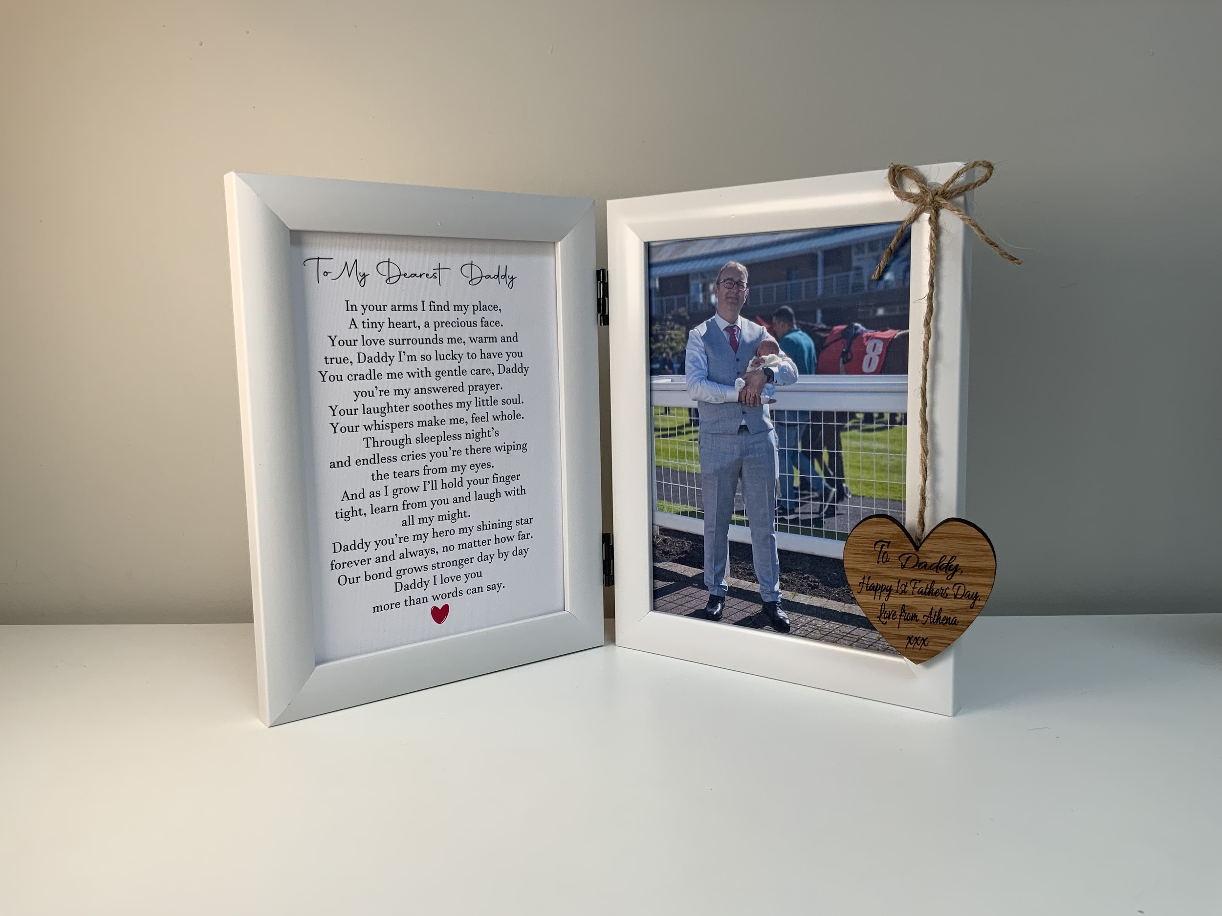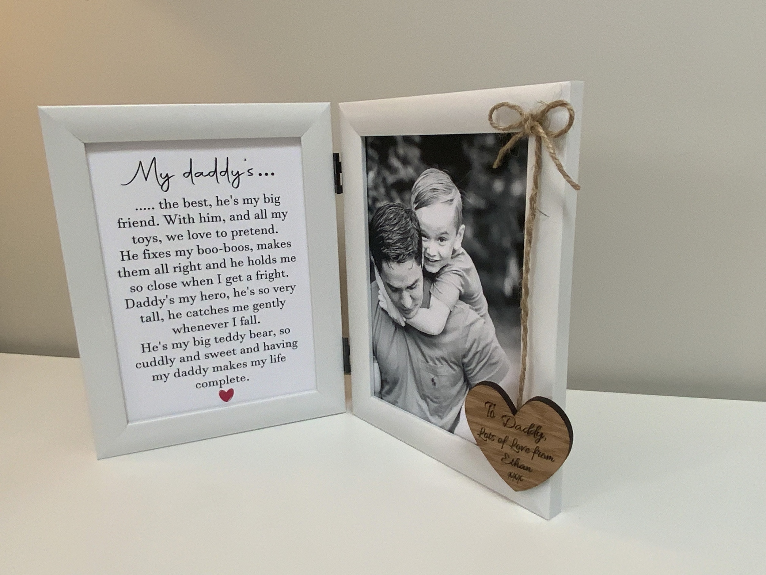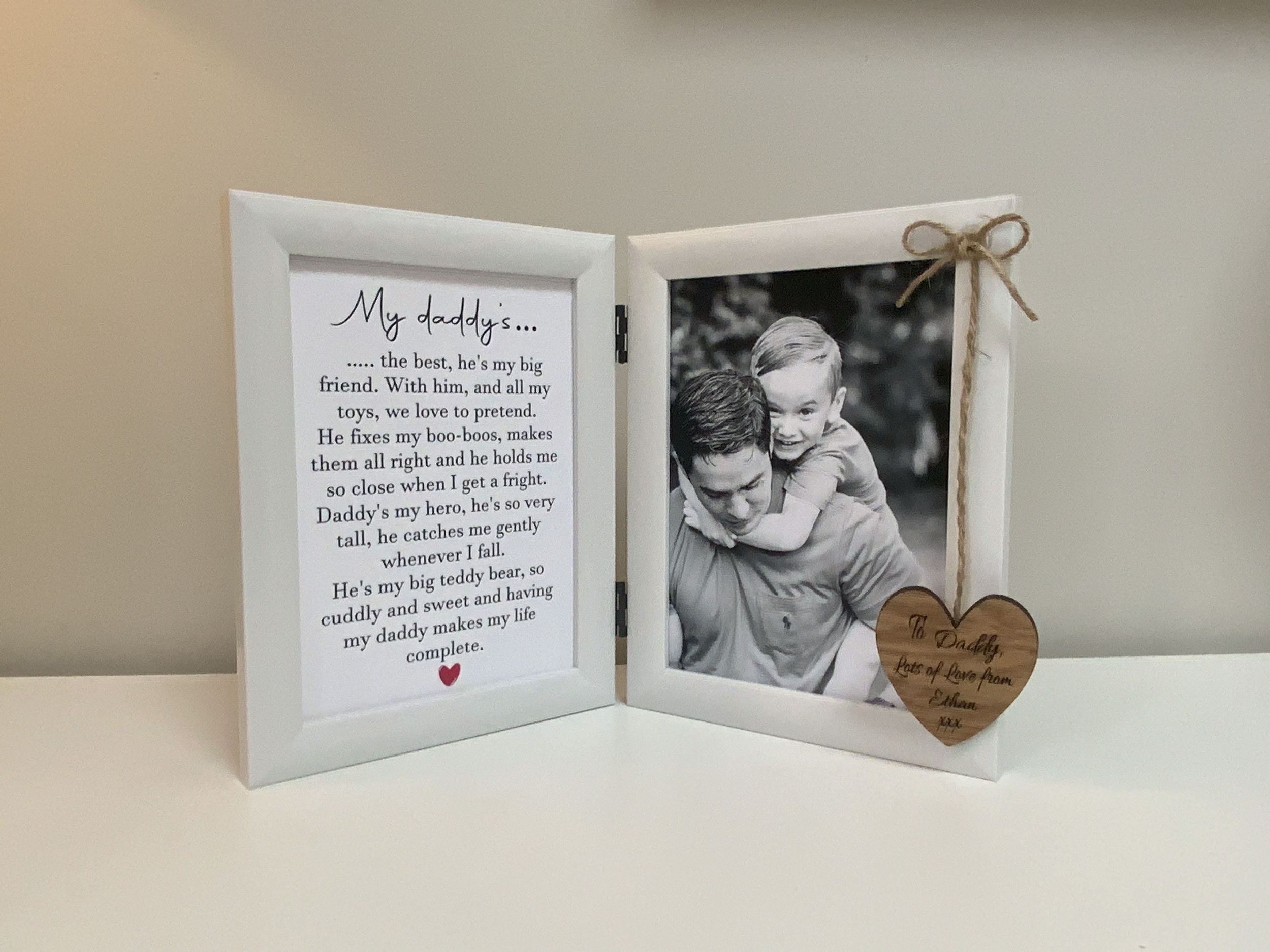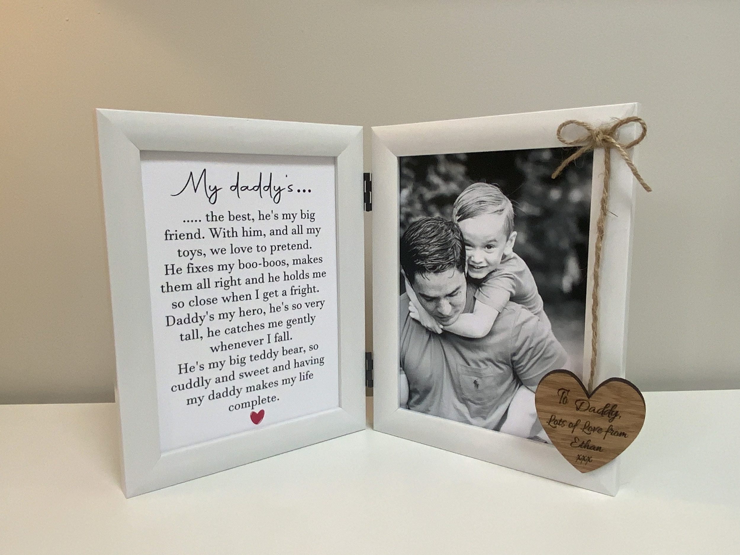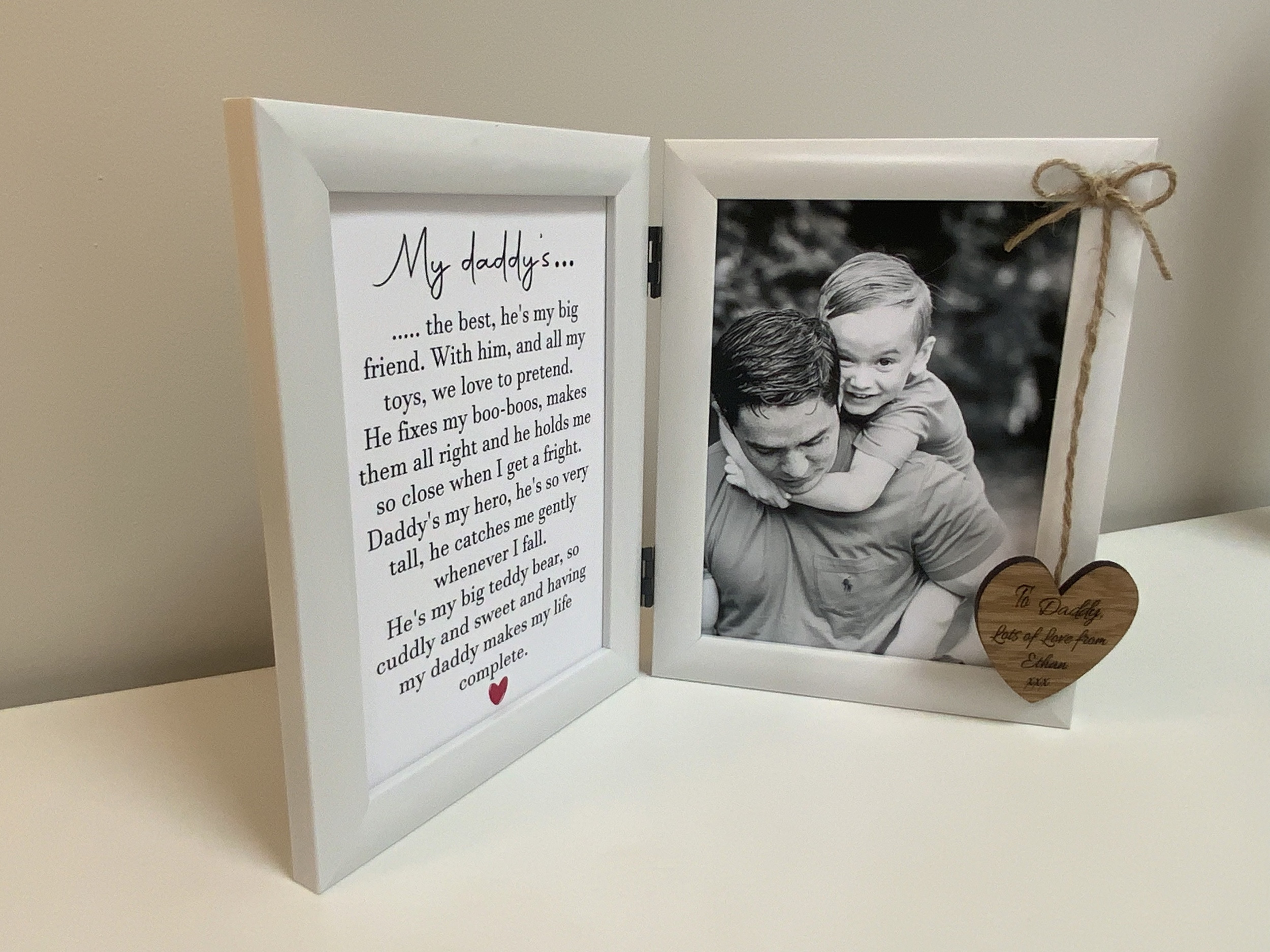 Make your *first Father's Day or Dad's birthday extra special with this personalised photo frame*, featuring a touching poem. Choose from two versions—one from a baby and one from an older child—to make it truly meaningful.