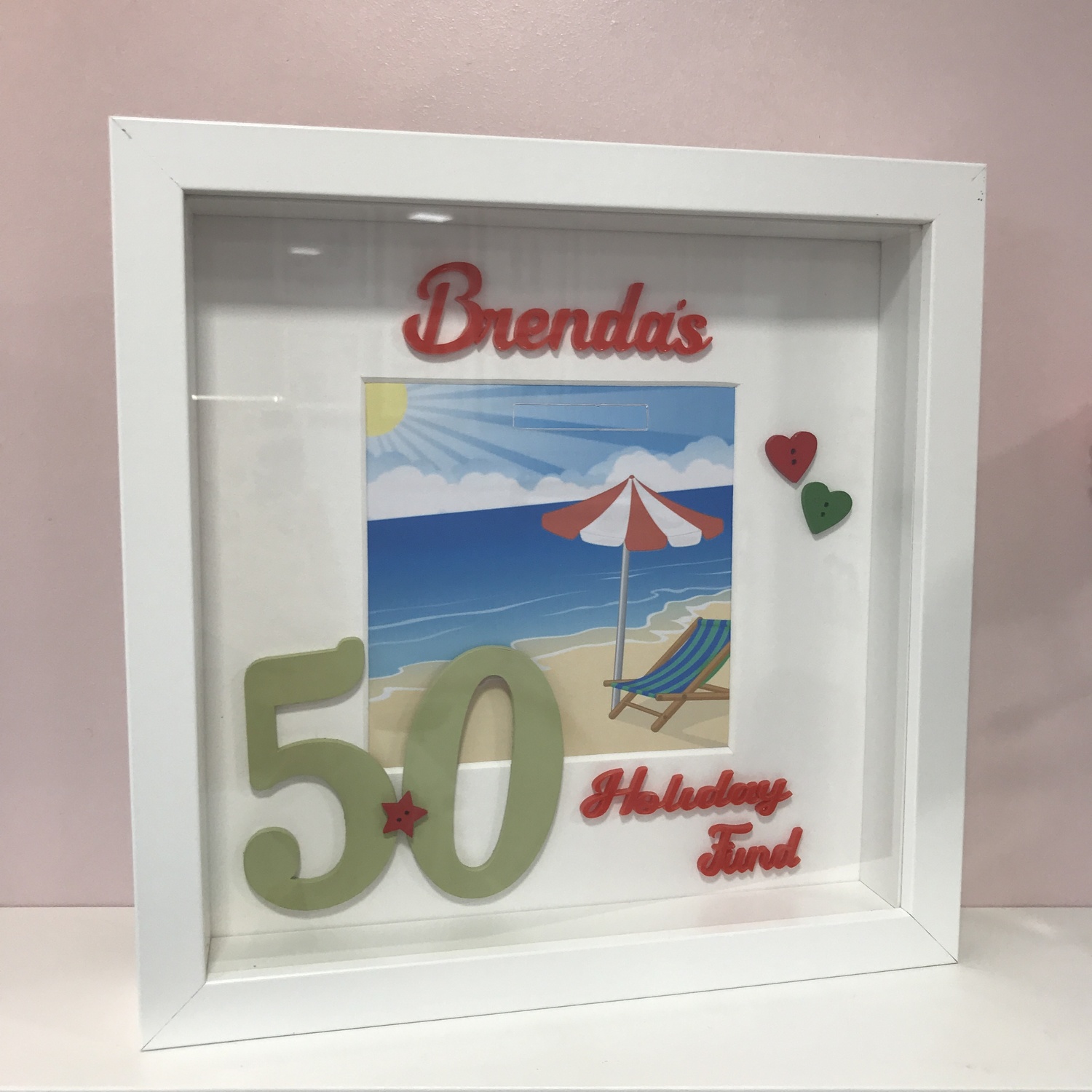 10 “ deep box frame with a little slot in the front of your frame to put your notes inside.