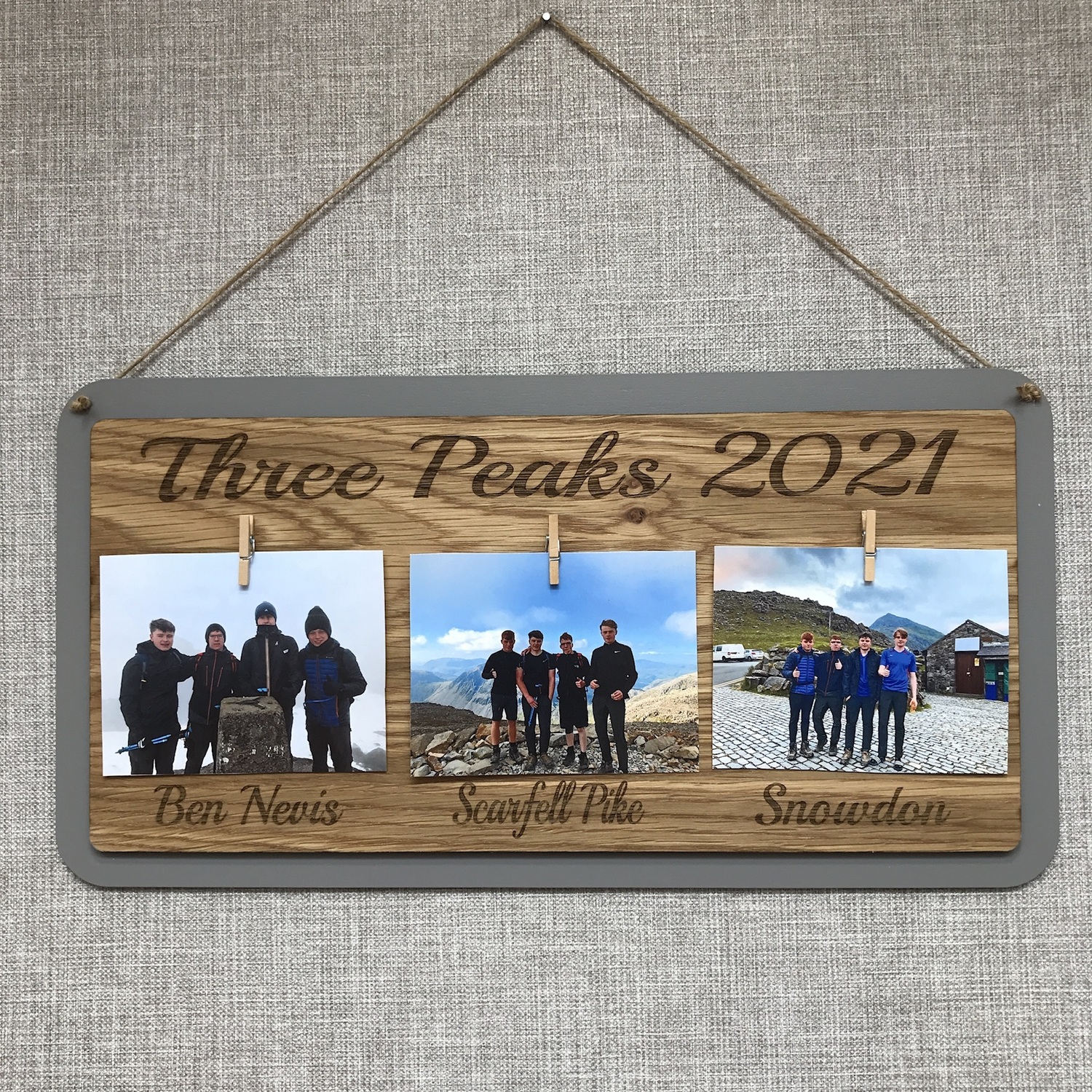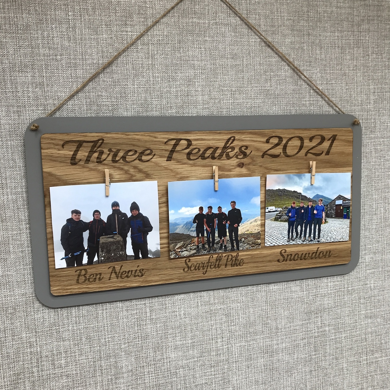 The board is suitable for 3 photos and the pegs come attached, all you need to do is attach your photos ( photo size to be approximately 8/10 cm Polaroid size )