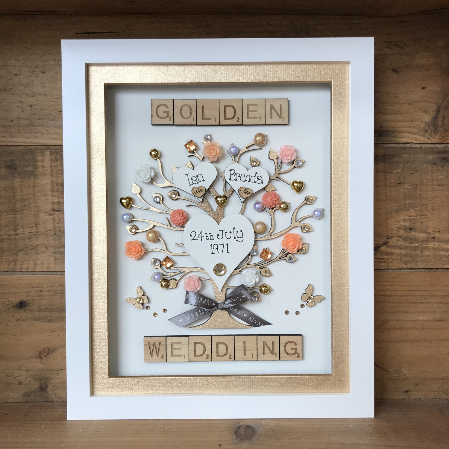 Beautiful Unique Anniversary Gift in a Quality free standing box frame , with scrabble tiles or fancy acrylic wording.