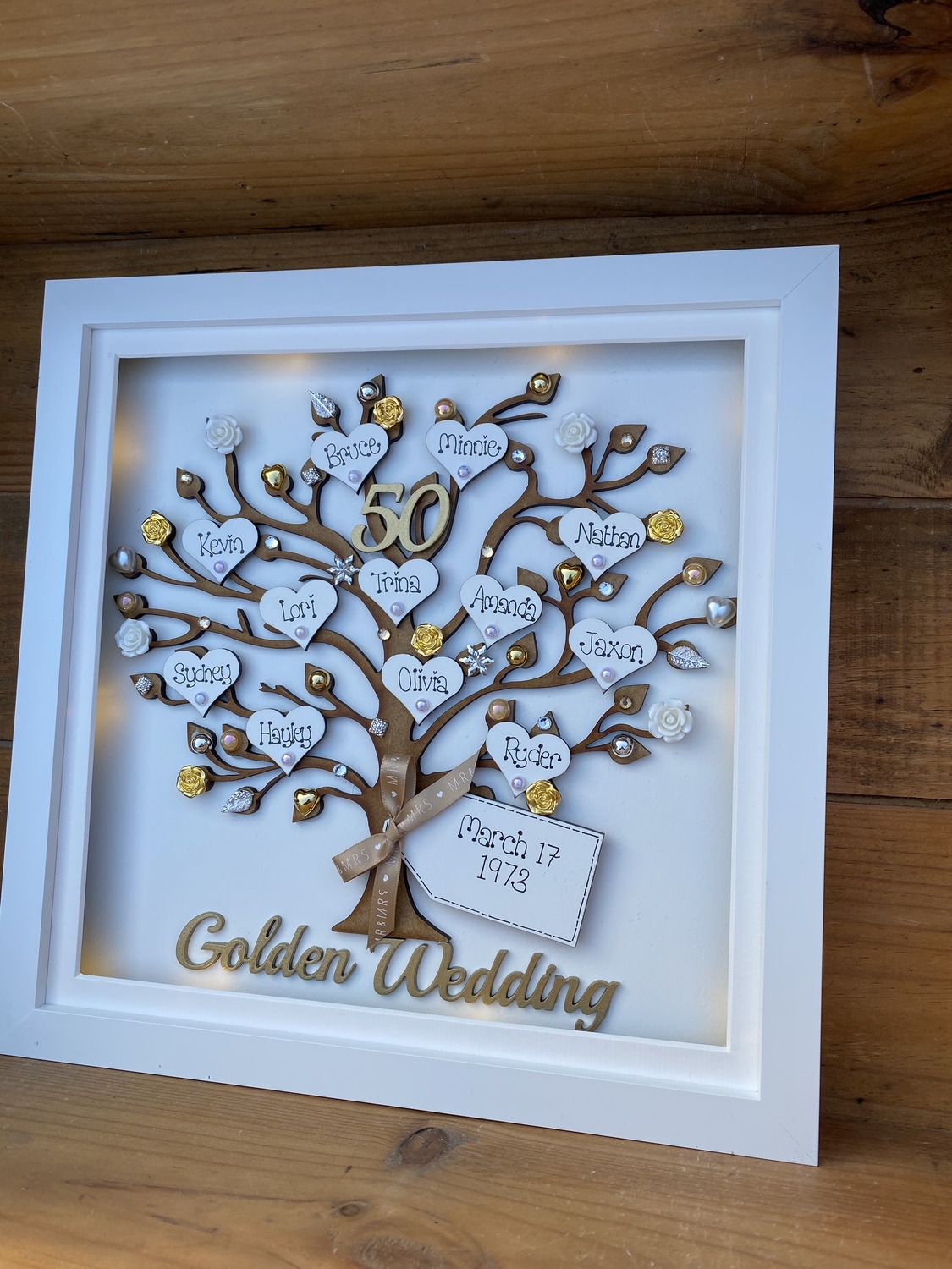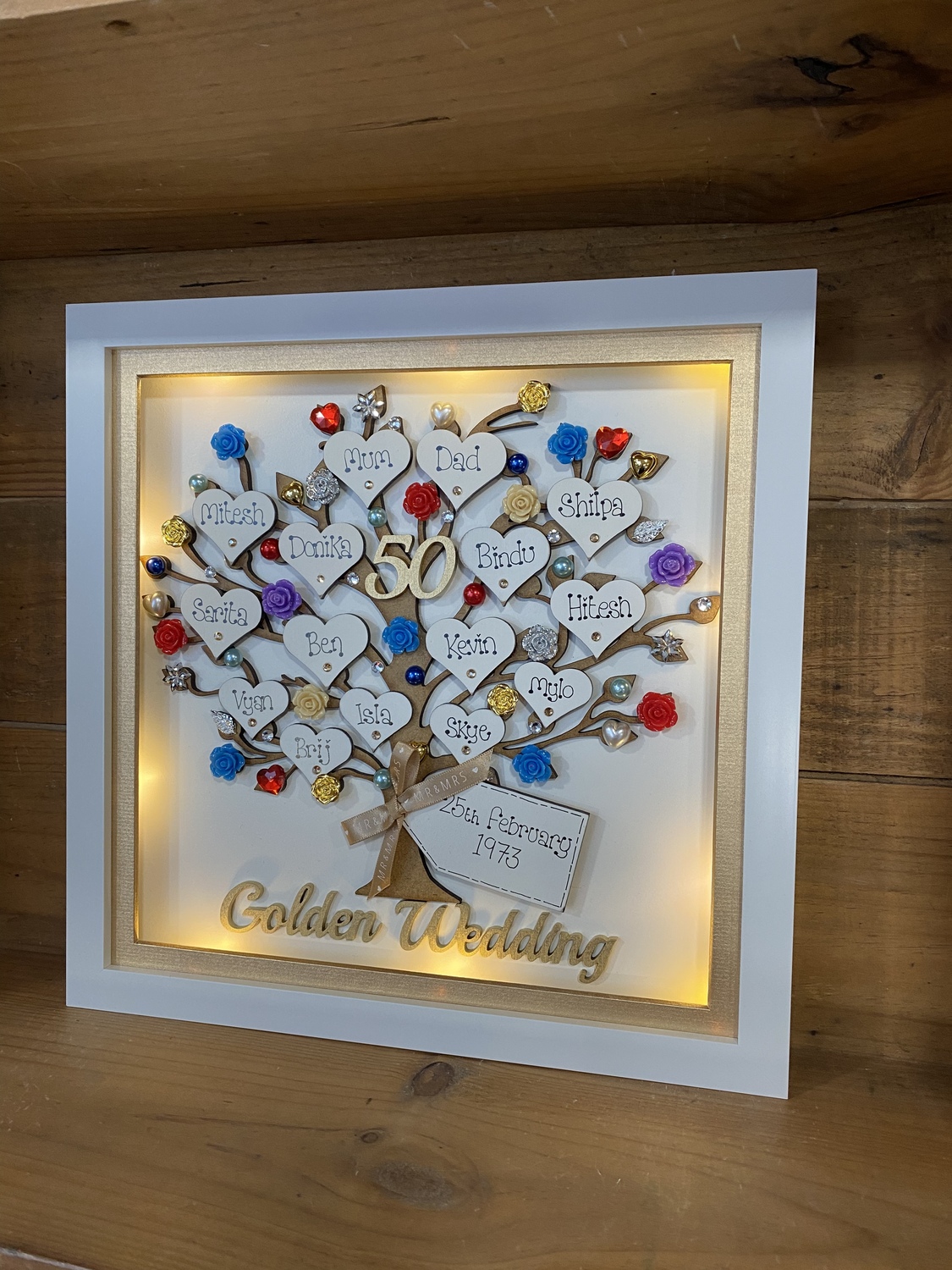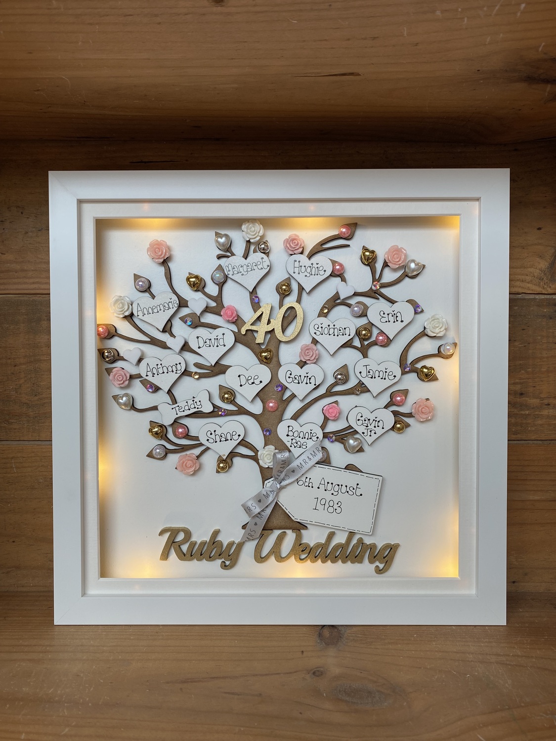 Personalised Anniversary Gift – Custom Family Tree Frame with Names, Pearls & Optional Lights