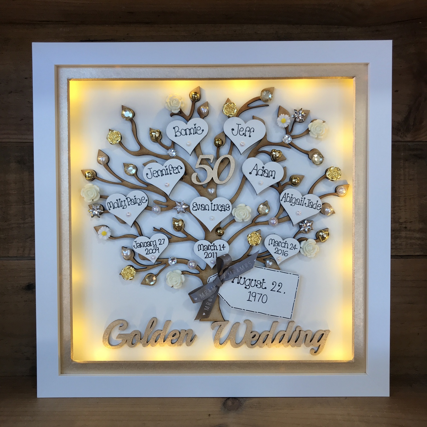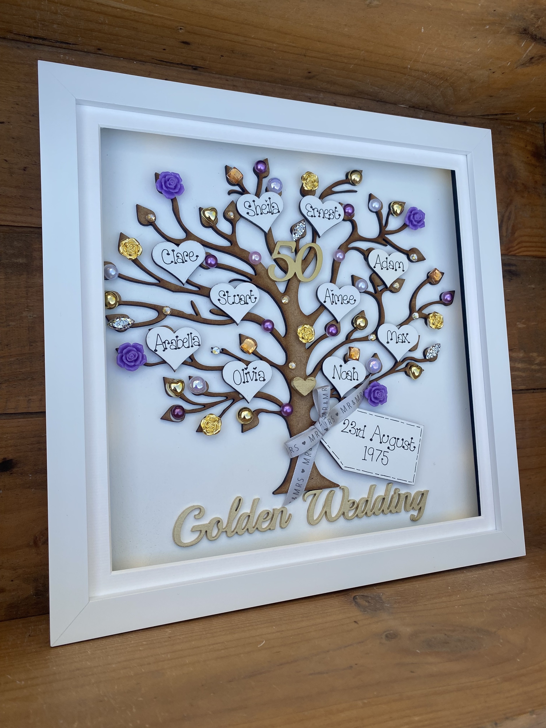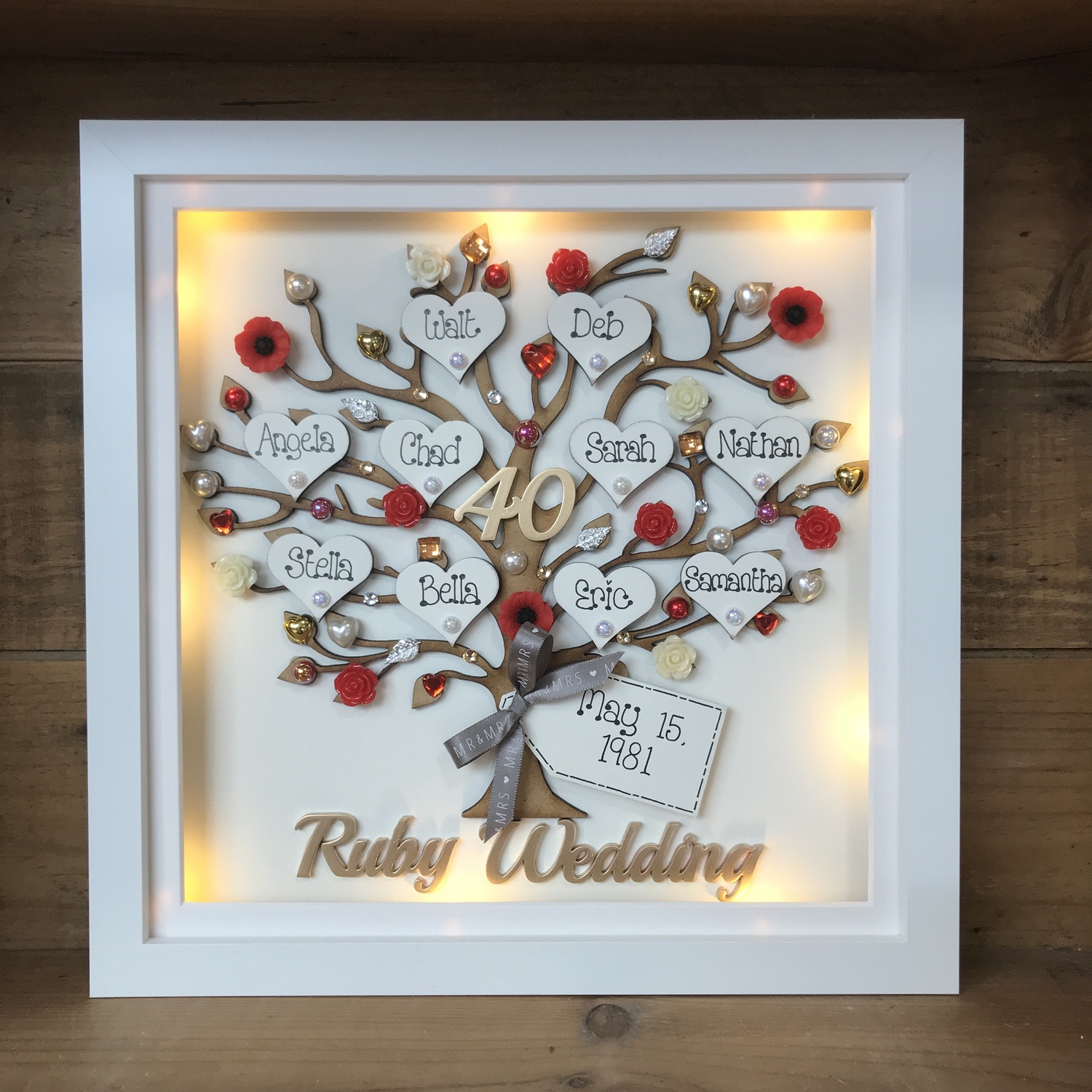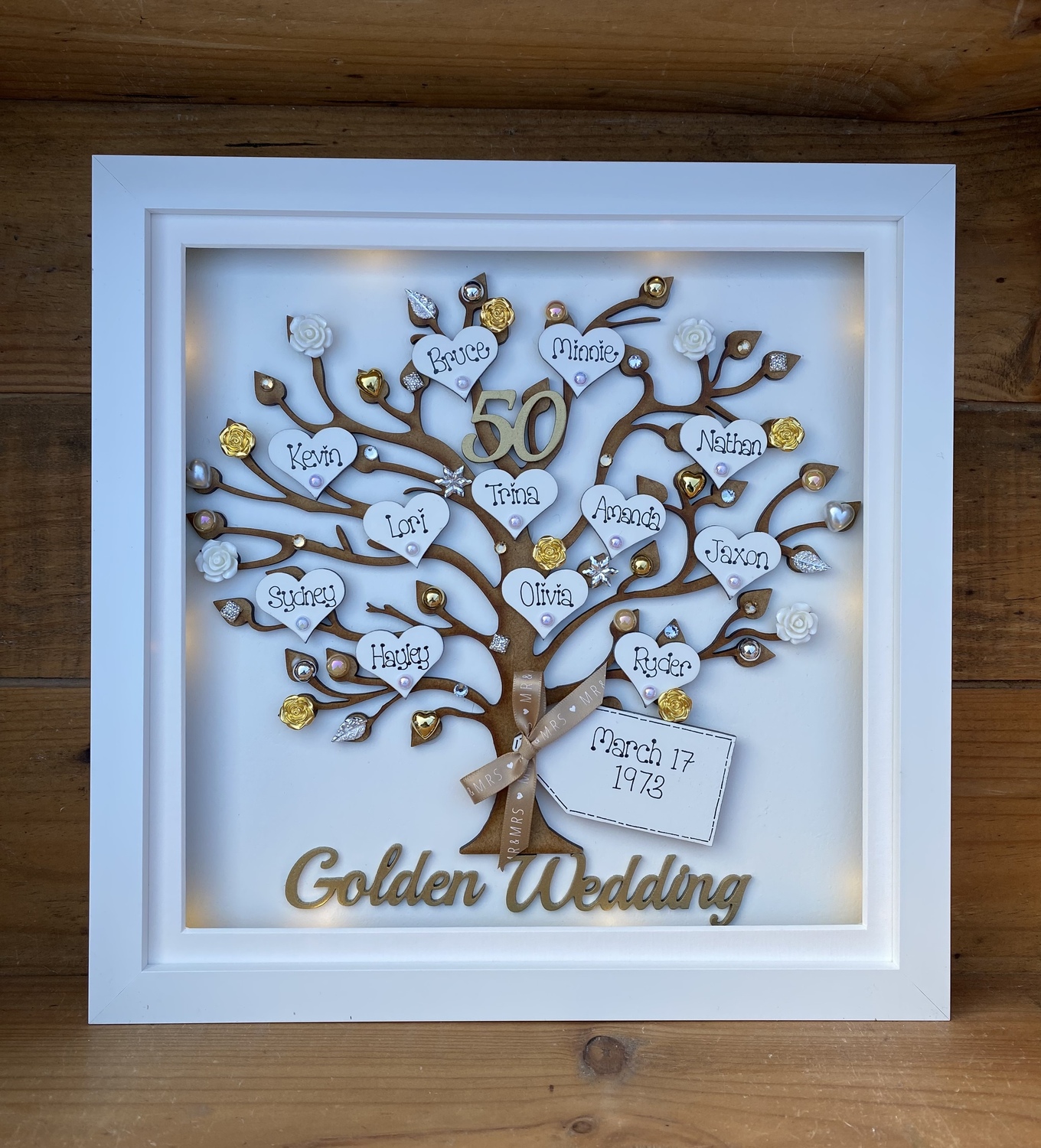 Personalised Anniversary Gift – Custom Family Tree Frame with Names, Pearls & Optional Lights