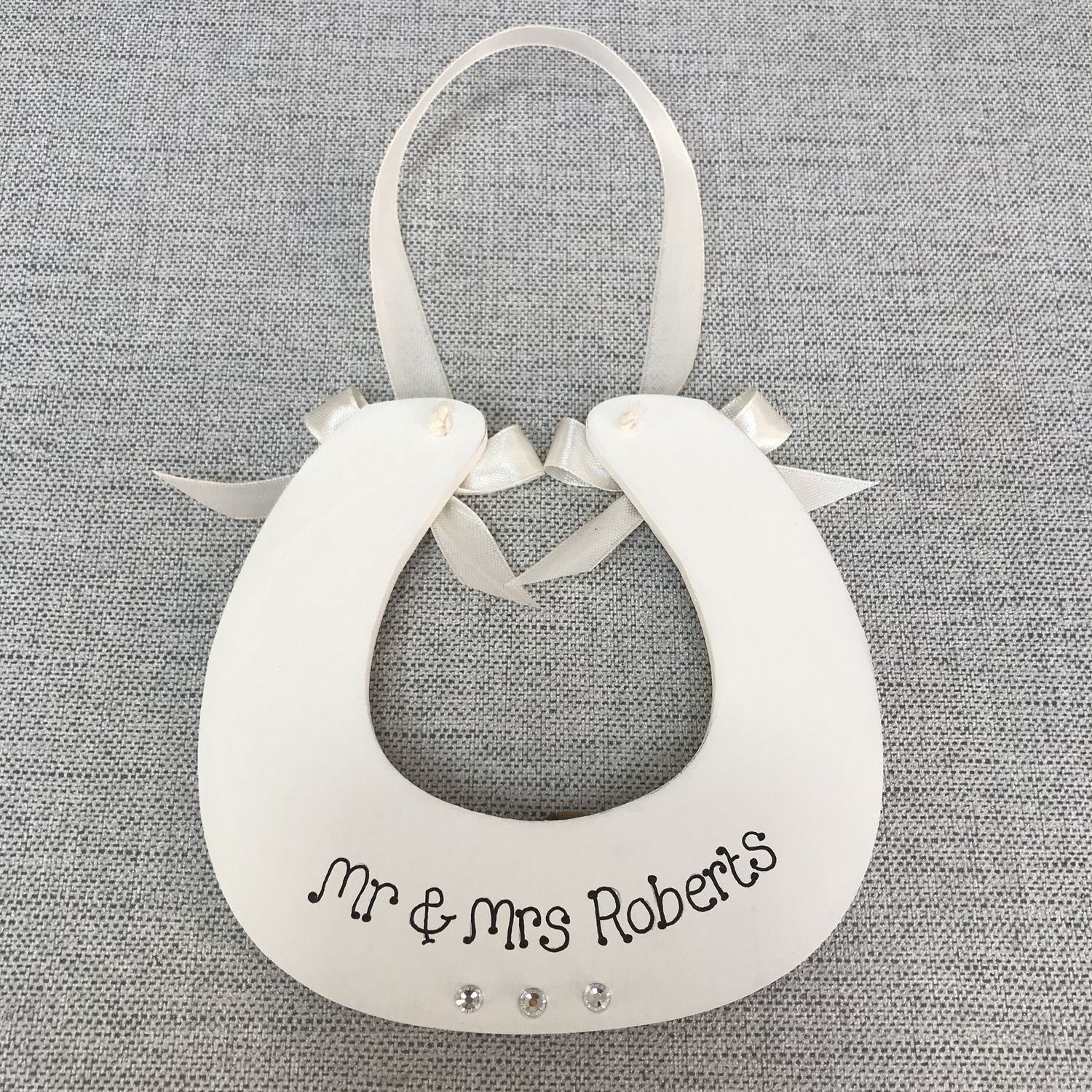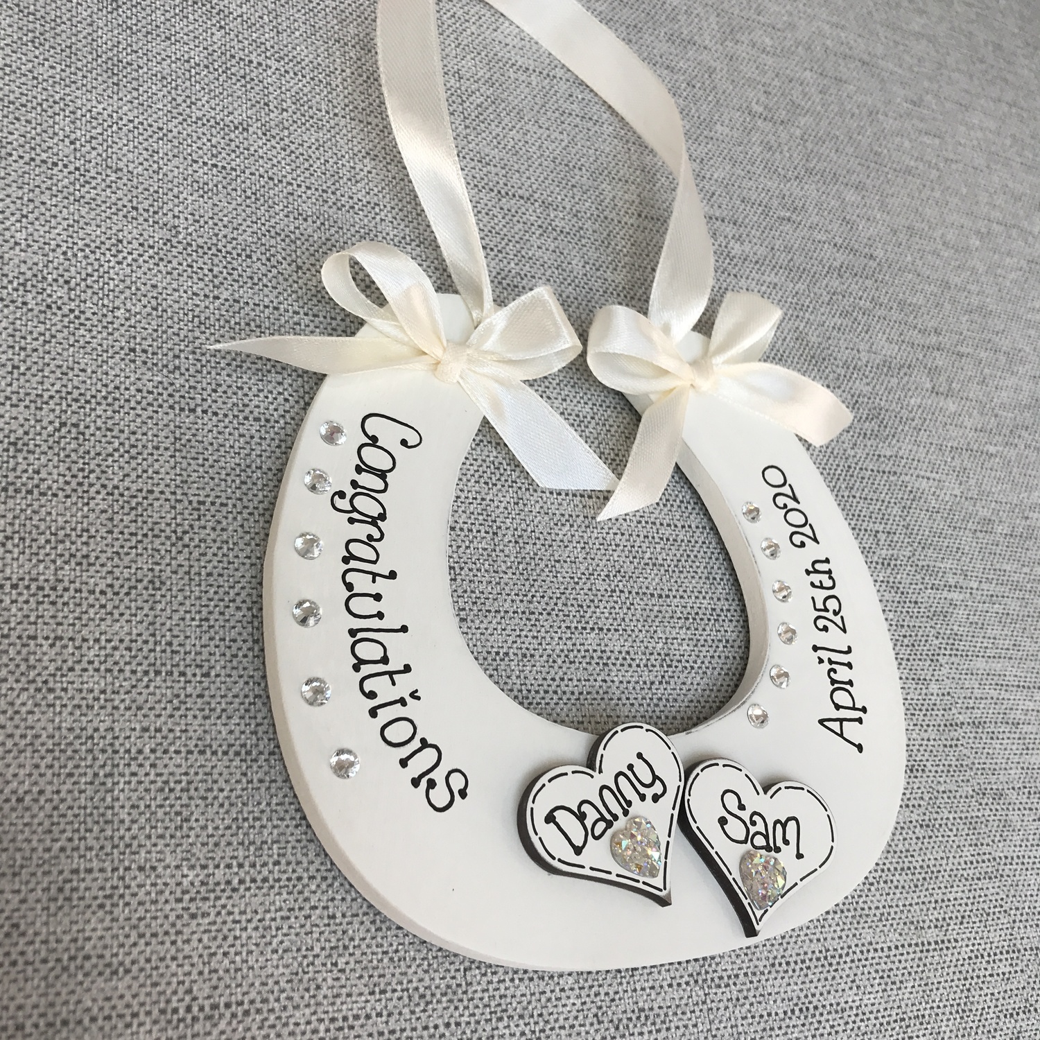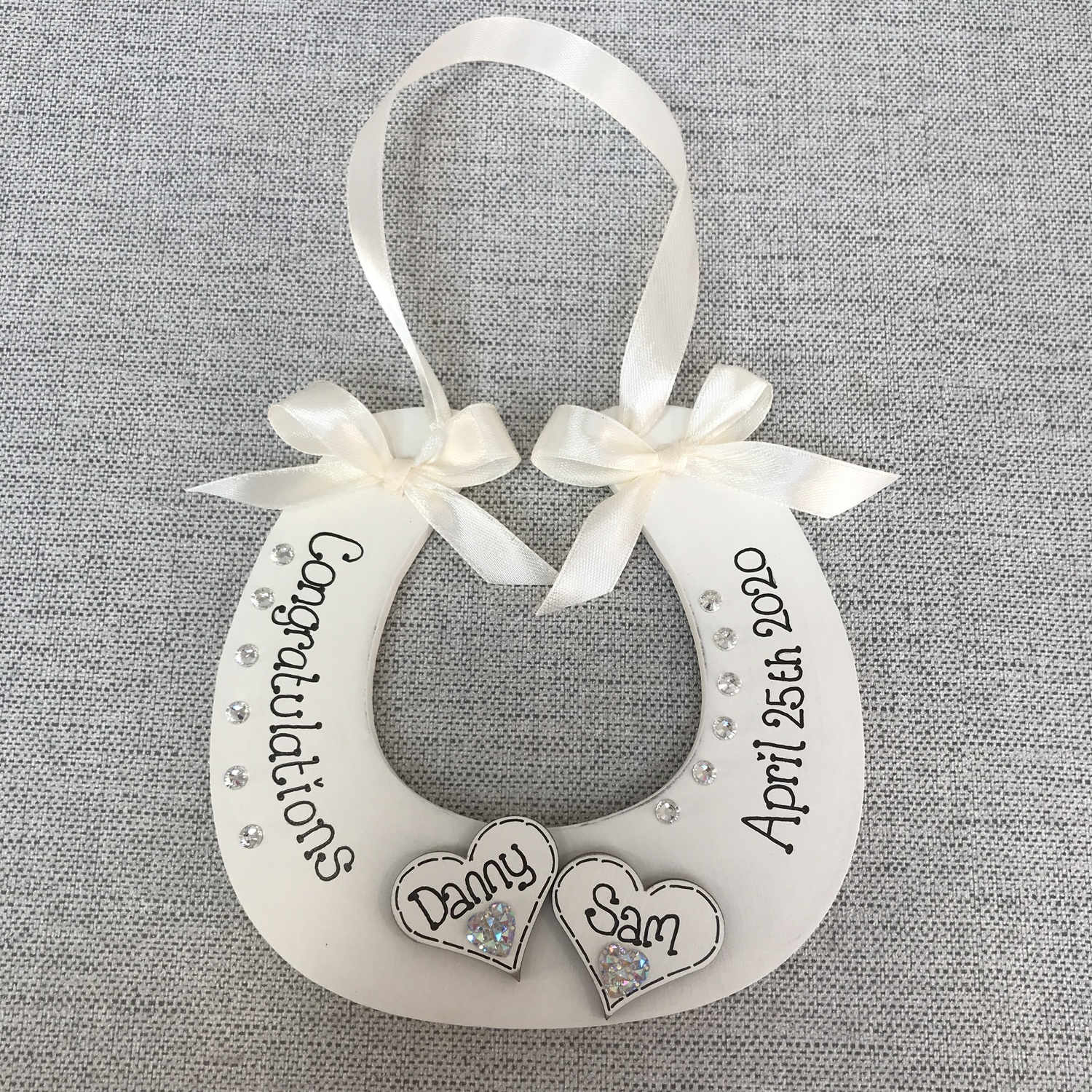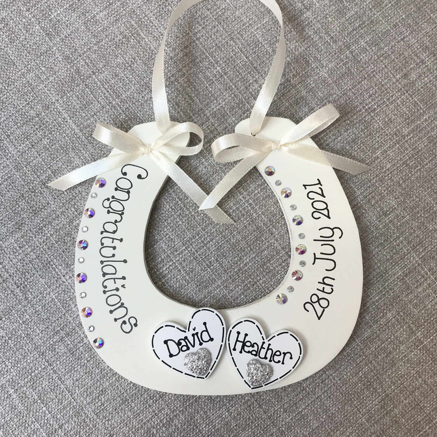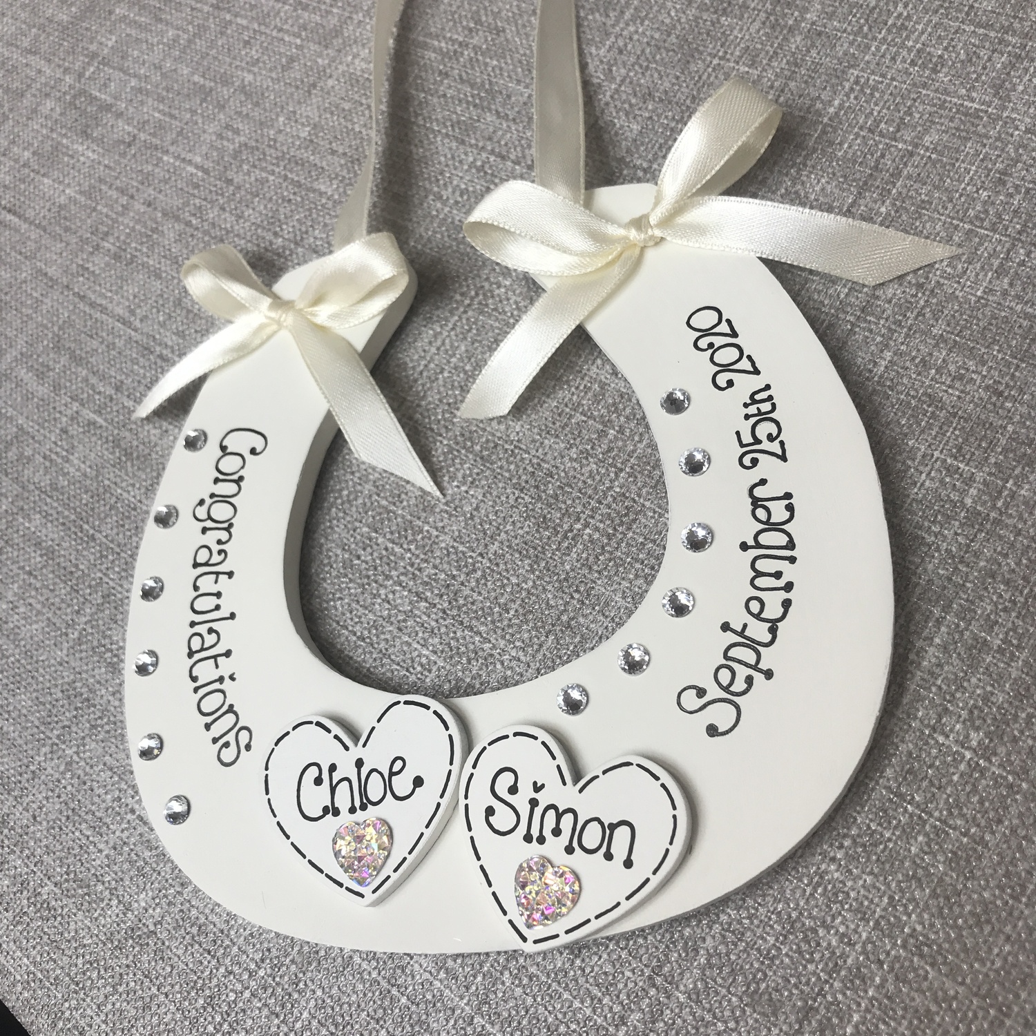 embellished with diamantes and satin ribbon