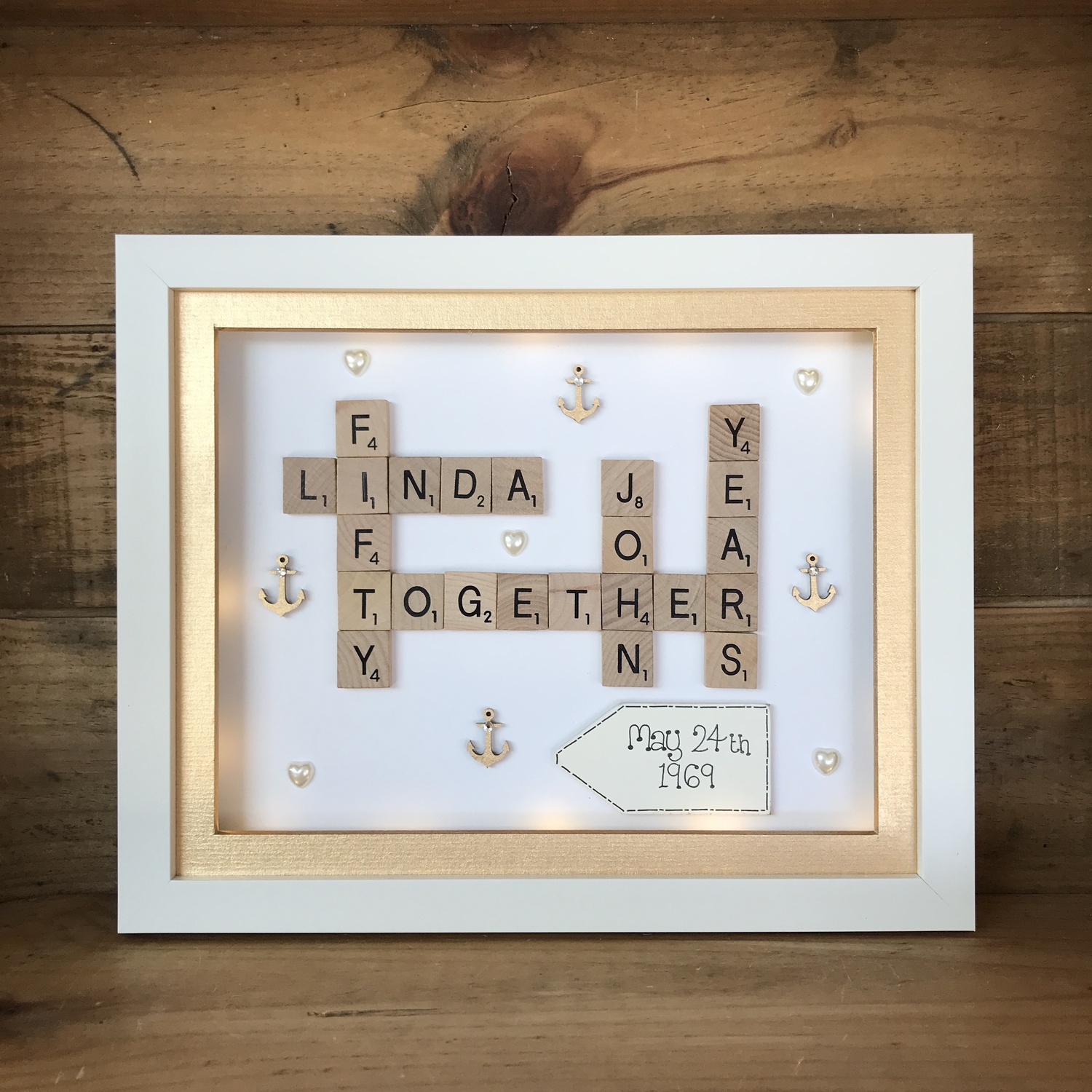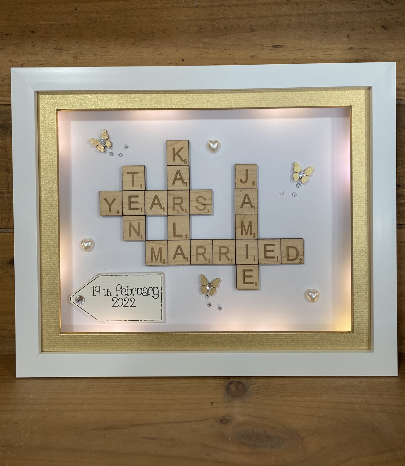 Customised Scrabble Family Name Box Frame with optional LED Lights | Personalised Anniversary Gift