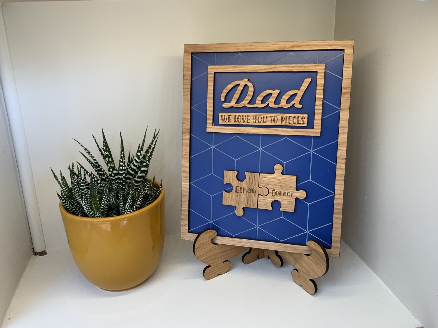 We Love you to pieces plaque is a beautiful wooden keepsake gift for your Dad this Fathers Day or any other family member,