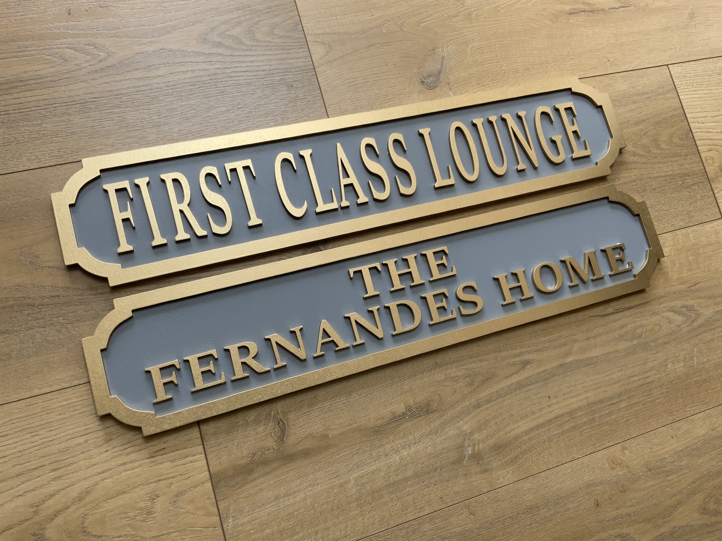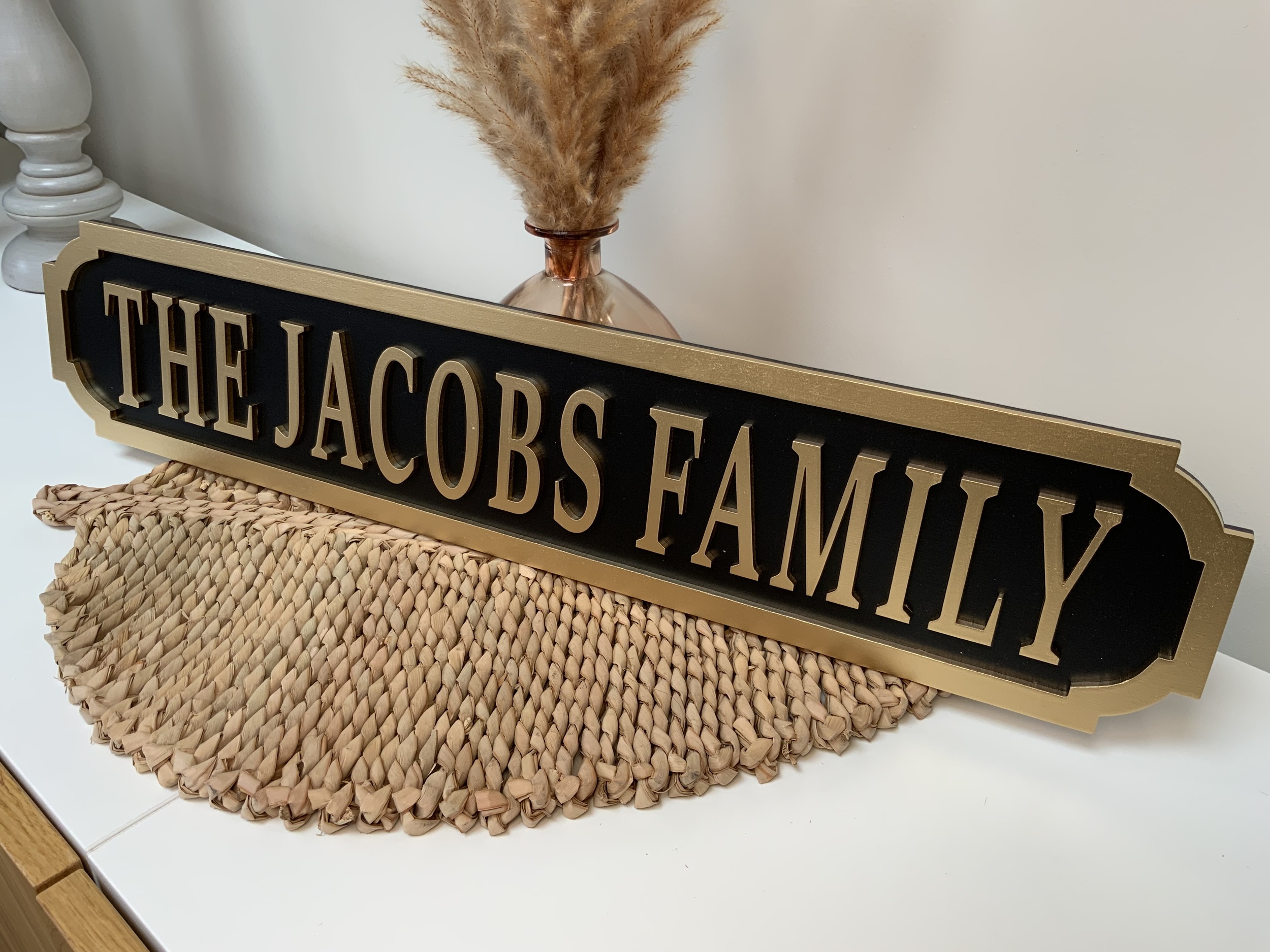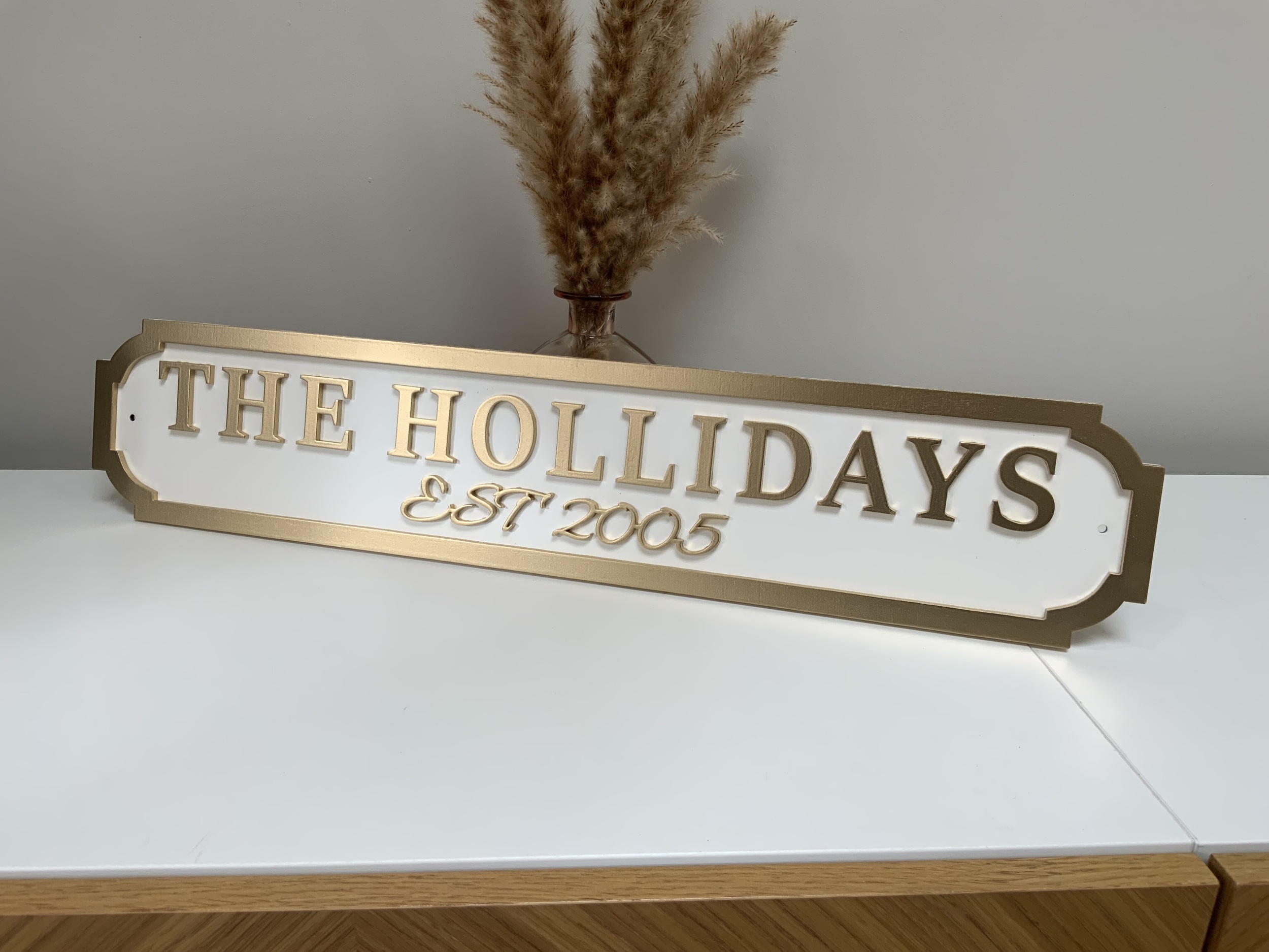 - Large:* approx. 60cm x 12cm, personalised with up to two lines of text.