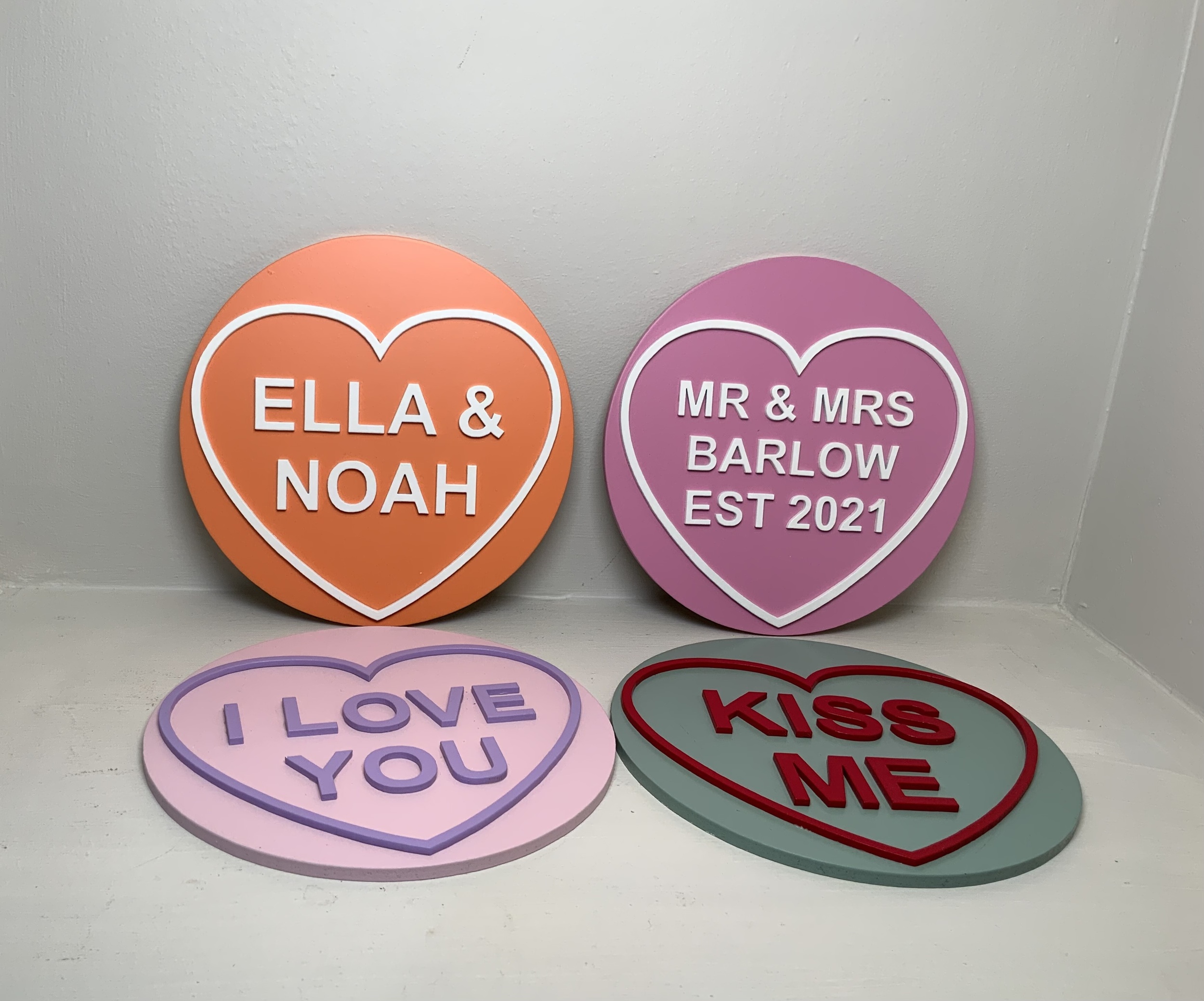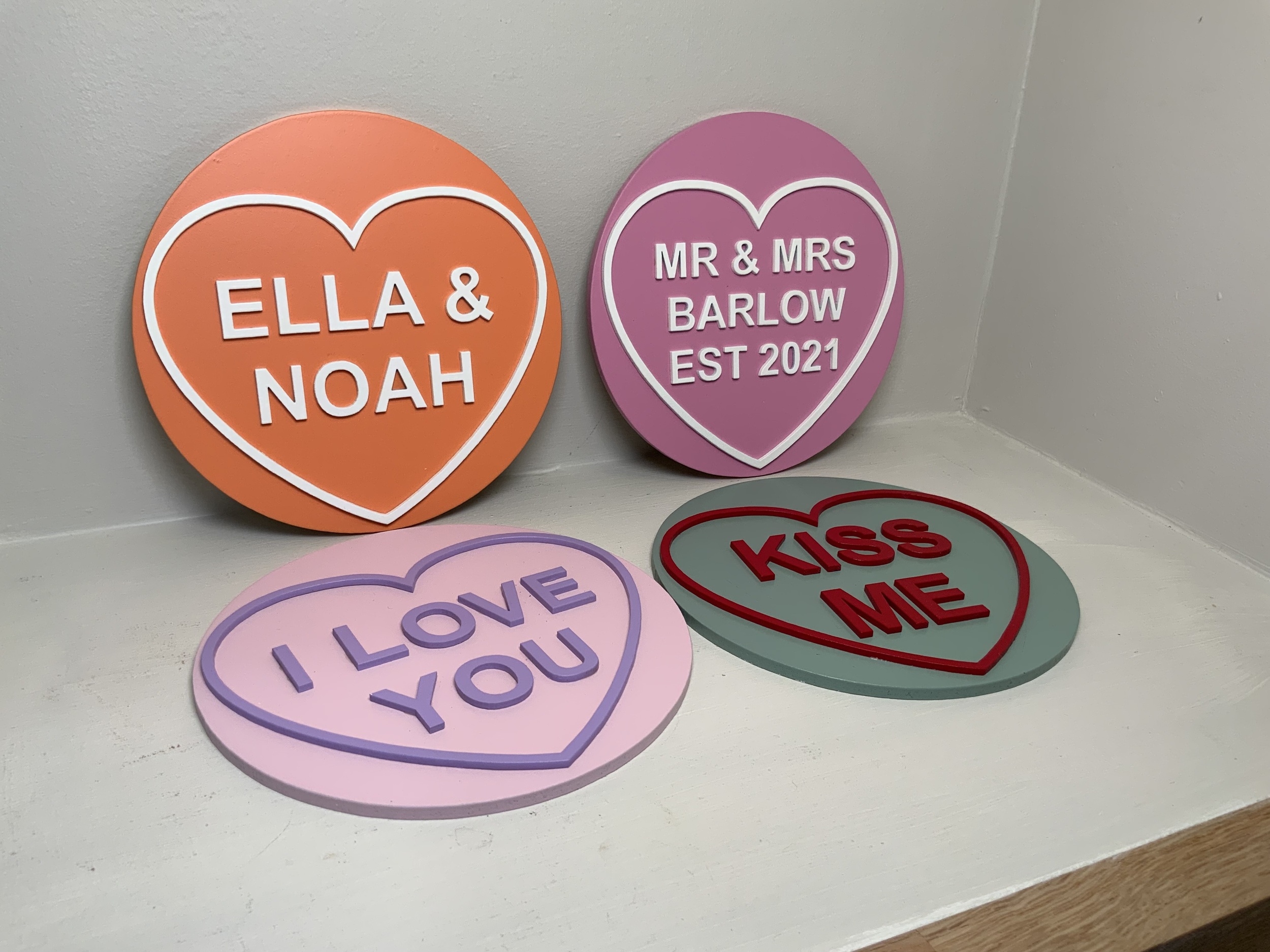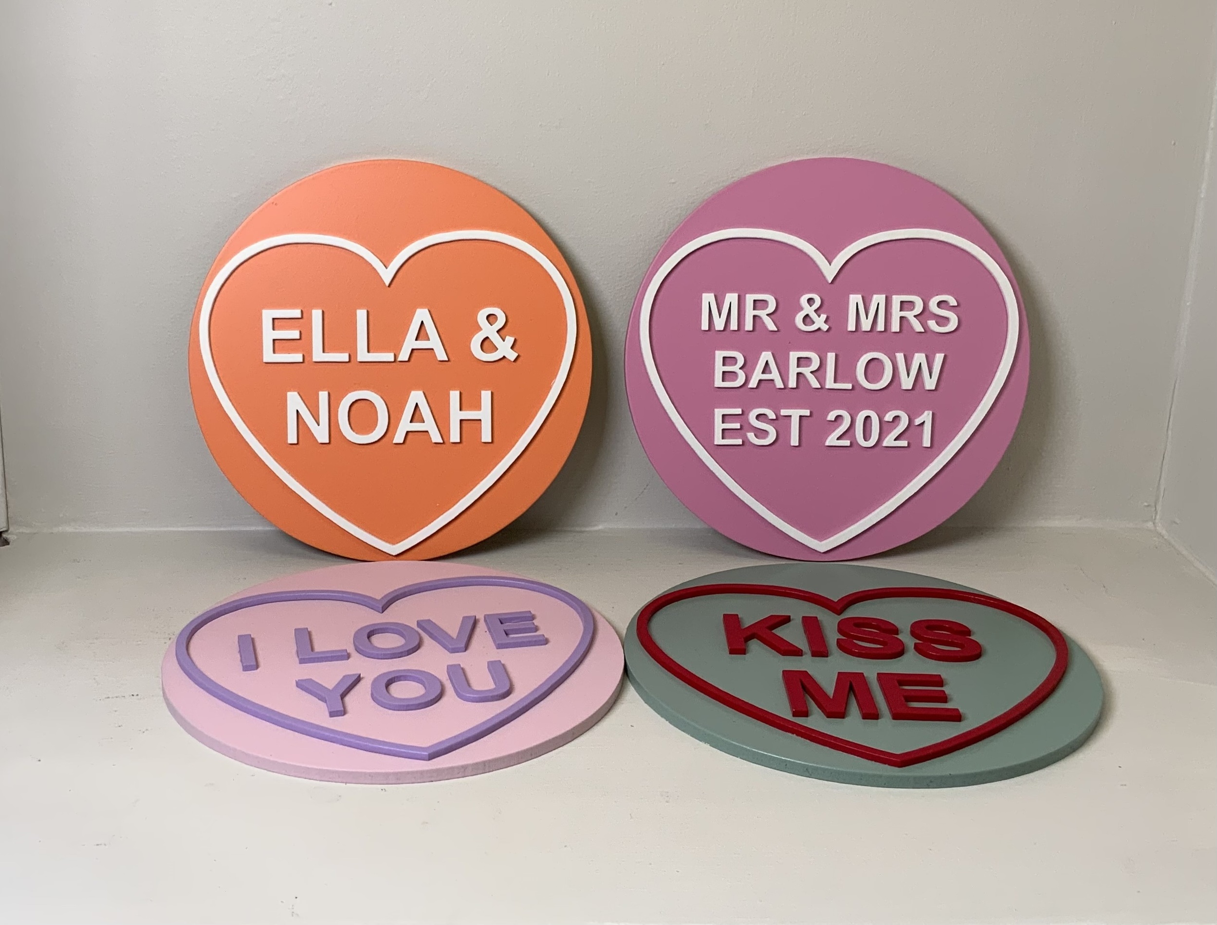 A sweet little personalised heart plaque inspired by classic sweetheart sweets. Made from wood with raised 3D lettering and a layered heart design, each piece is hand-finished and customised just for you.