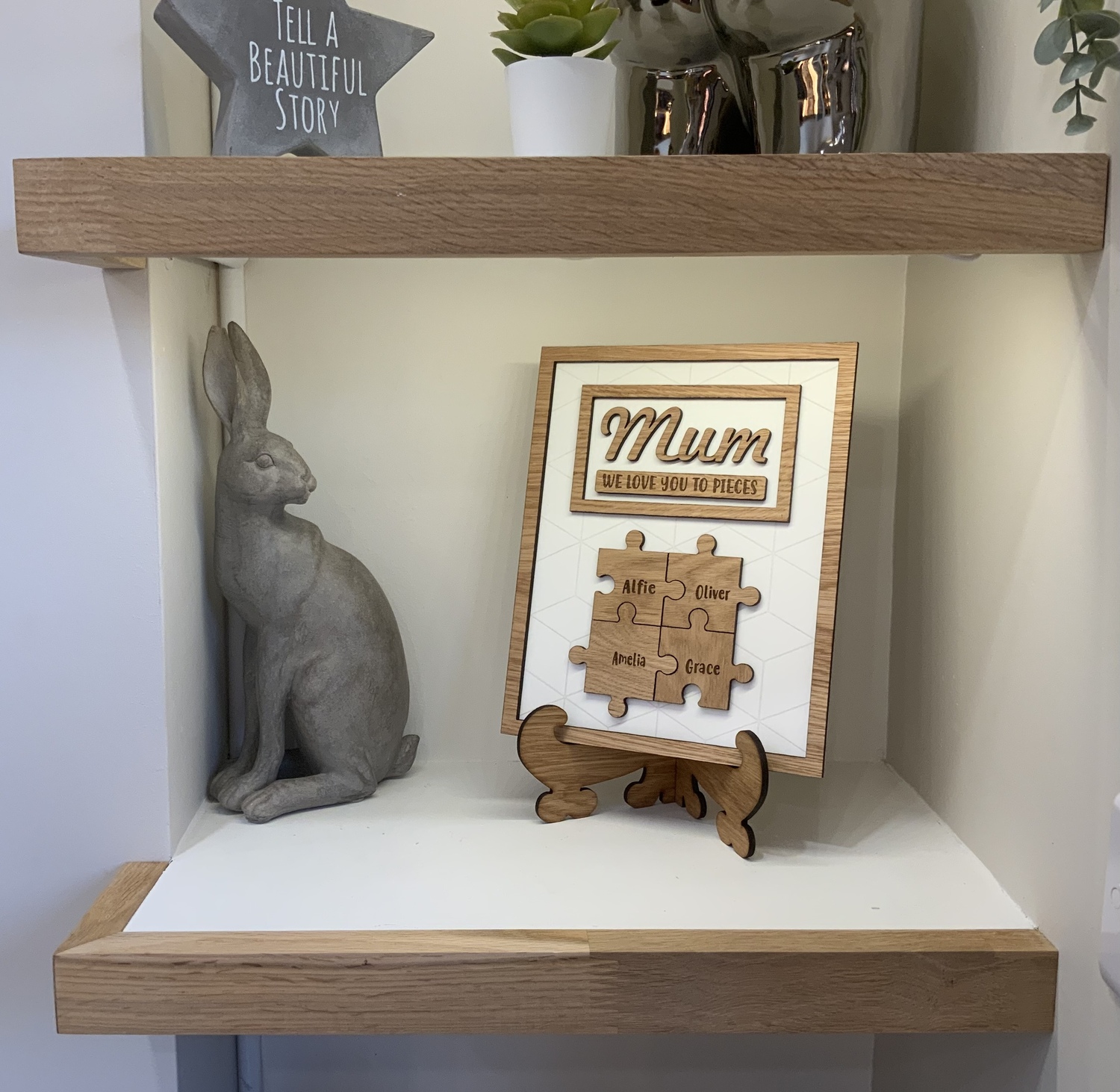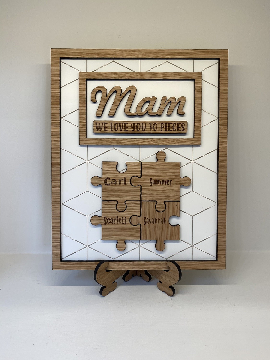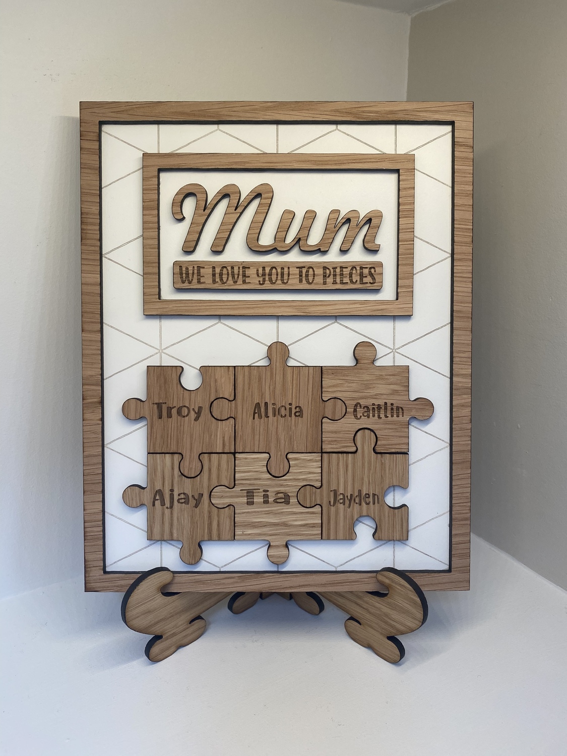 We Love you to pieces plaque is a beautiful wooden keepsake gift for your mum this Mother’s Day or any other family member,