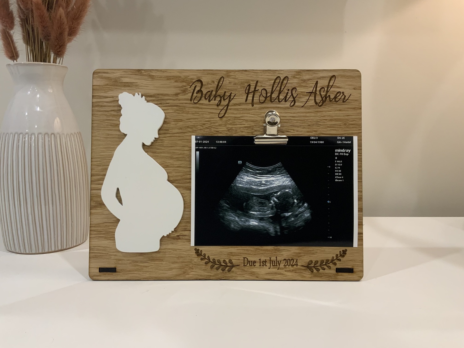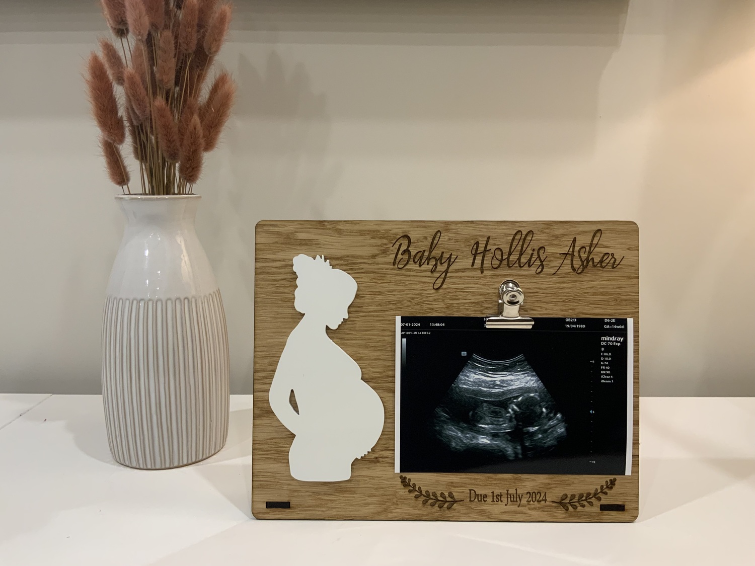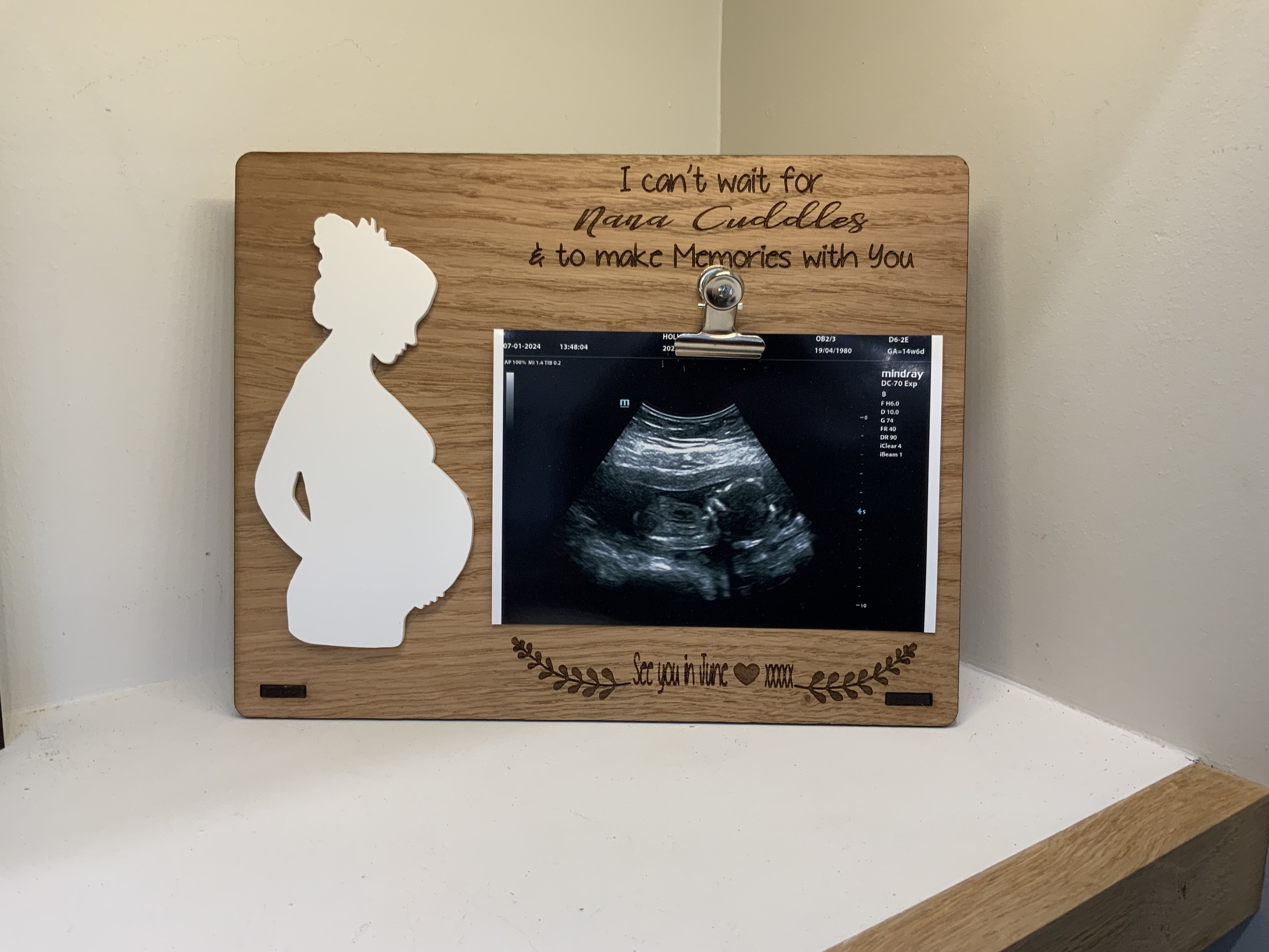 This personalised baby scan photo frame is the perfect way to cherish the memory of your little one's ultrasounds . The frame is designed specifically for baby scan photos, making it a unique and thoughtful gift for parents-to-be or grandparents.