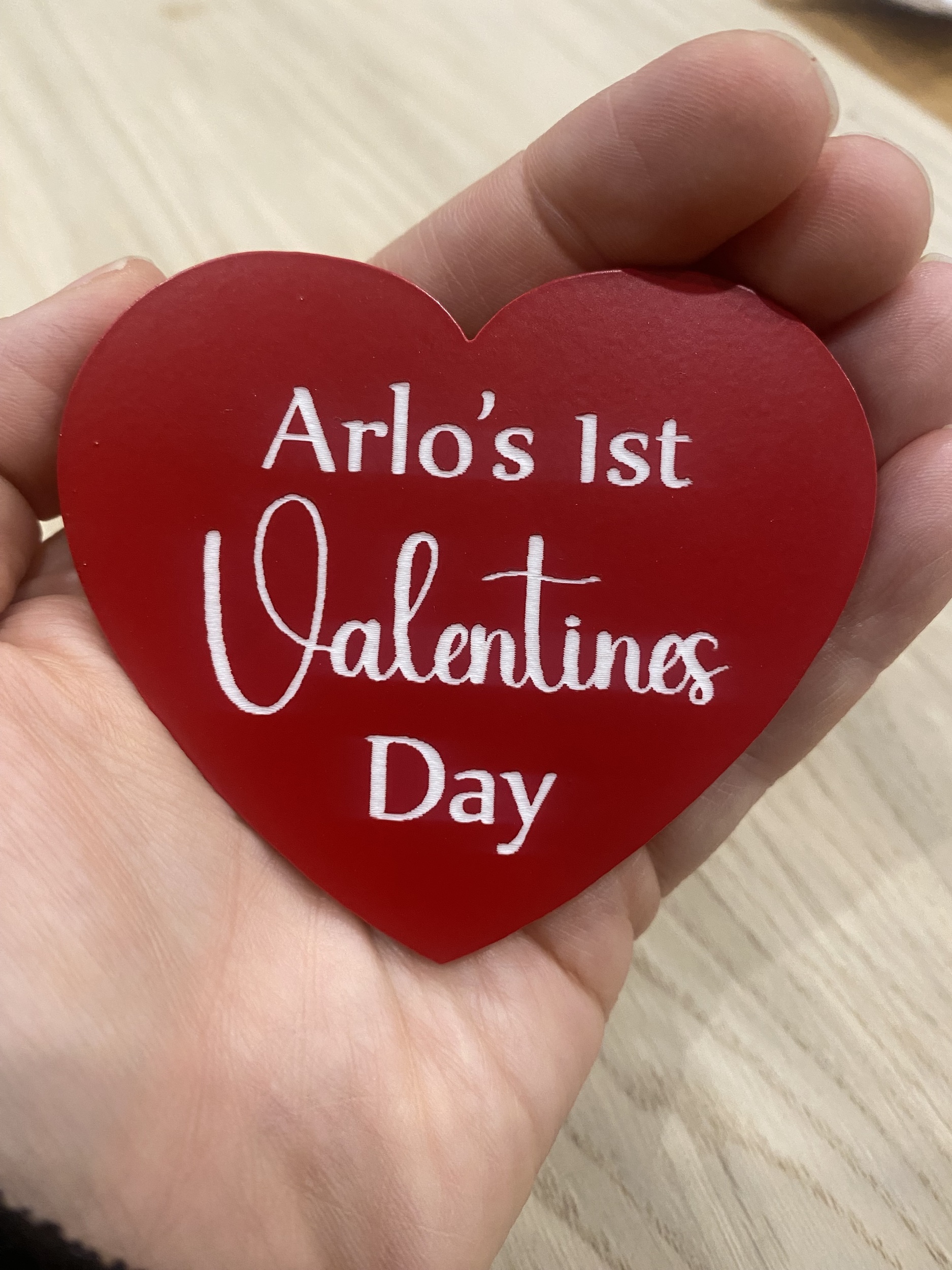 A sweet personalised heart to celebrate your baby’s first Valentine’s Day. Perfect for photos, keepsakes and special memories.