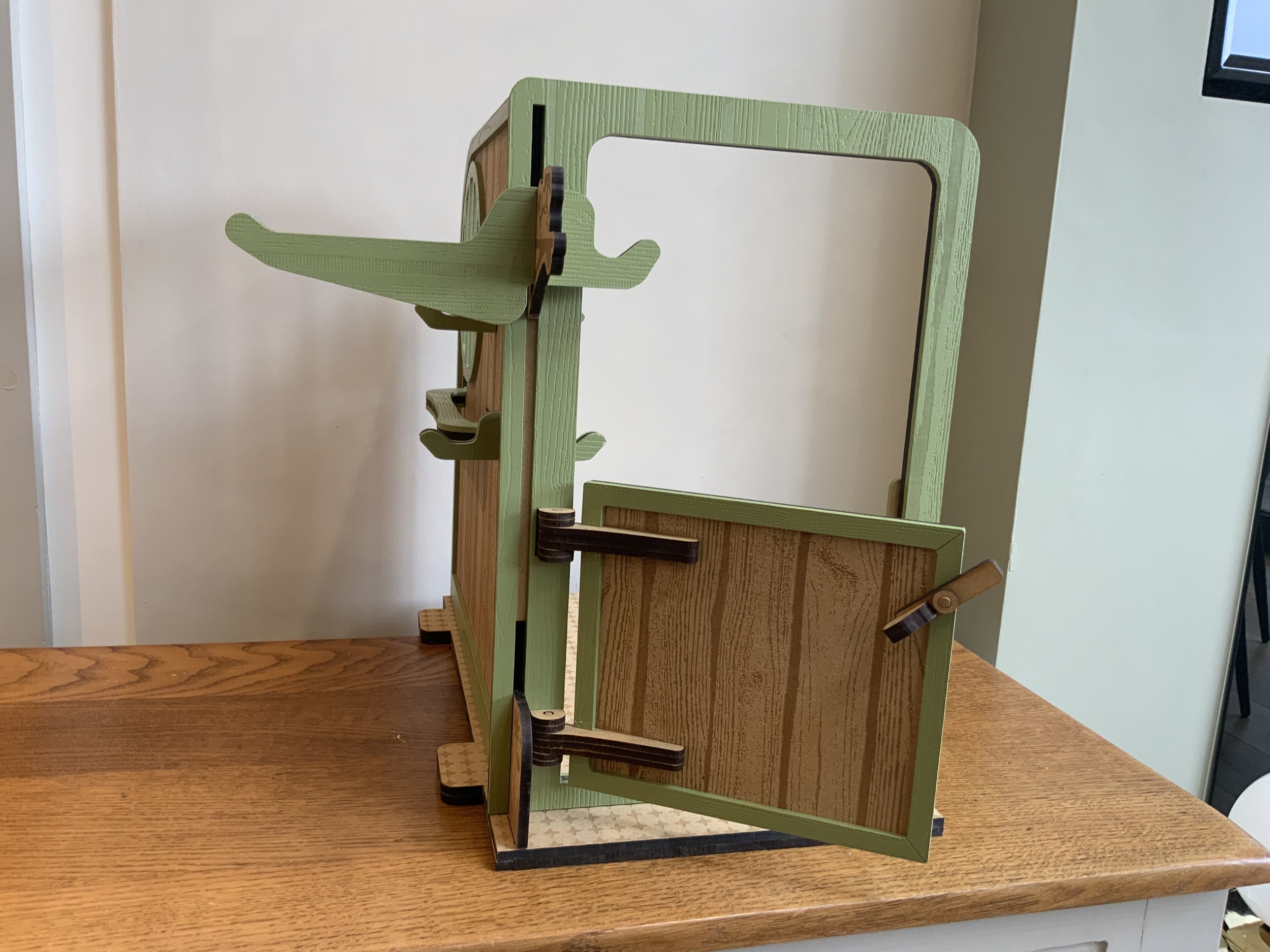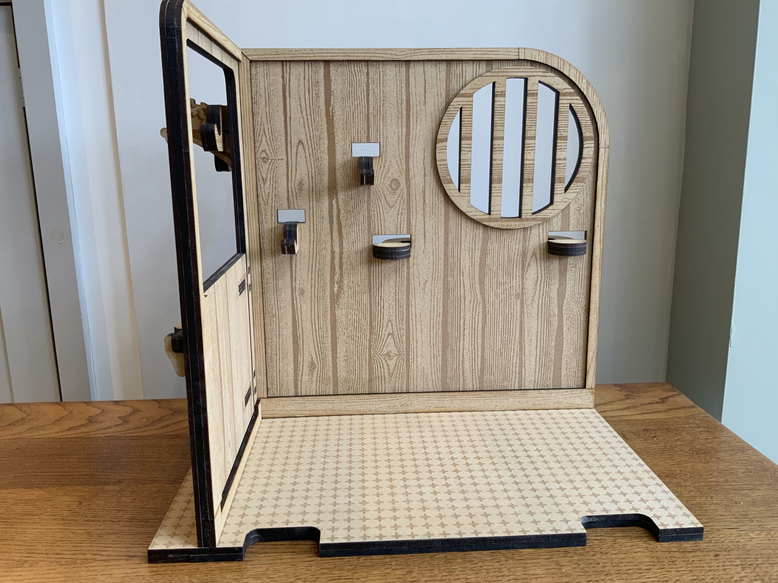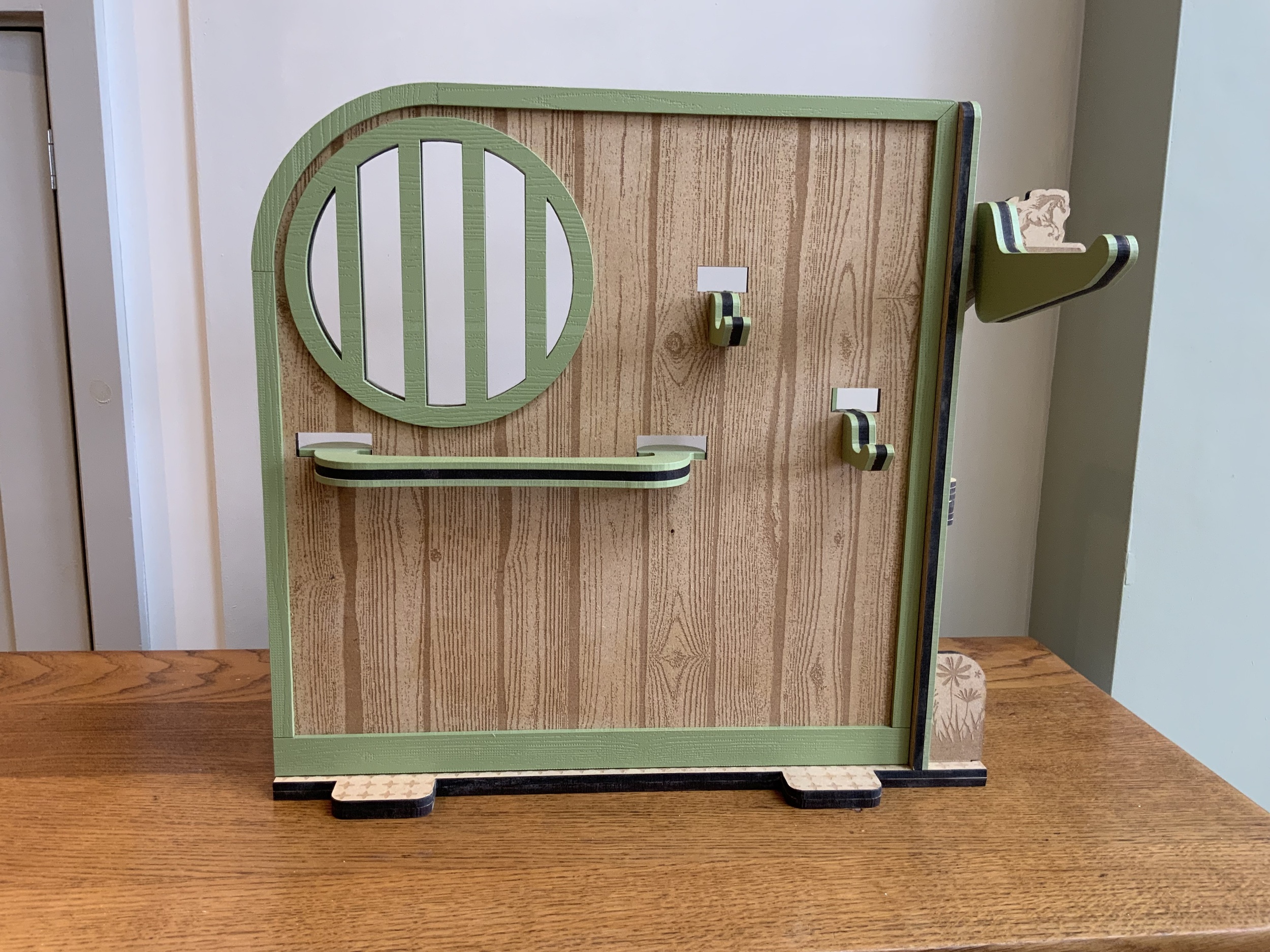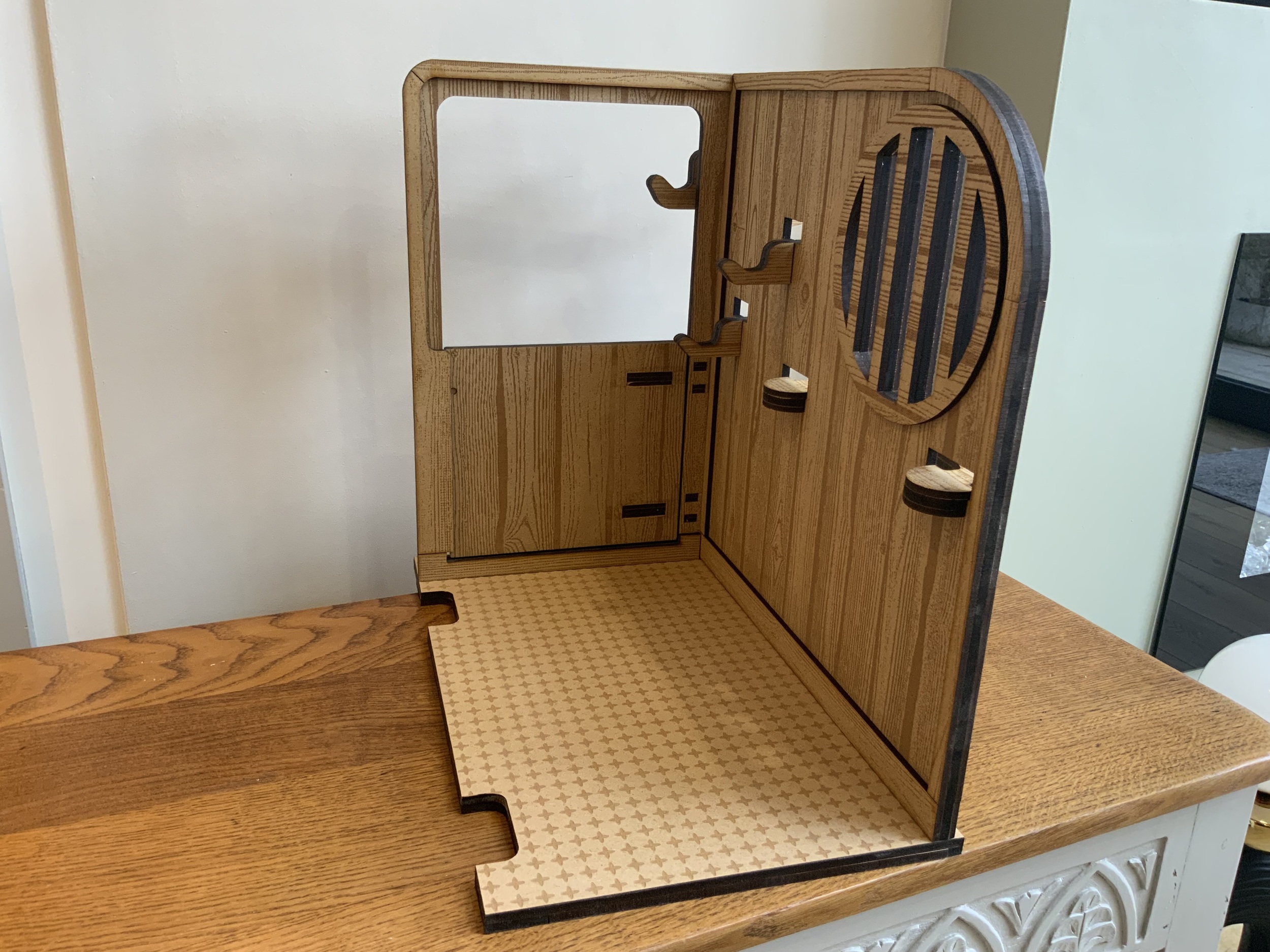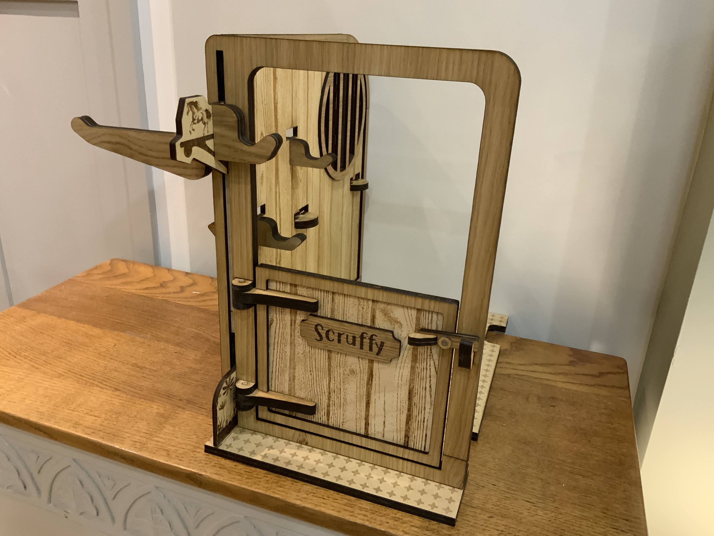 A beautifully handmade wooden pony stable, perfectly sized for LeMieux toy ponies, ideal for imaginative play and tidy storage.