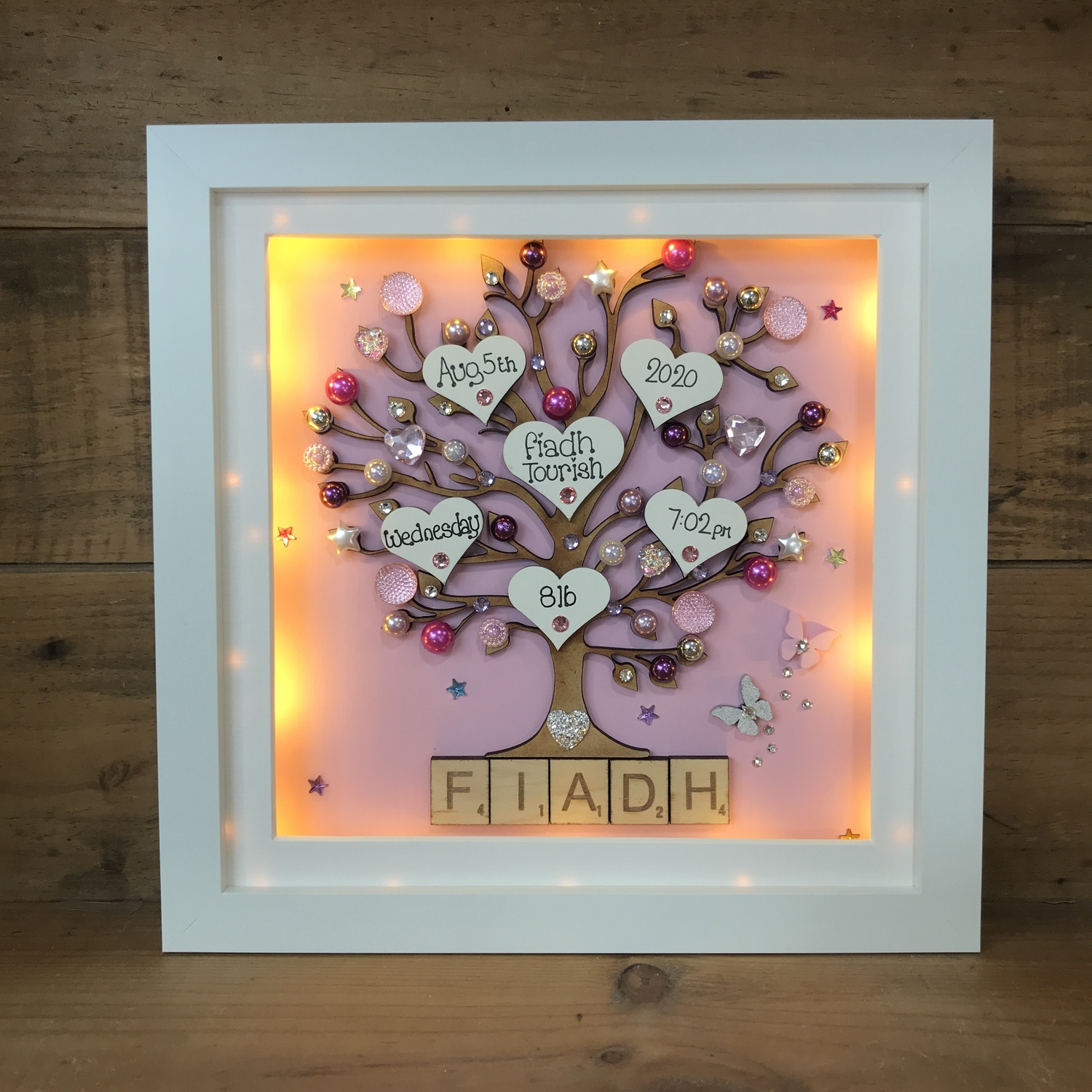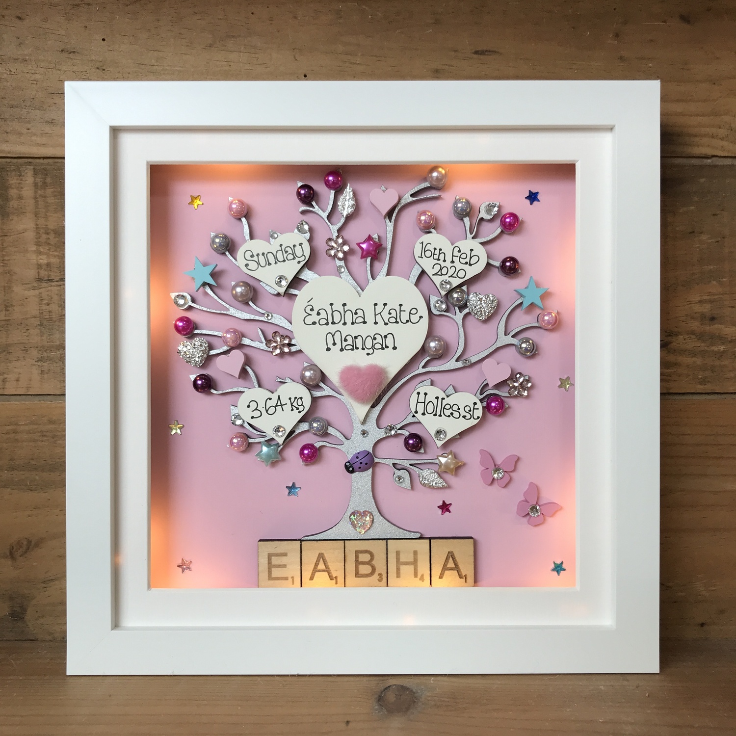 Create a magical moment with this beautifully handcrafted 9” deep box frame, designed to add sparkle and sentiment to any nursery or child’s bedroom. Optional LED lights offer a soft, comforting glow—perfect for bedtime or display.