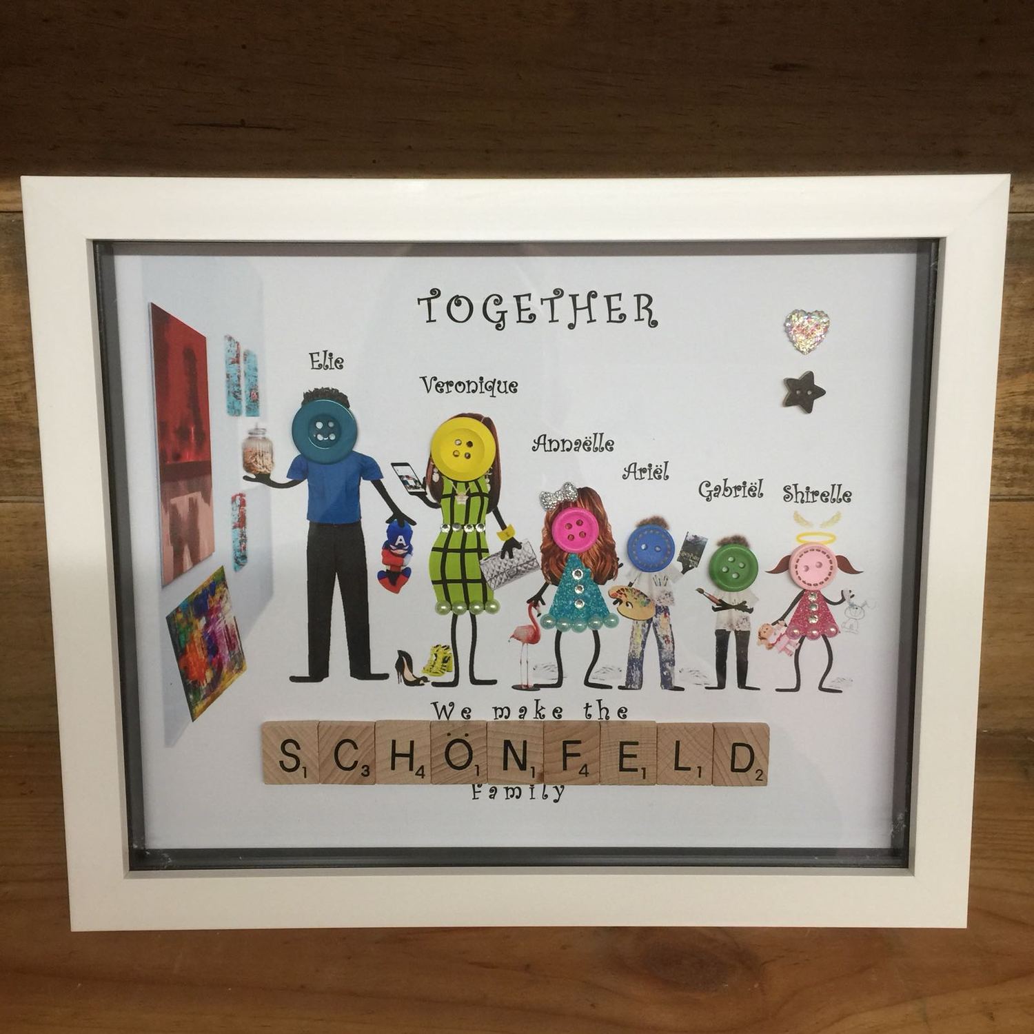 Create a unique family picture with our Personalised Family button head frame, making it perfect to display in any room. It’s a unique gift for a birthday, housewarming or for dad on Father's Day!