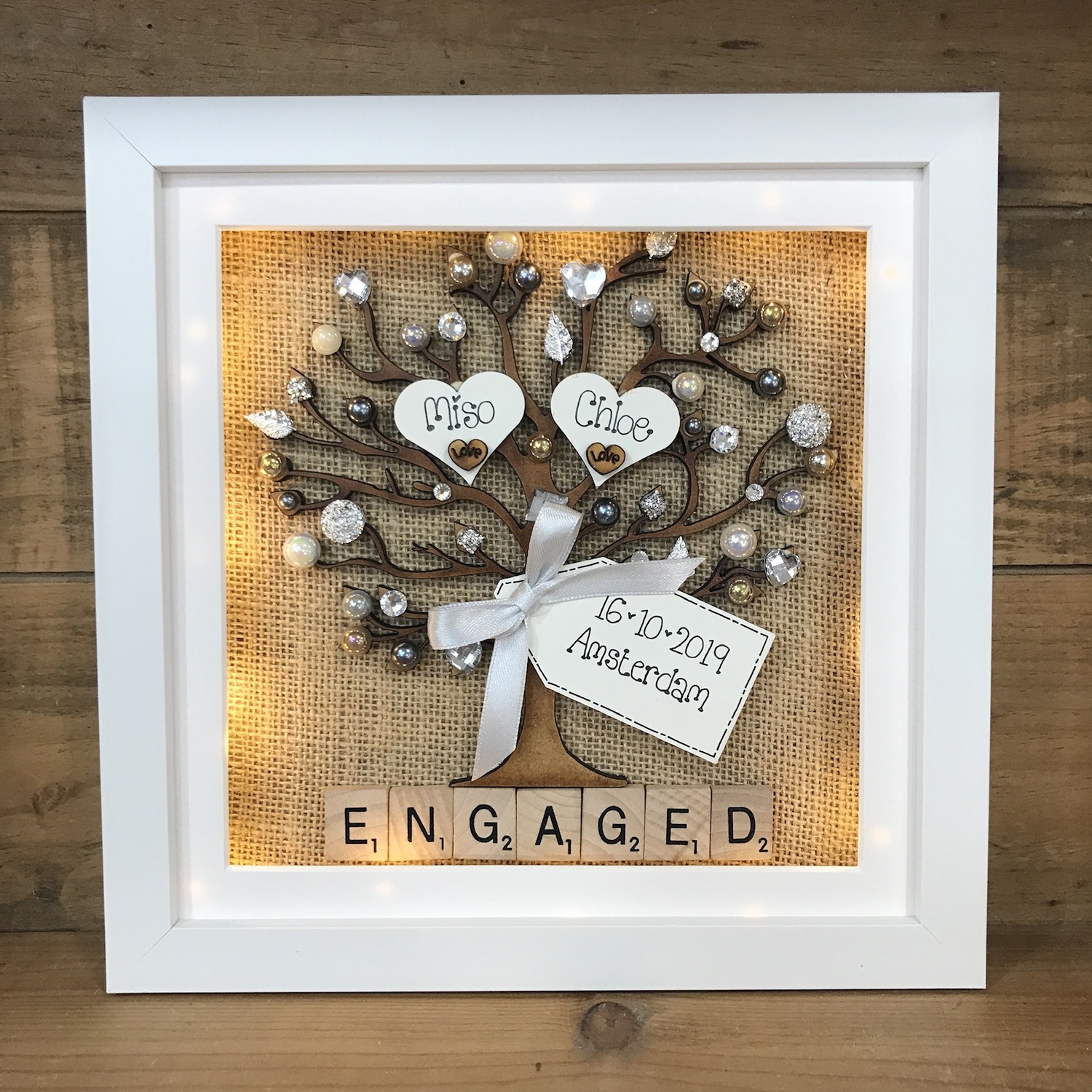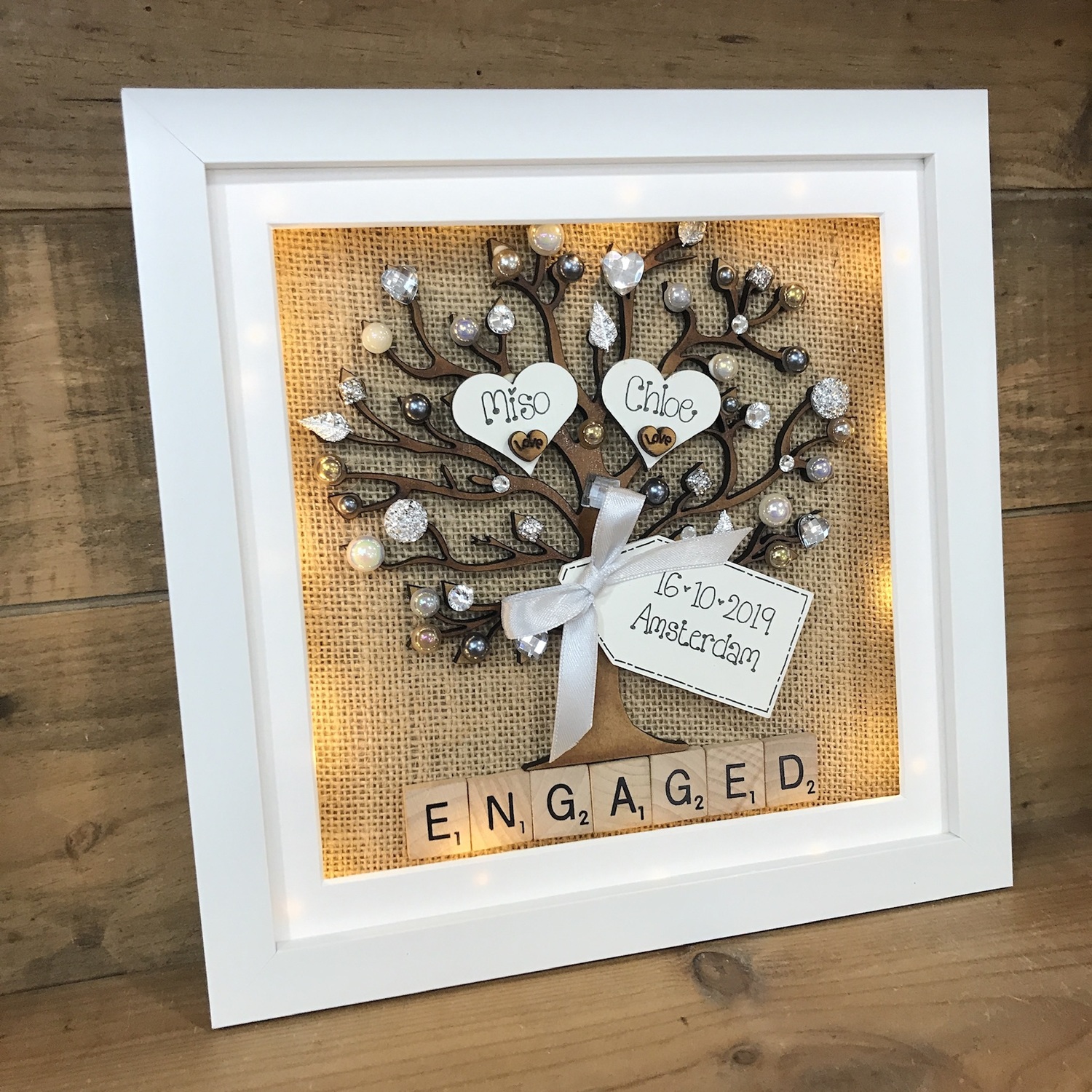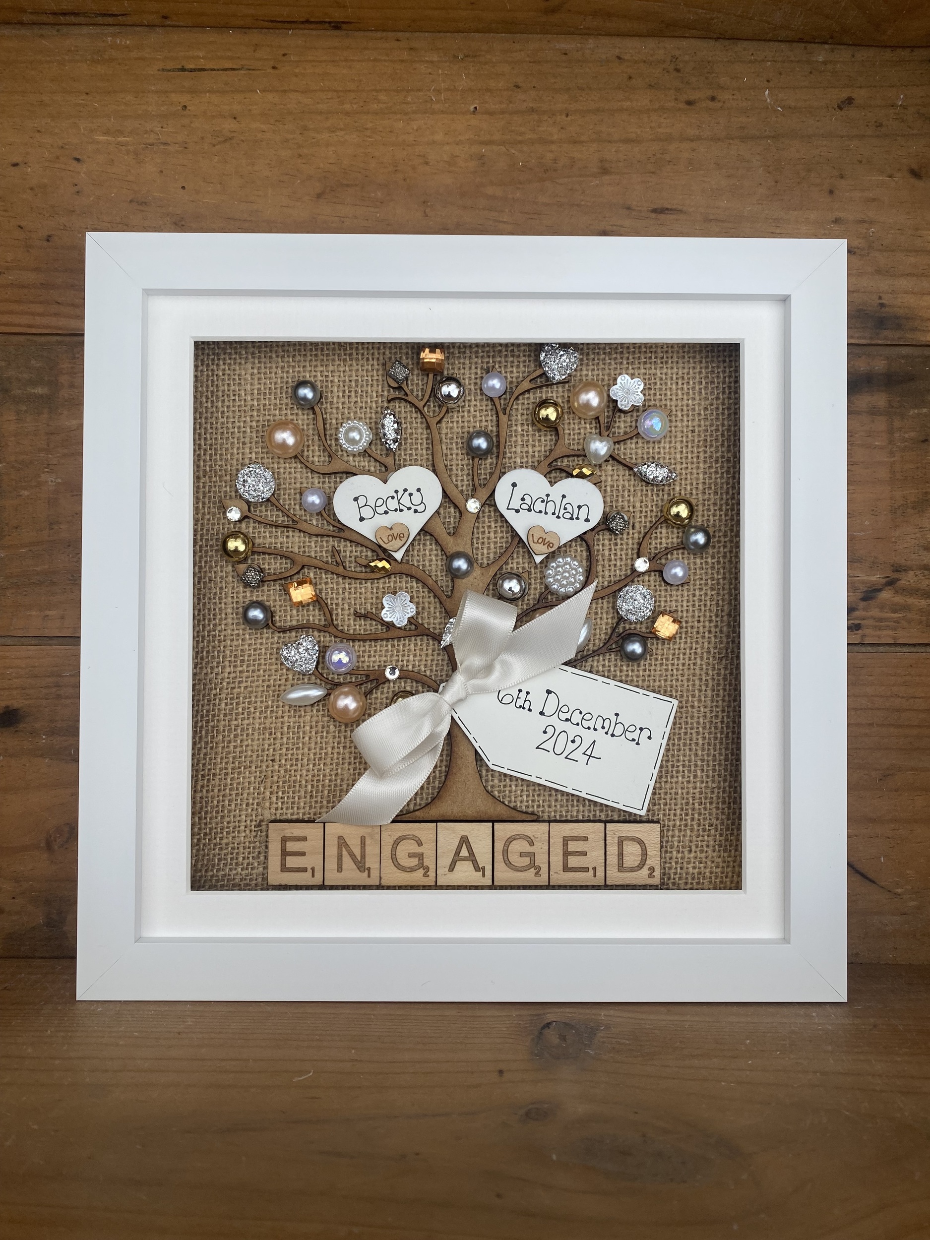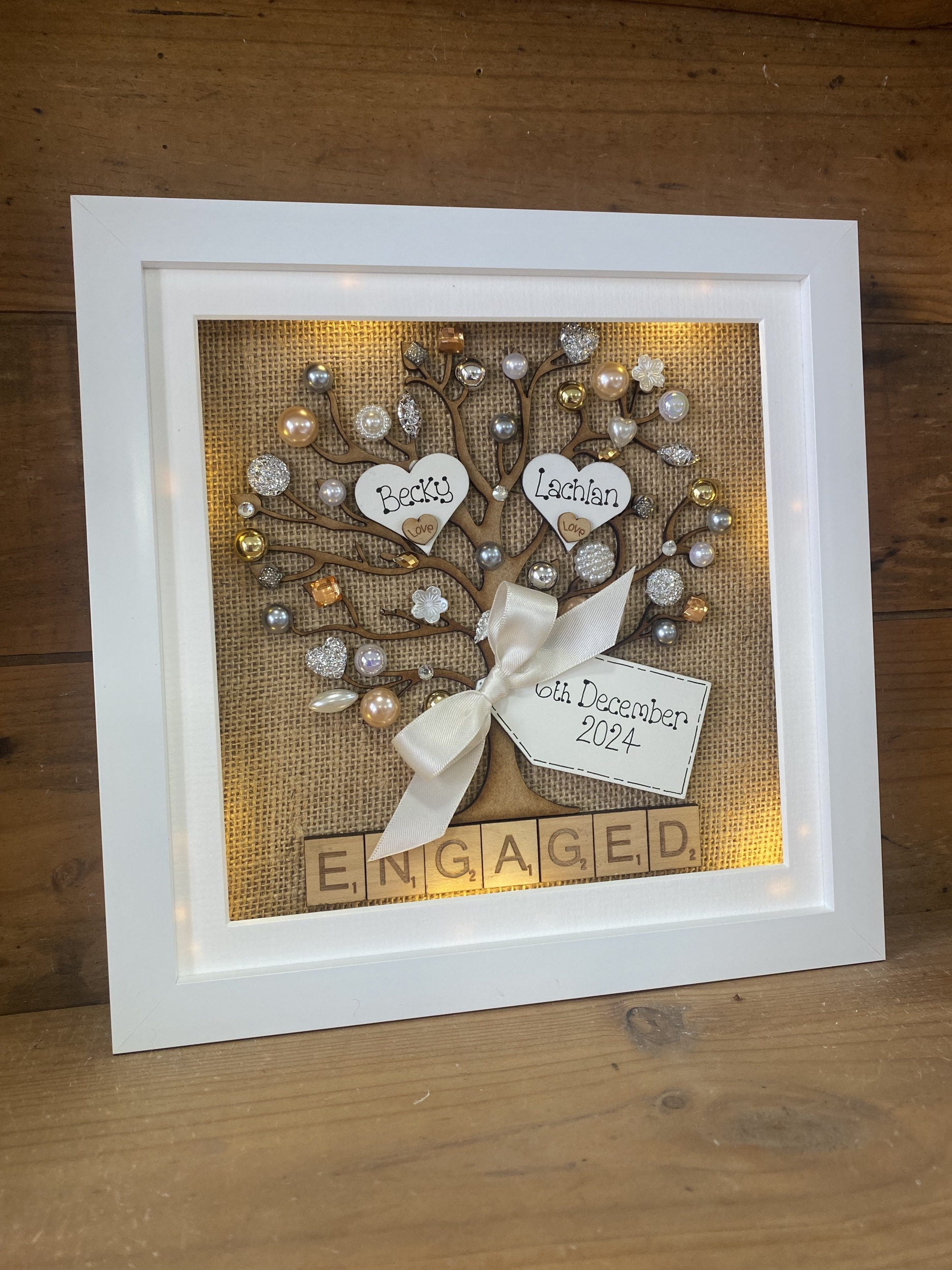 Rustic Personalised Engagement Frame – Hessian Tree of Life with Names & Date