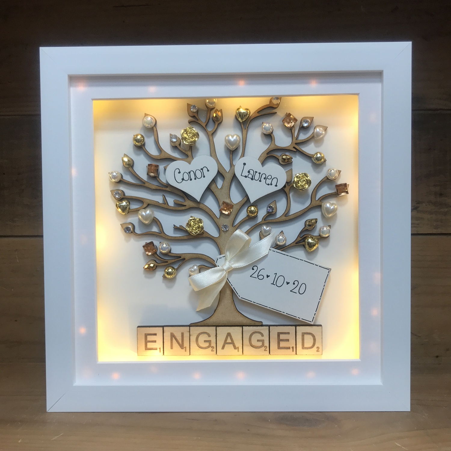 • Optional Wooden Date Tag: A sweet touch to mark the engagement date.