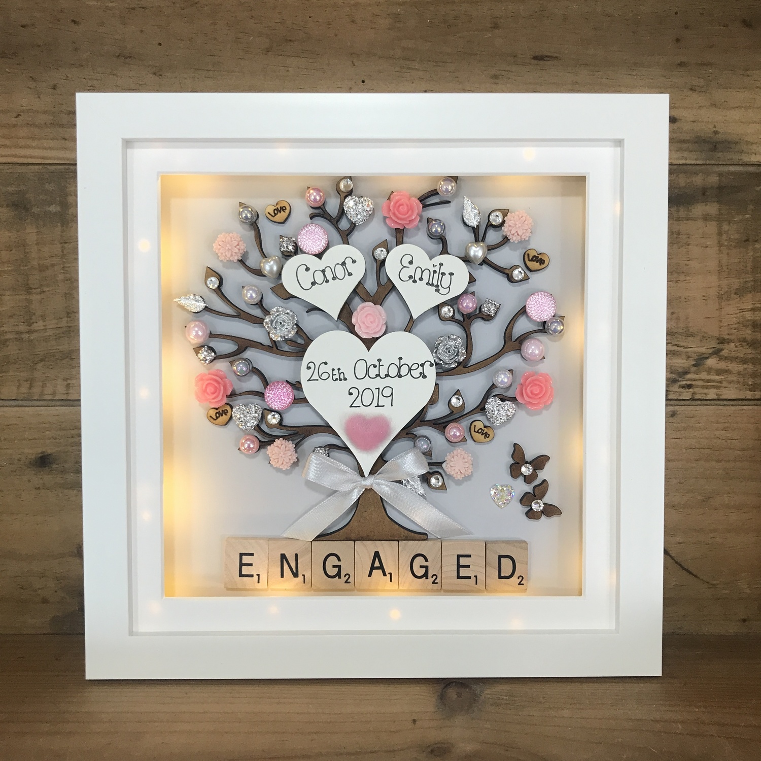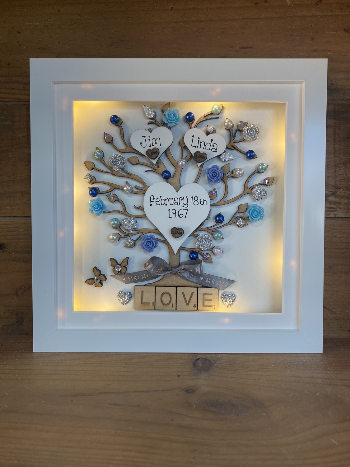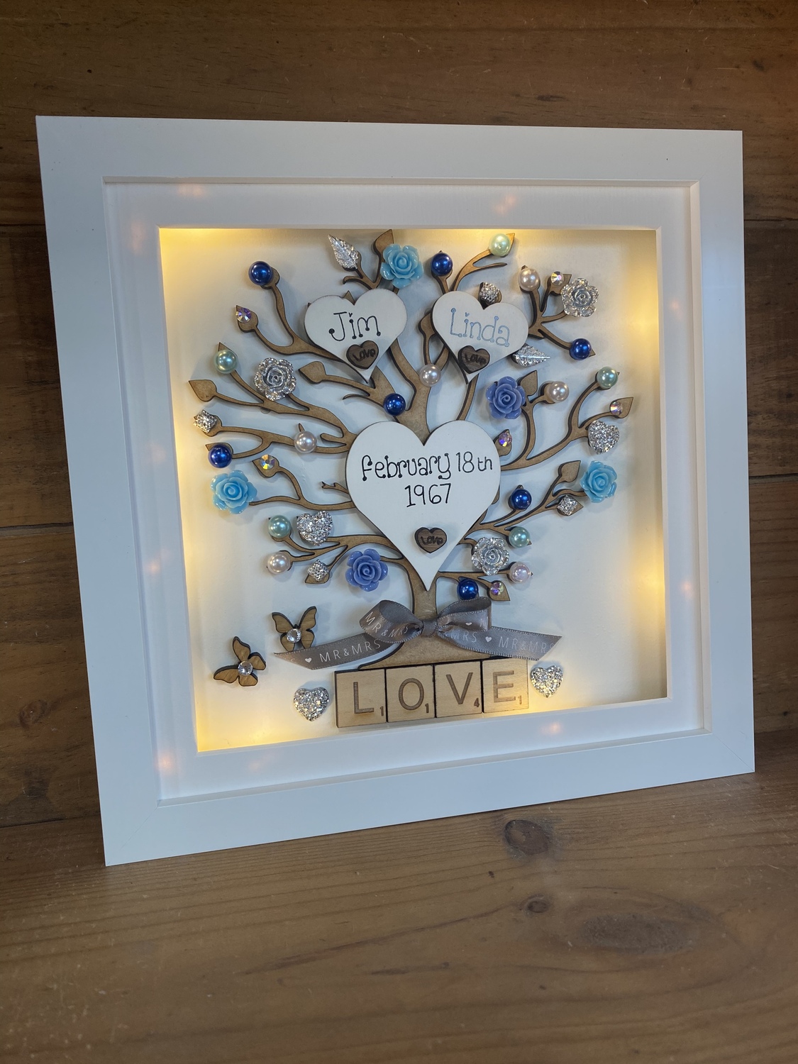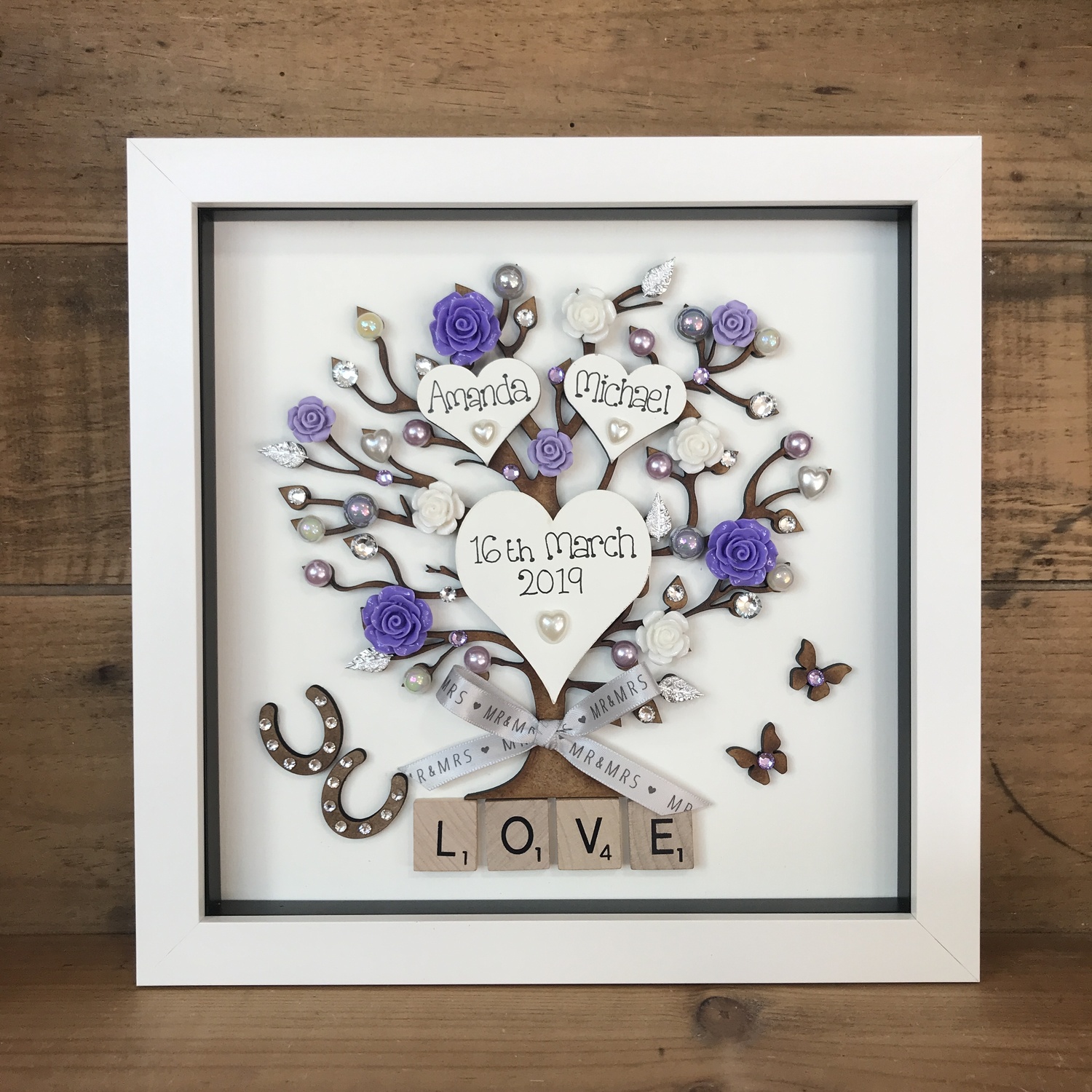 With a laser cut tree embellished with flowers, pearls, horseshoes and diamanté’s