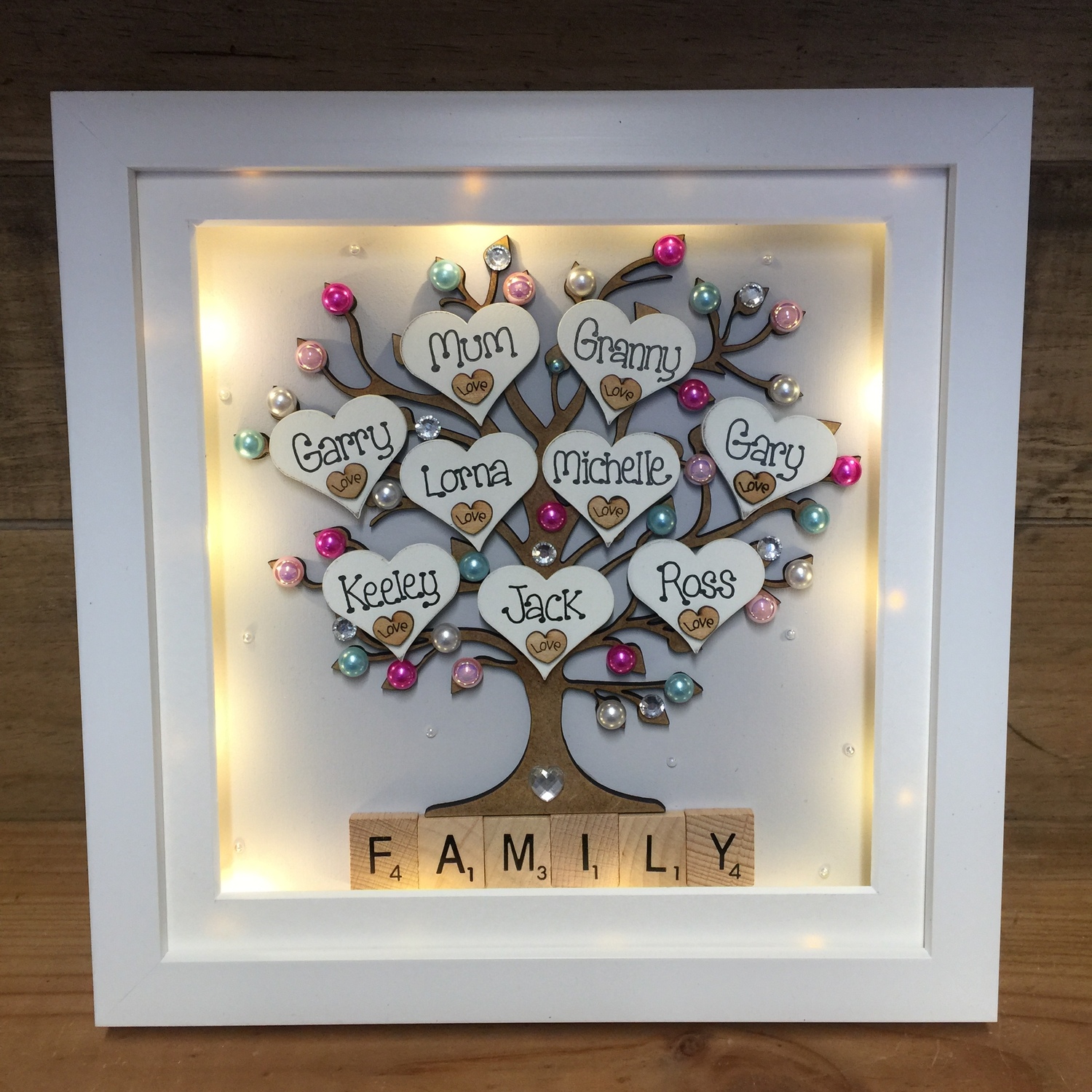 - A charming 9” box frame made by hand, with optional LED lights just for you and the lucky recipient