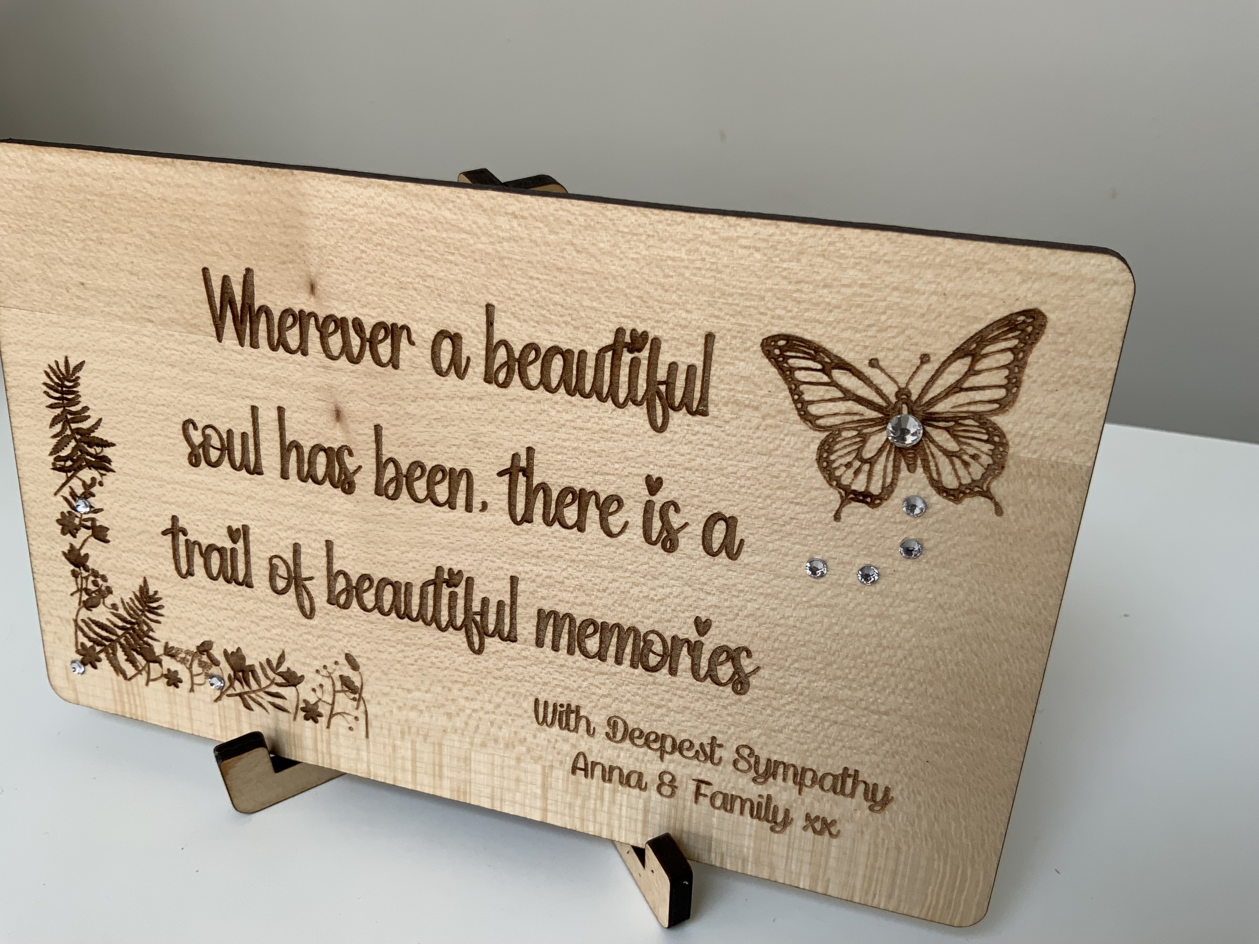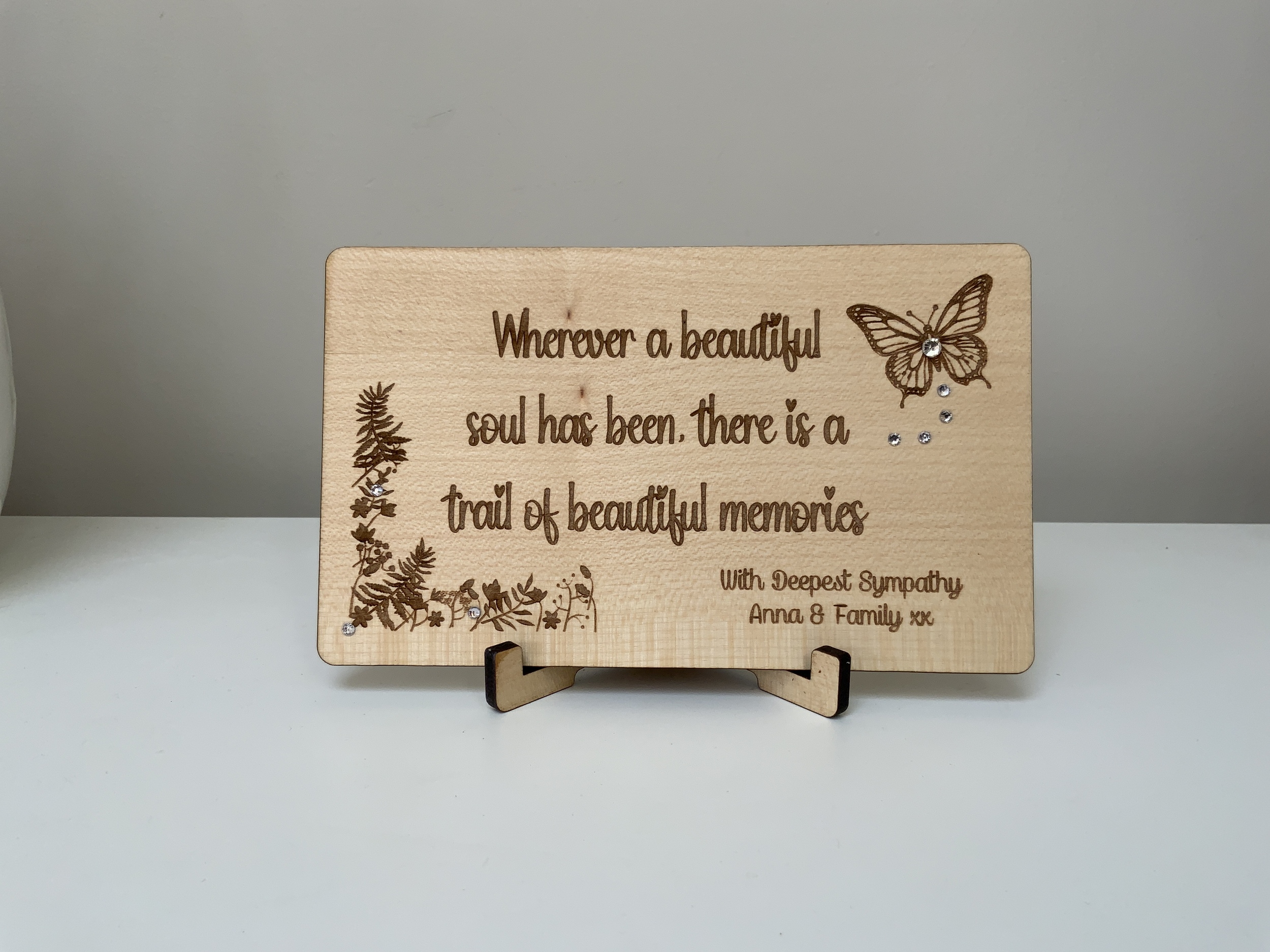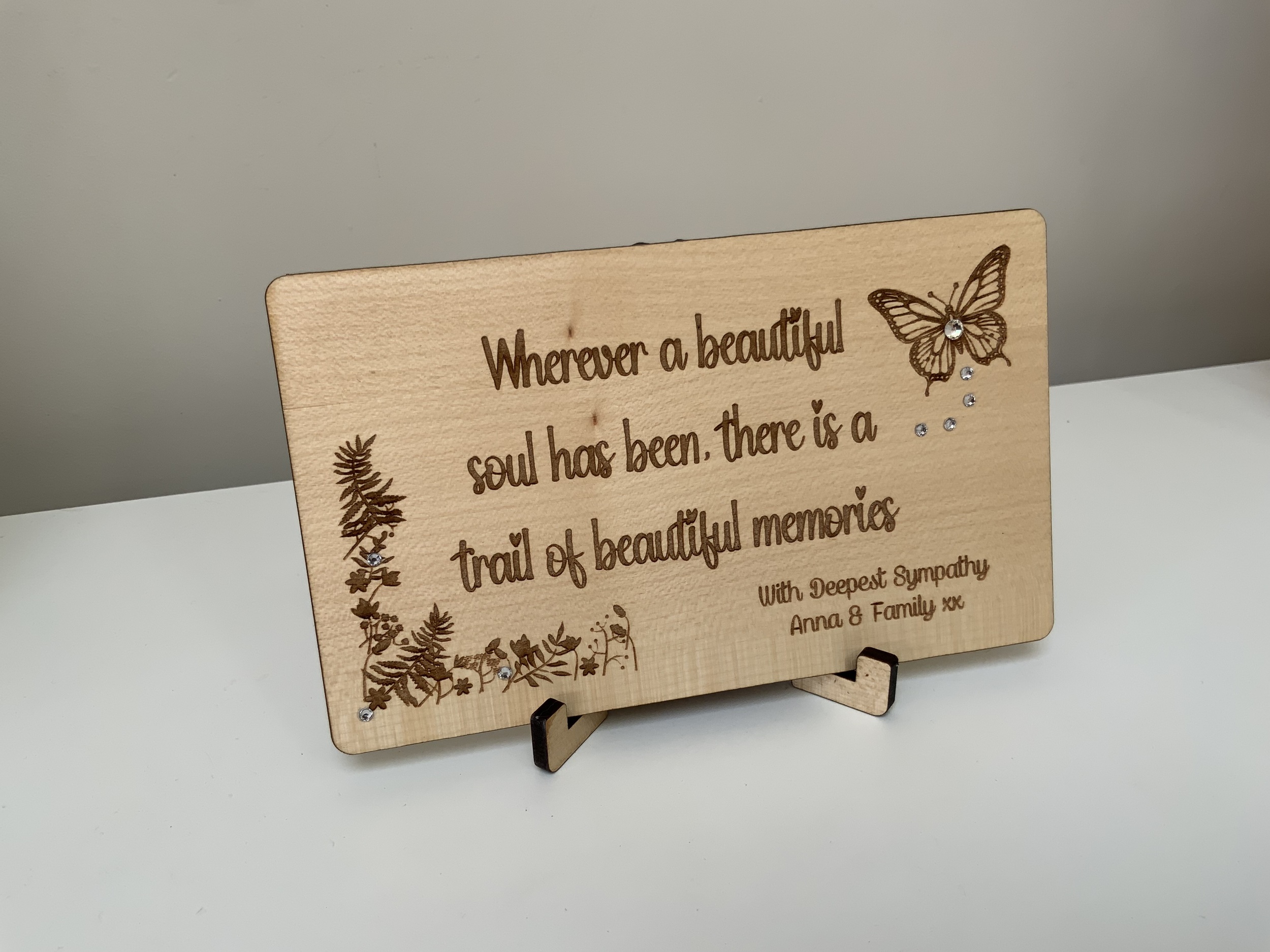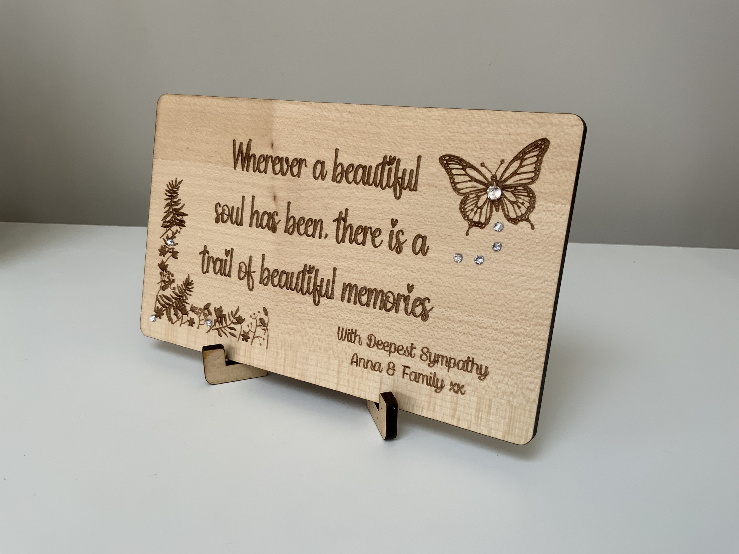 Offer a lasting expression of sympathy with this beautifully crafted engraved plaque, thoughtfully designed as a lasting alternative to a traditional condolence card.