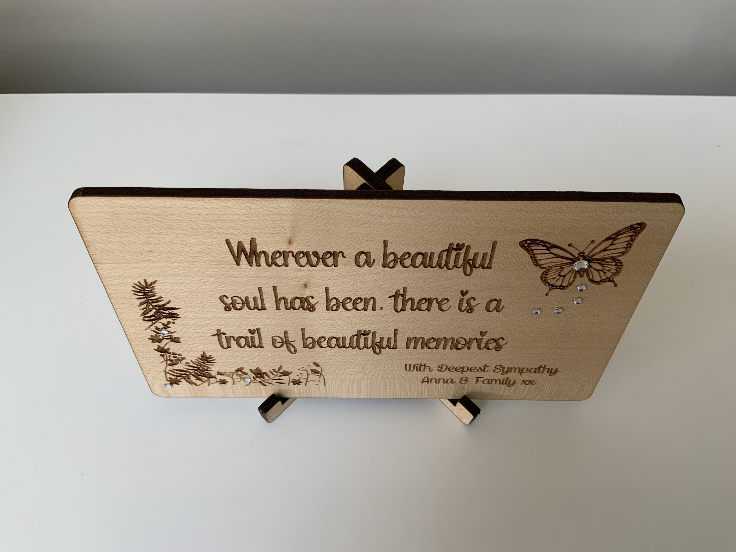 🌿 Engraved Wooden Condolence Plaque – Diamanté Embellished Keepsake with Stand 🌿