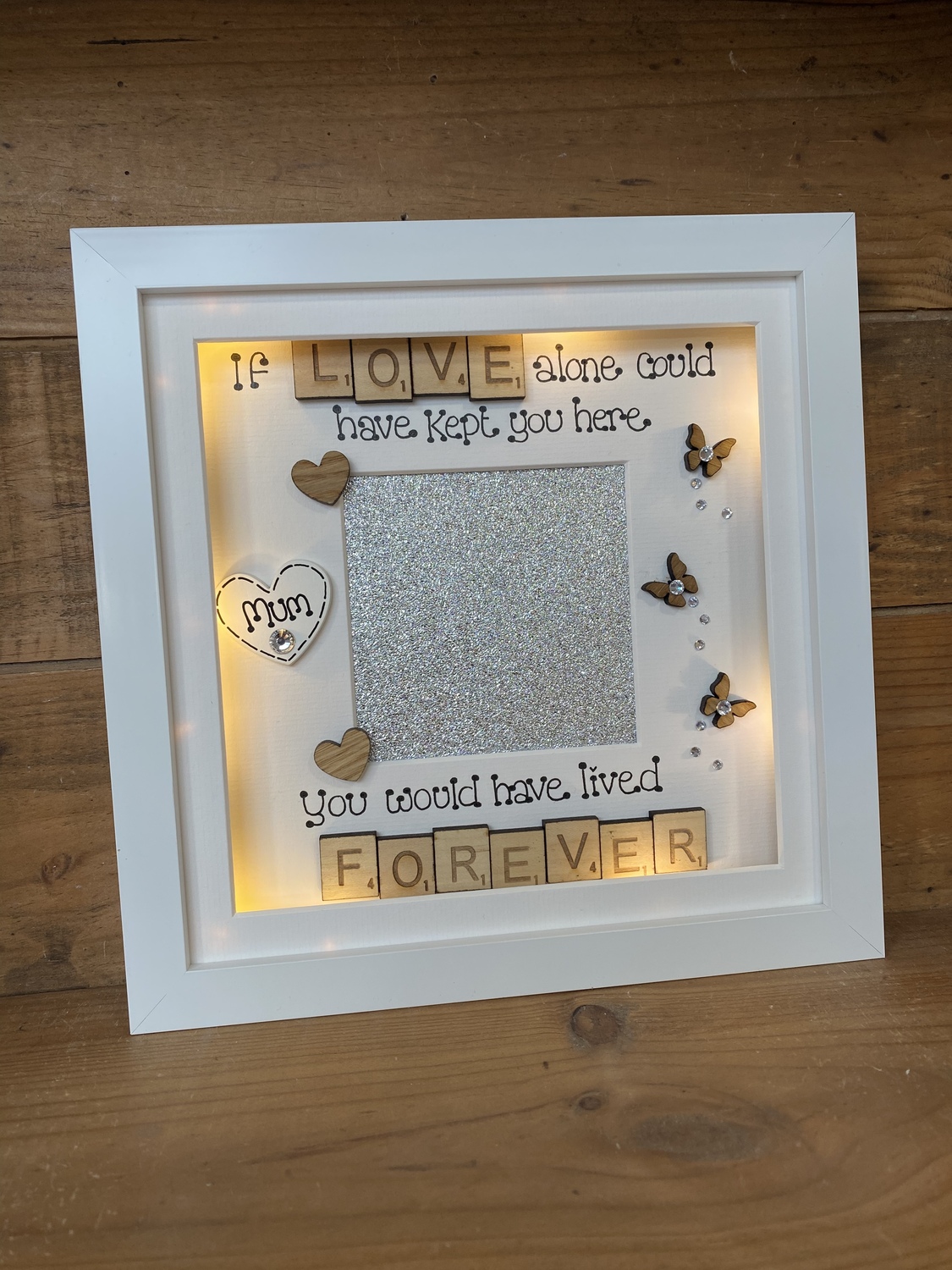 Remember that special someone who touched your life in a way which is hard to put into words and you’ll always feel them by your side. With a custom memorial frame that lights up a corner of the room while lighting up your heart, you’ll be able to smile whenever you think about them. Perfect when you want to make sure those precious memories never fade.