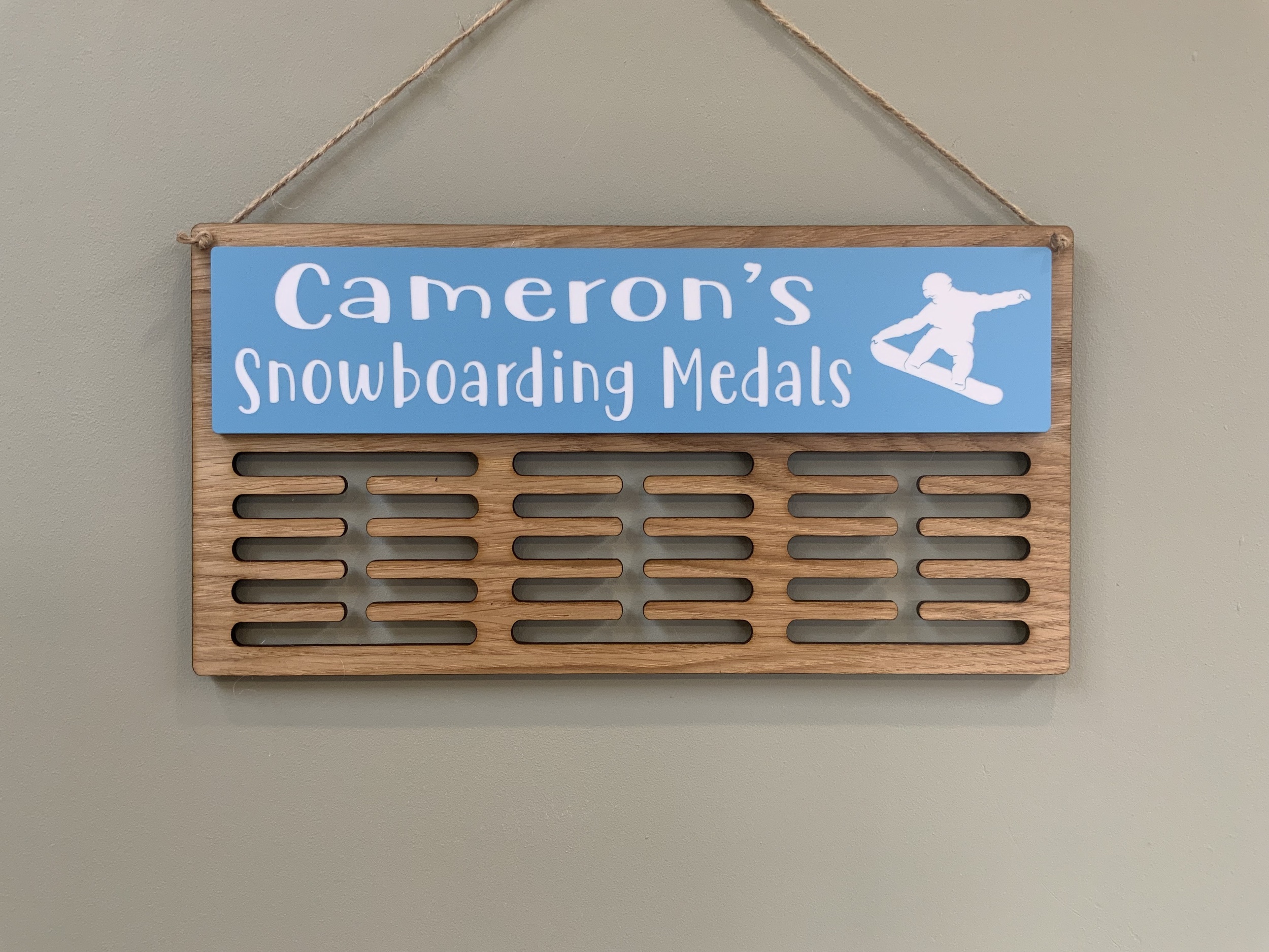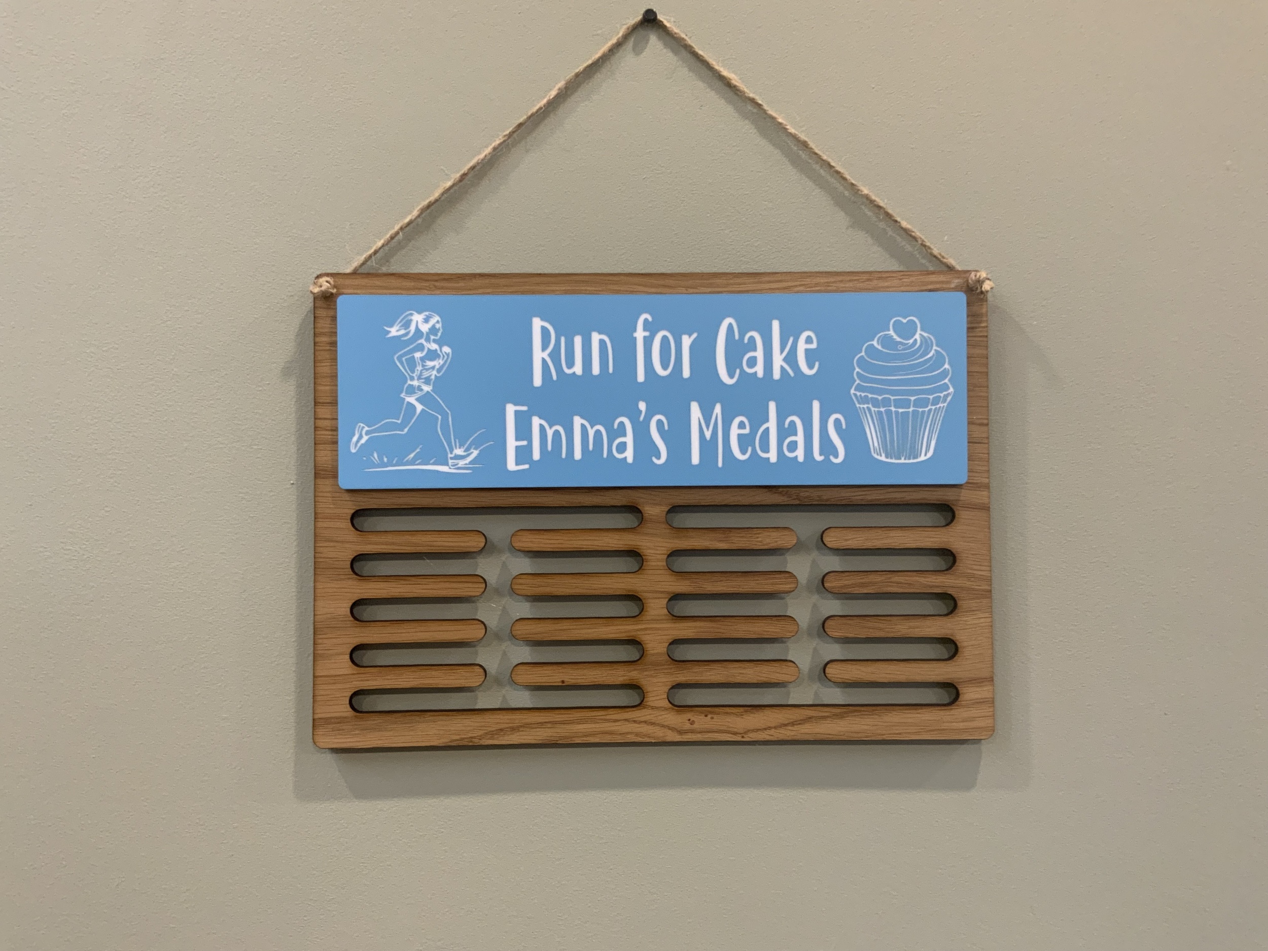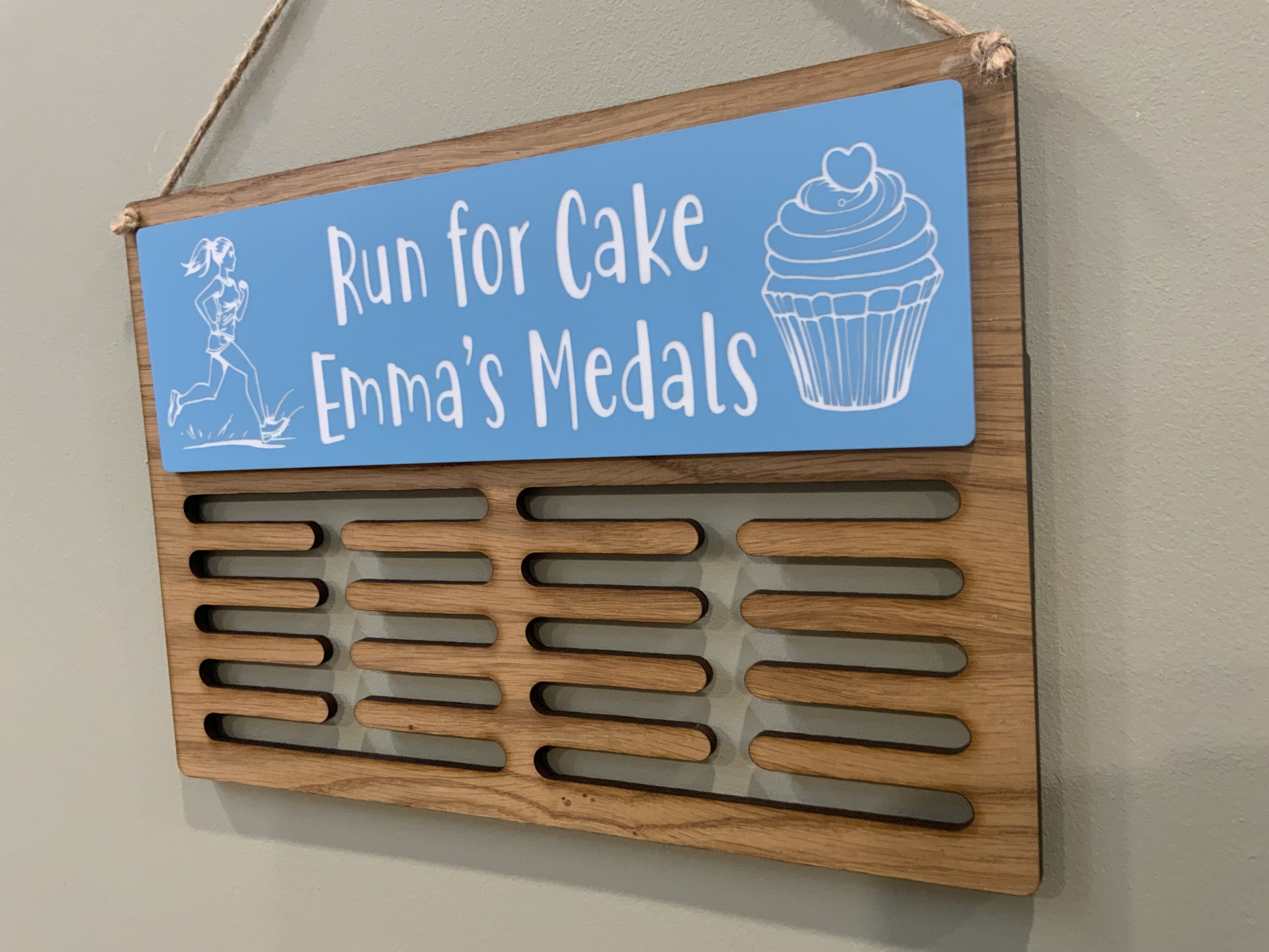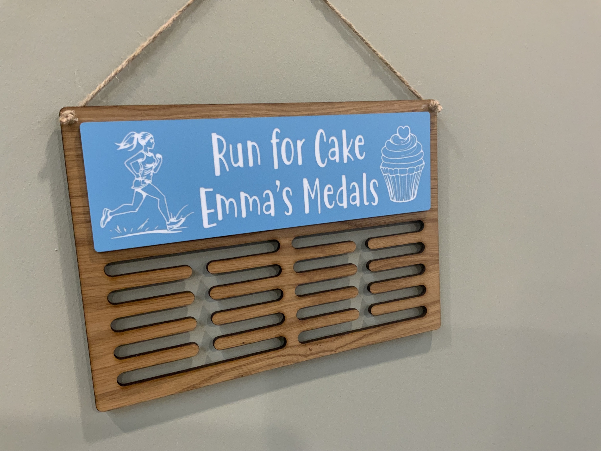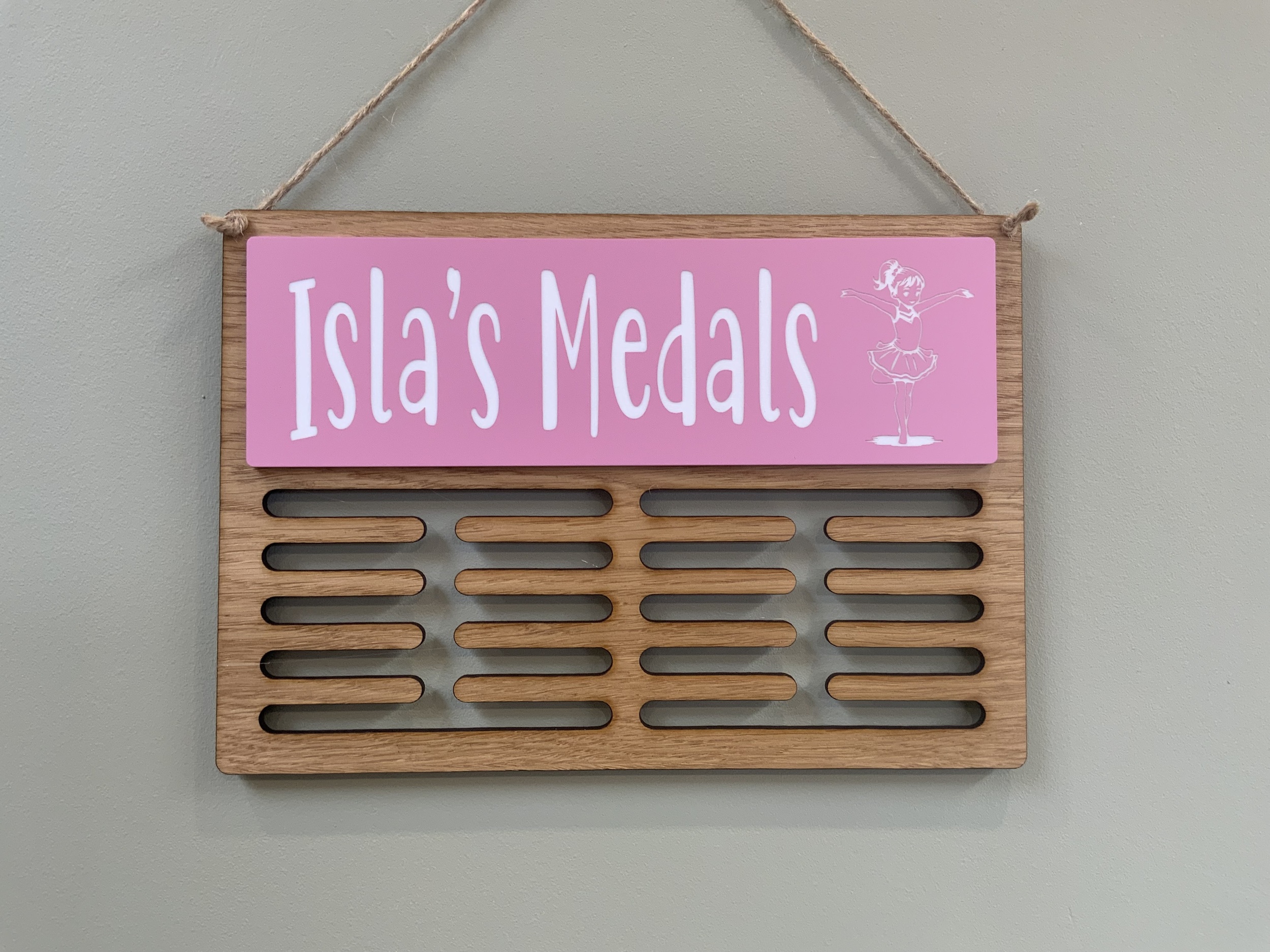 Show off your achievements with a beautifully crafted oak medal hanger, personalised just for you. Whether it’s running, swimming, gymnastics or something completely unique, we’ll create a design that matches your sport and your style.