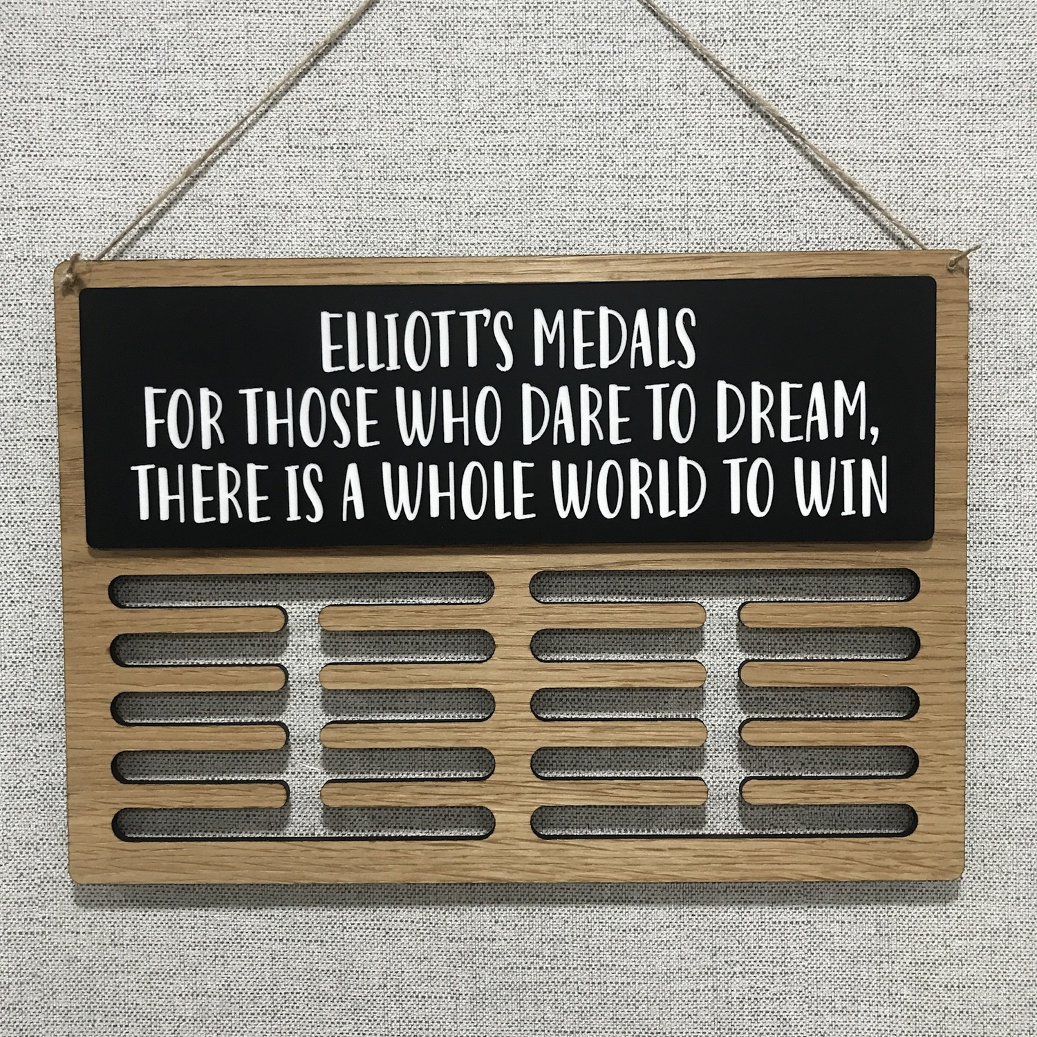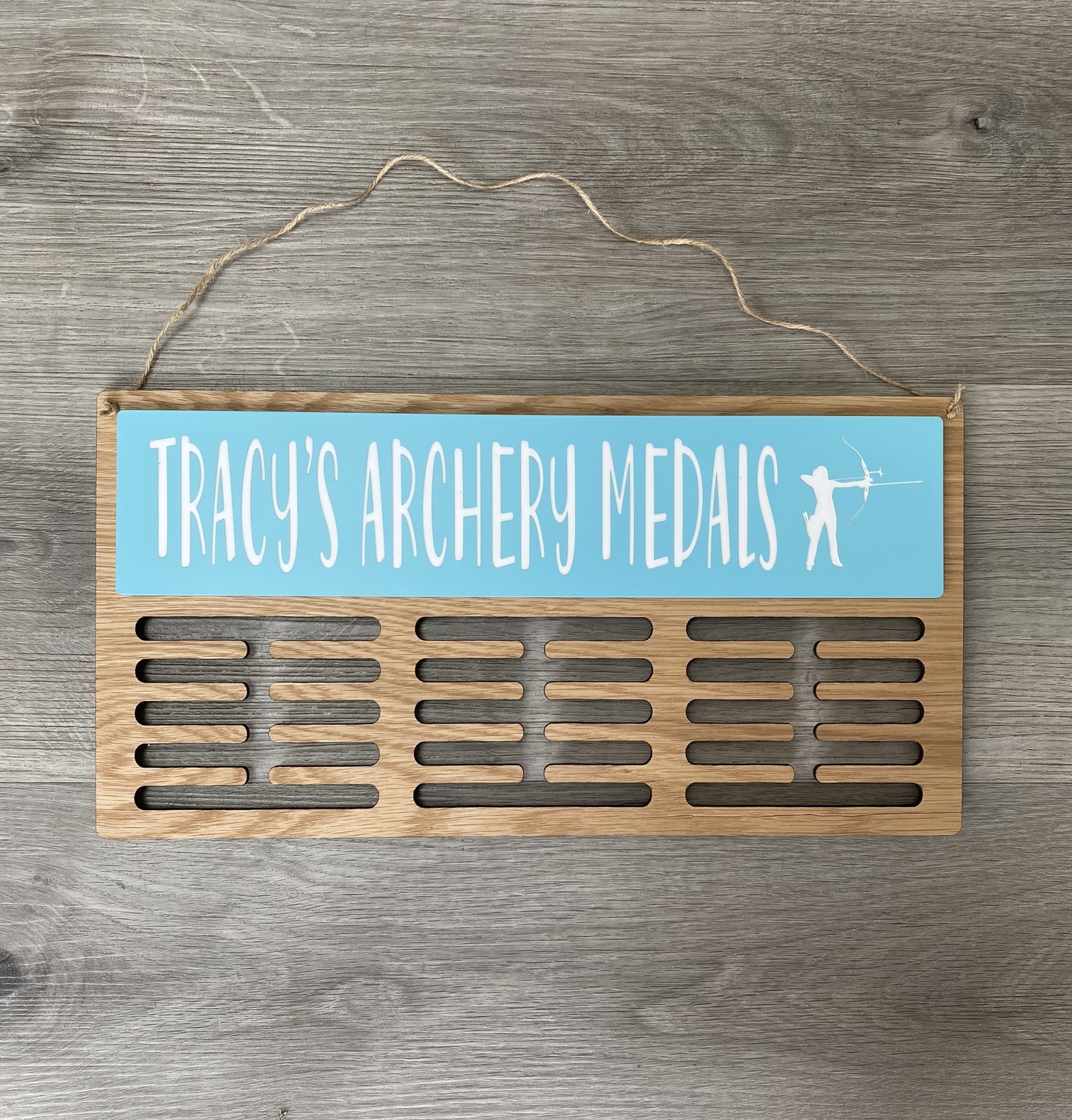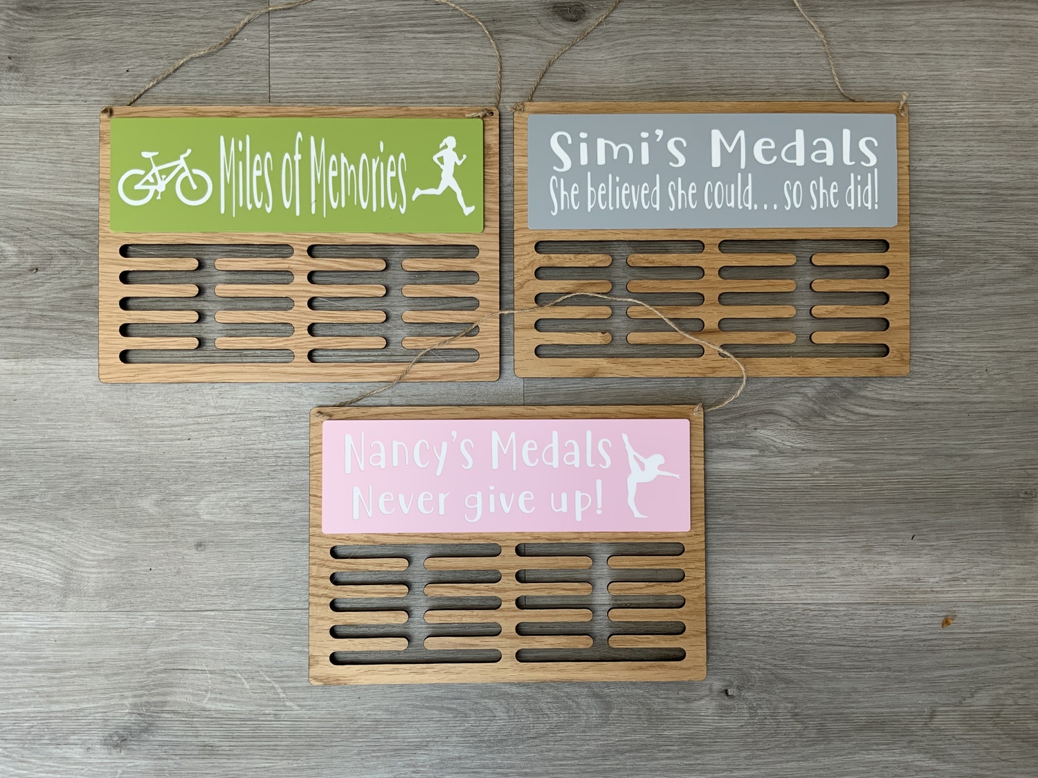 Show off your achievements with a beautifully crafted oak medal hanger, personalised just for you. Whether it’s running, swimming, gymnastics or something completely unique, we’ll create a design that matches your sport and your style.