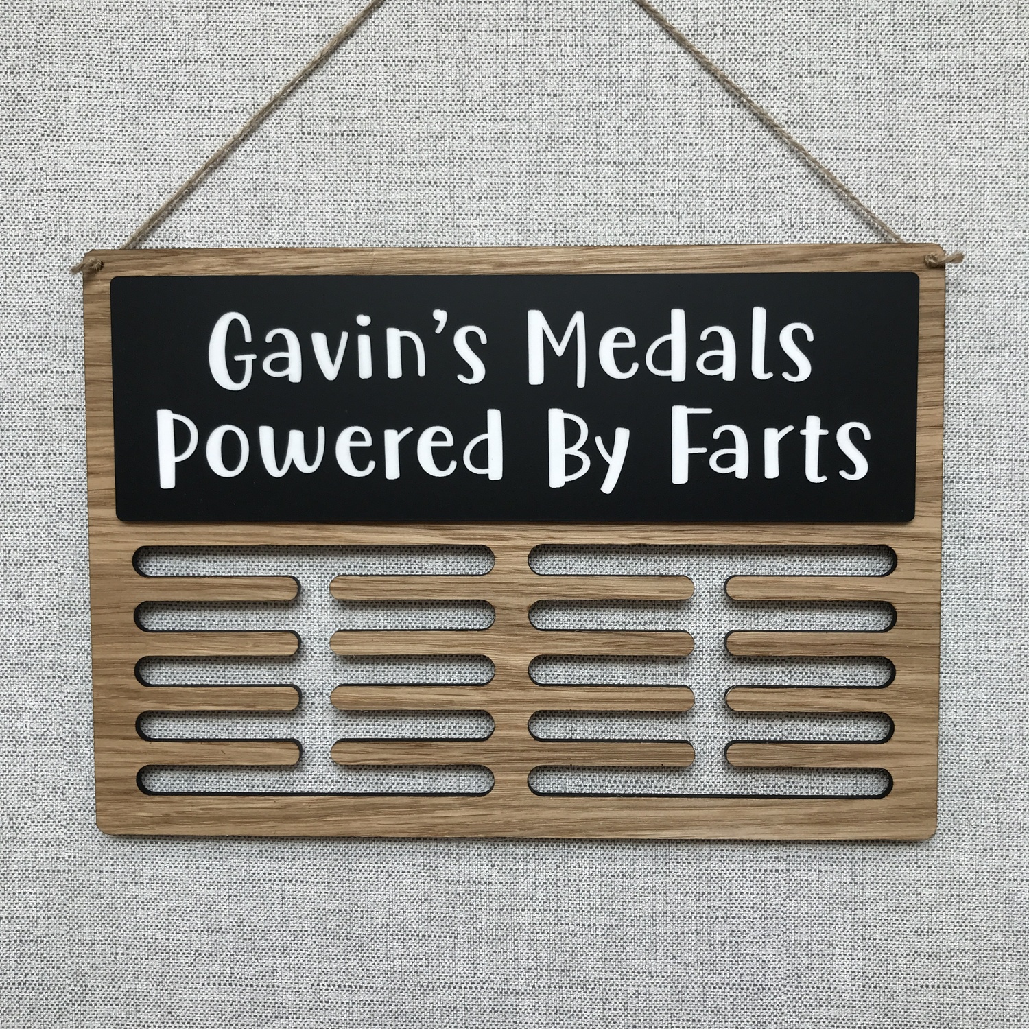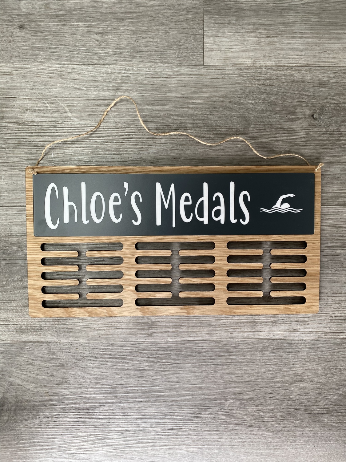 Show off your achievements with a beautifully crafted oak medal hanger, personalised just for you. Whether it’s running, swimming, gymnastics or something completely unique, we’ll create a design that matches your sport and your style.