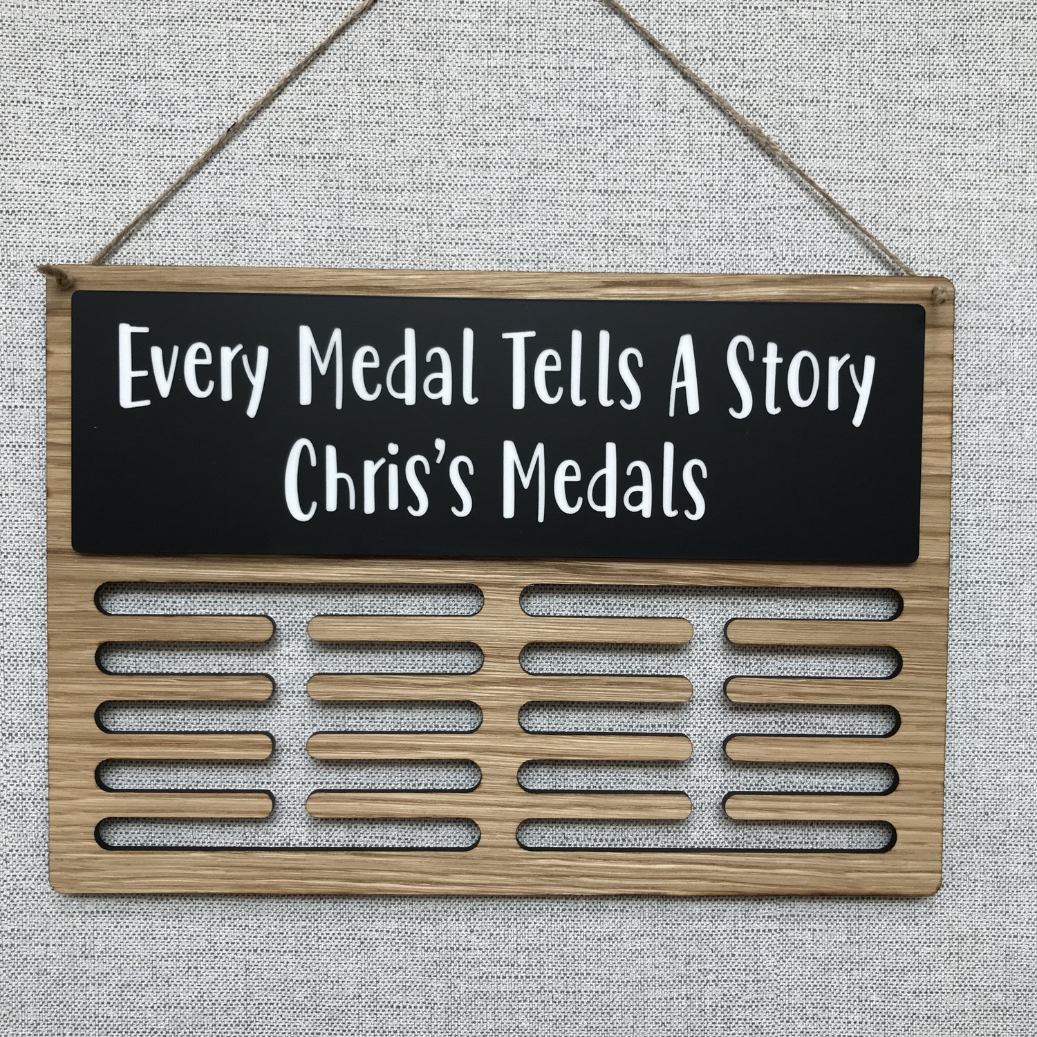 Show off your achievements with a beautifully crafted oak medal hanger, personalised just for you. Whether it’s running, swimming, gymnastics or something completely unique, we’ll create a design that matches your sport and your style.