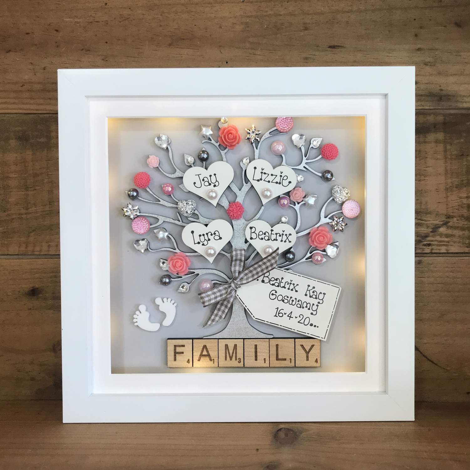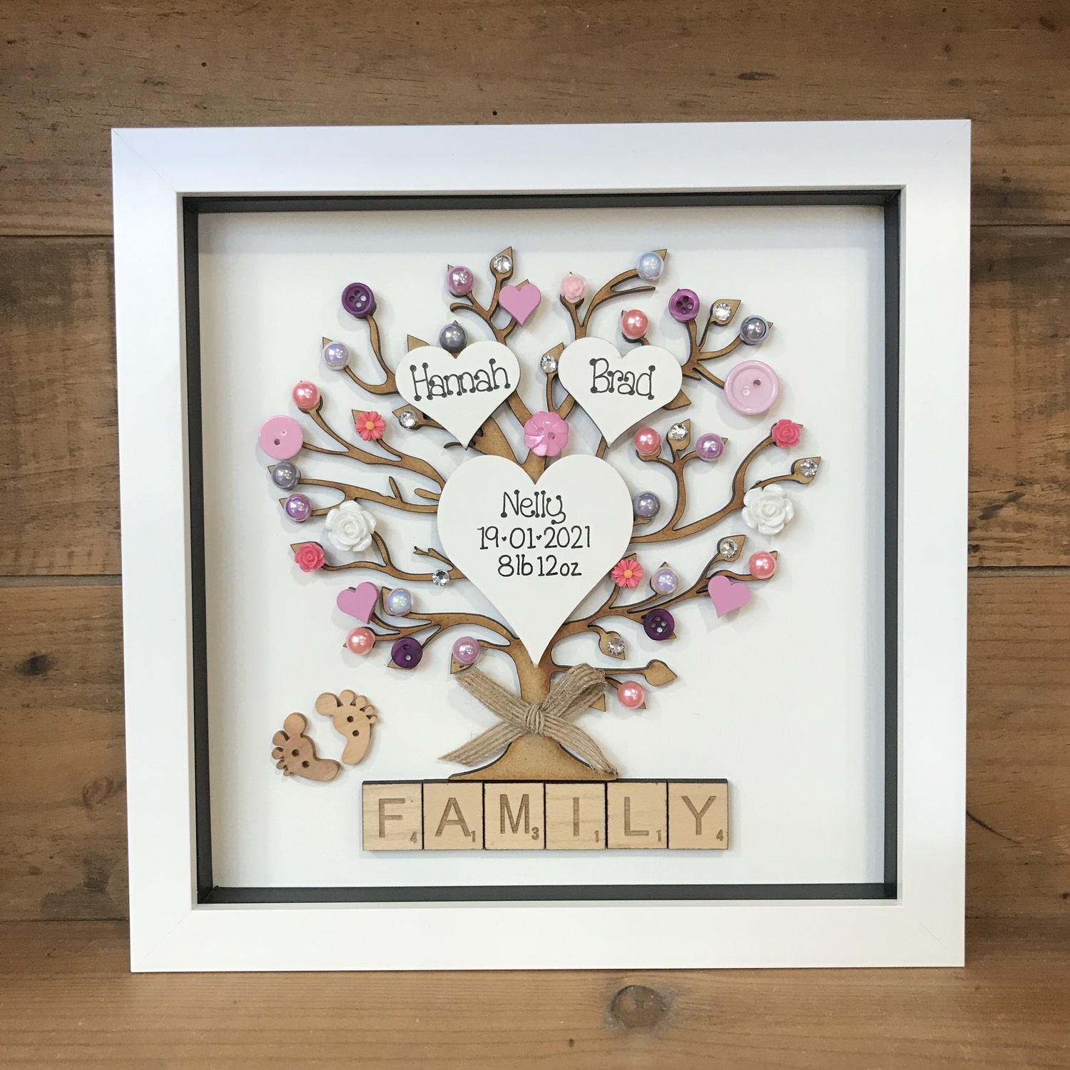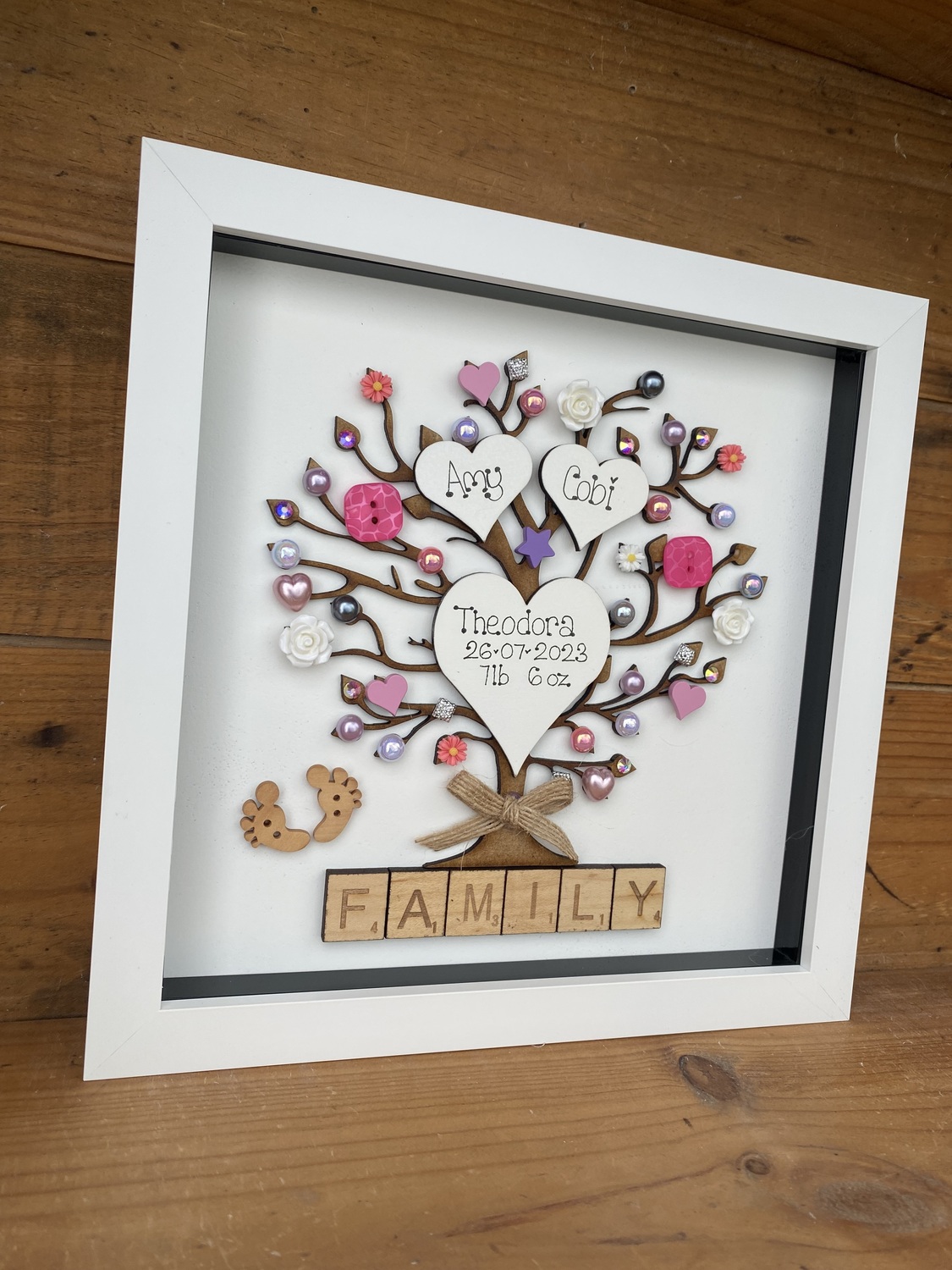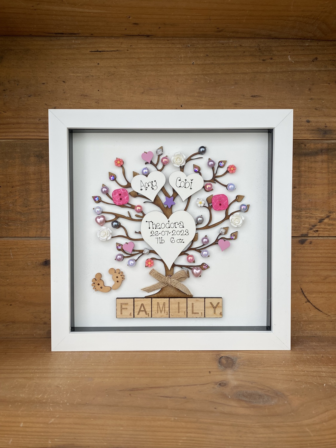 With a tree and hearts that can be personalised with names or special words ( 5 hearts included to leave space for the embellishments)