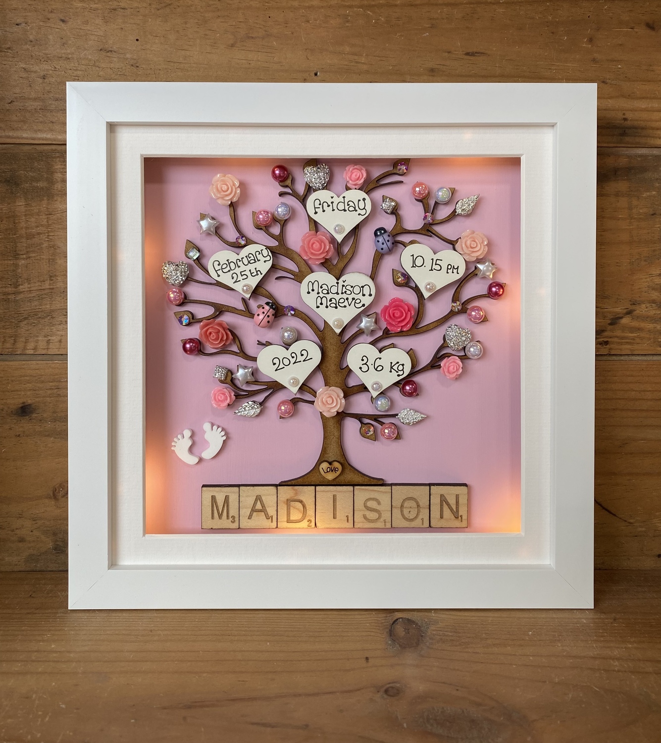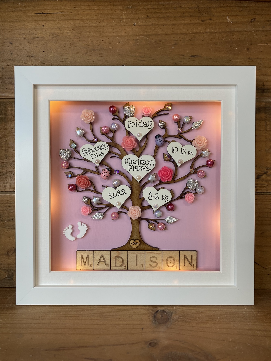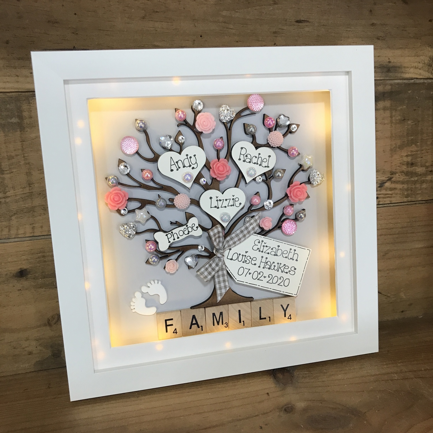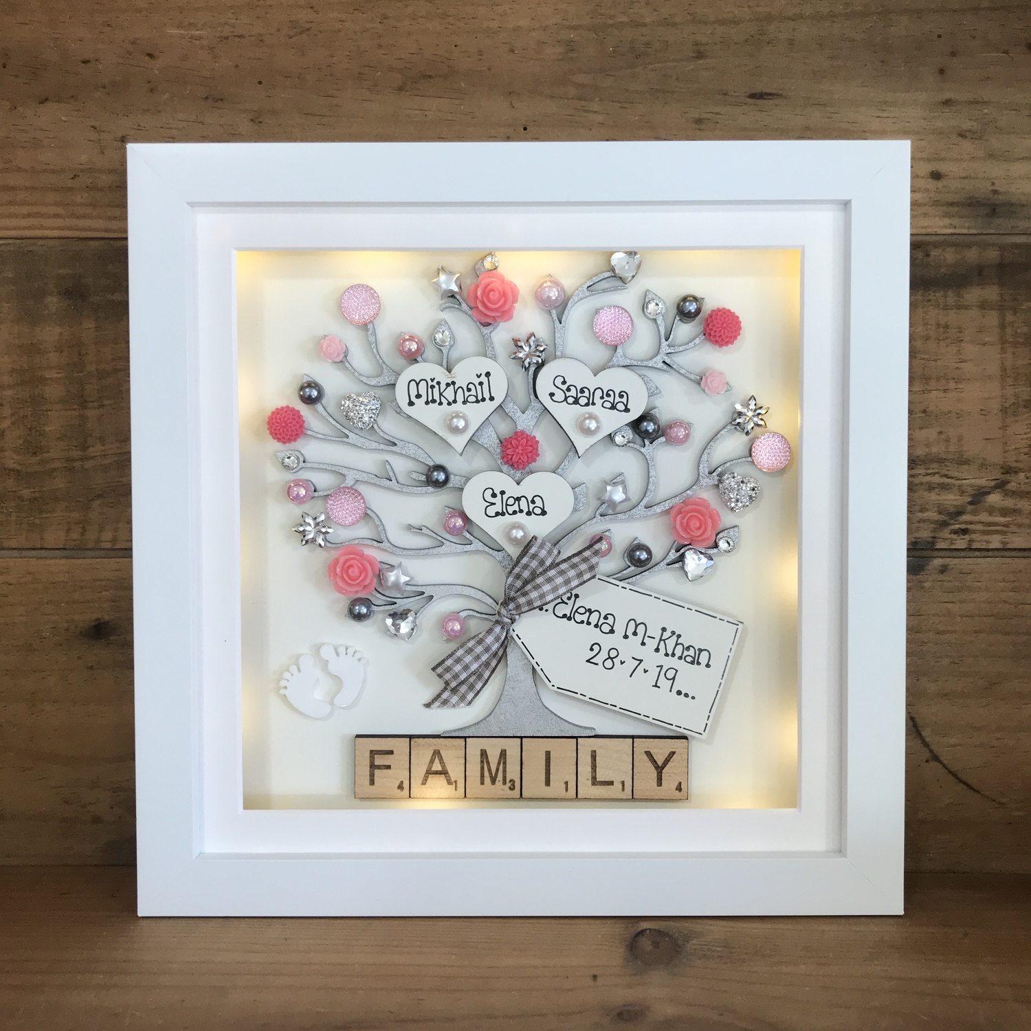 With a tree and hearts that can be personalised with names or special words ( 5 hearts included to leave space for the embellishments)