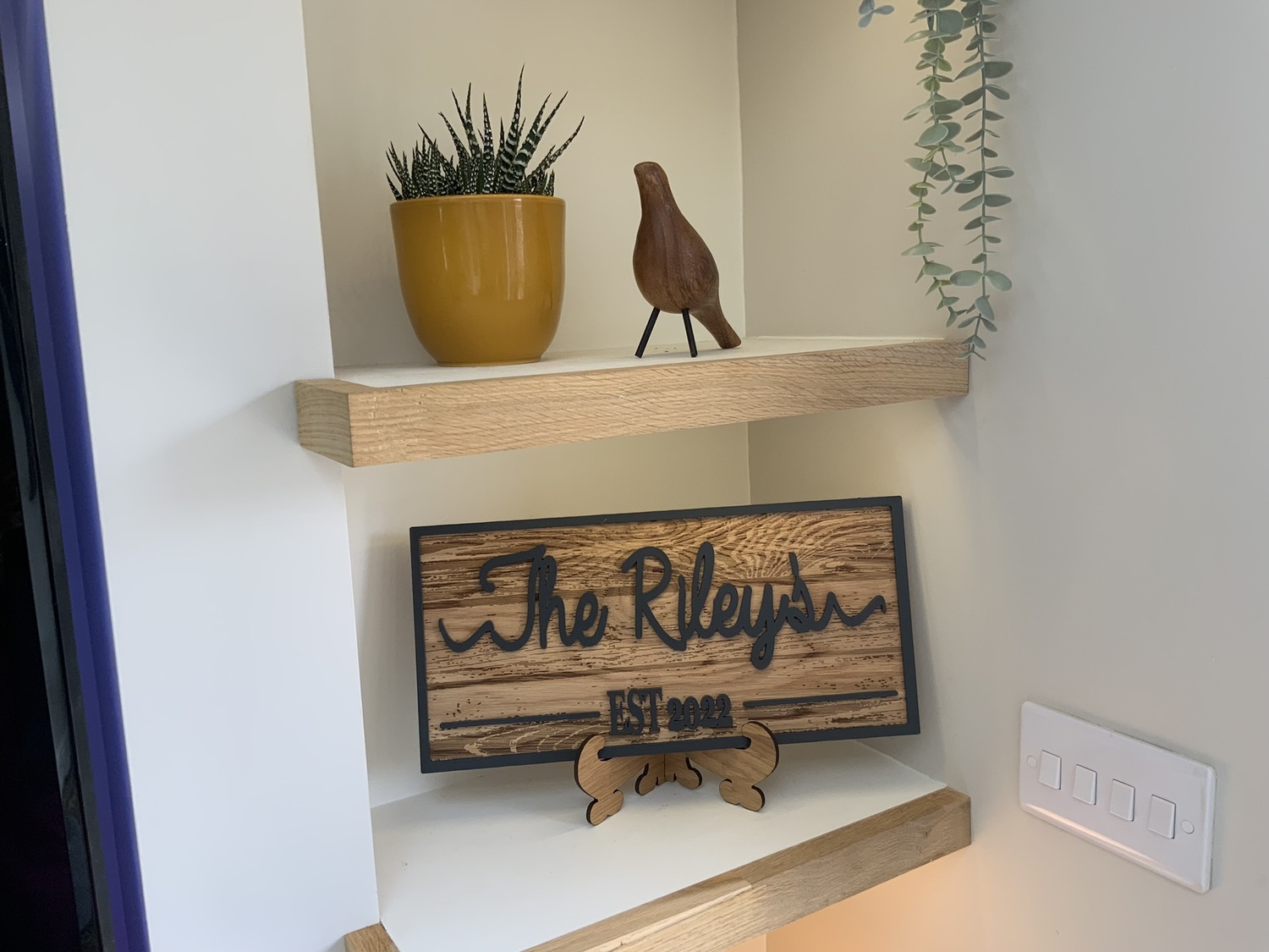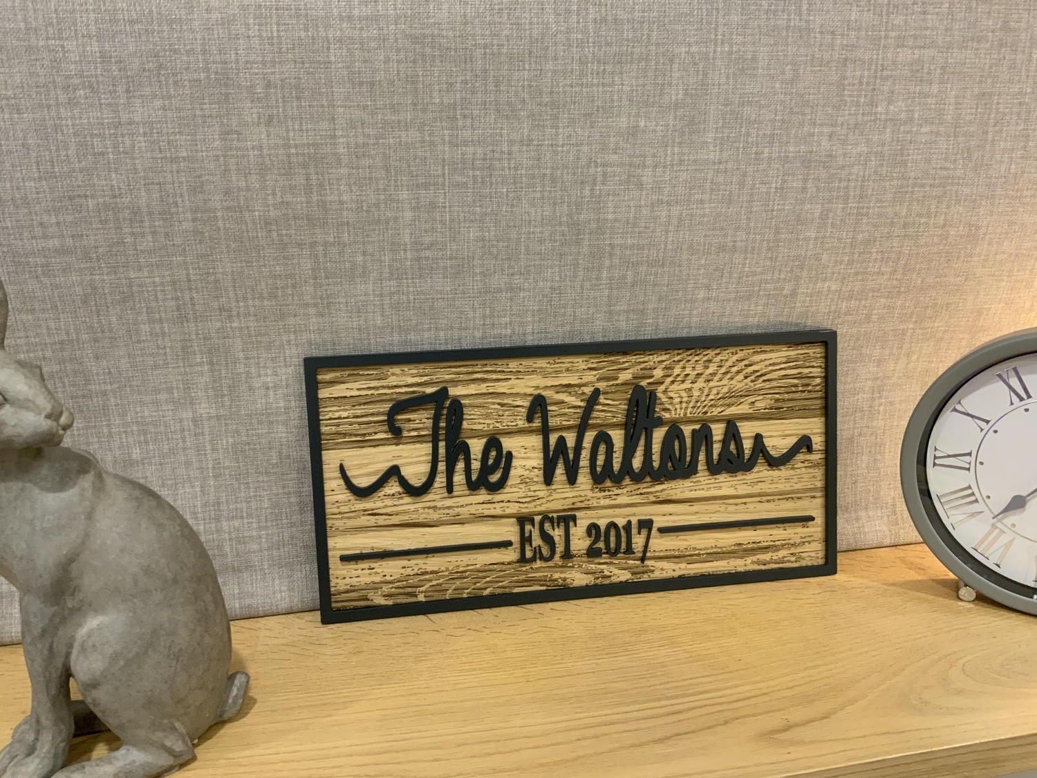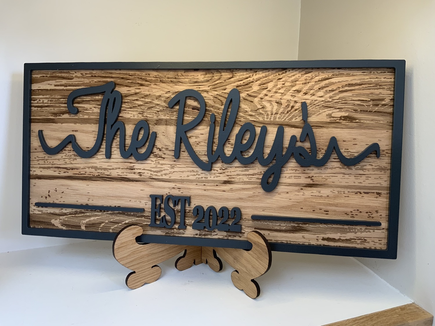 Feel a sense of pride growing within you when you display the name of your family or established date on one of our beautiful Personalized Last Name Signs made from High Quality Oak veneer with Engraved wood grain.