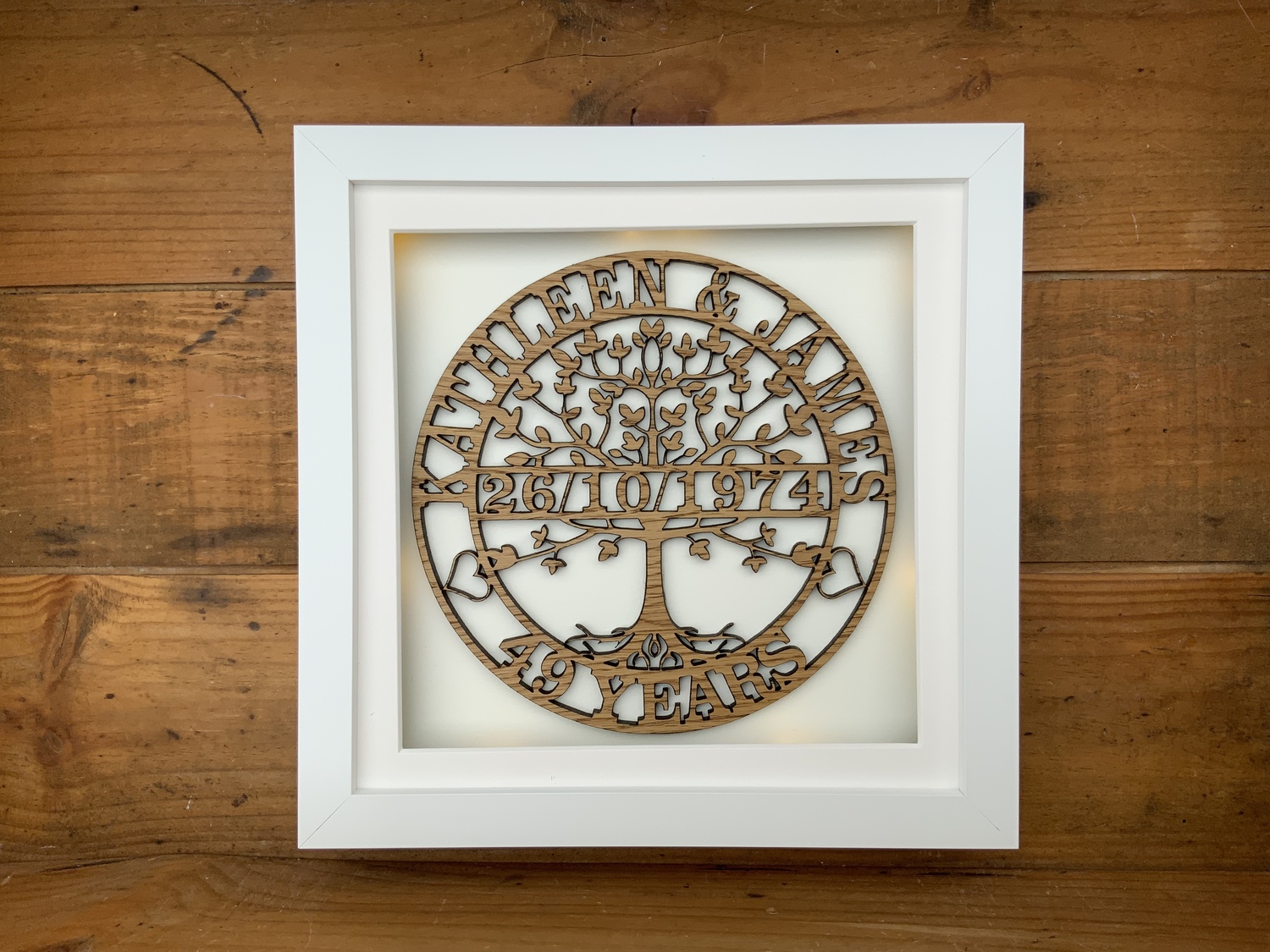 Celebrate a special milestone with this beautifully crafted personalised Tree of Life frame – a meaningful keepsake to mark a wedding anniversary.