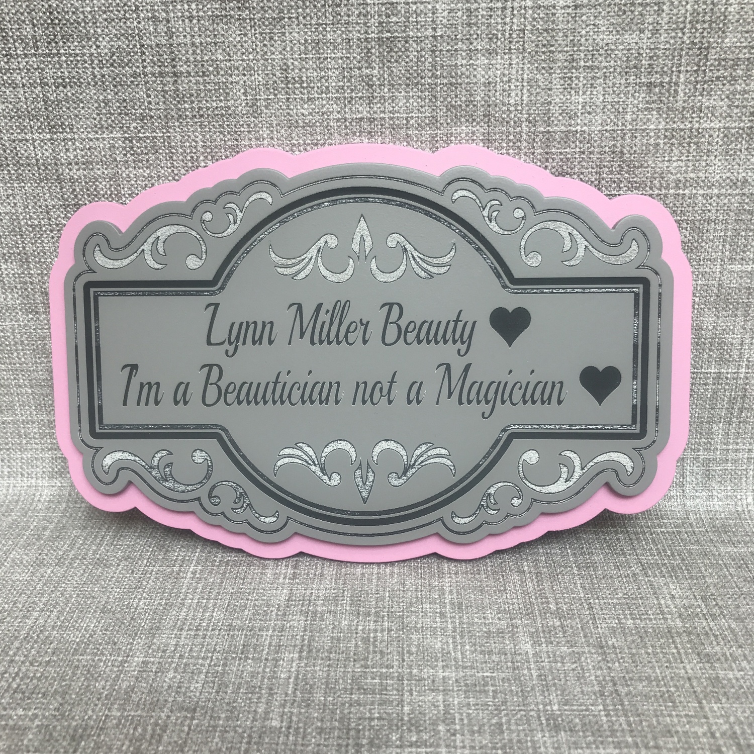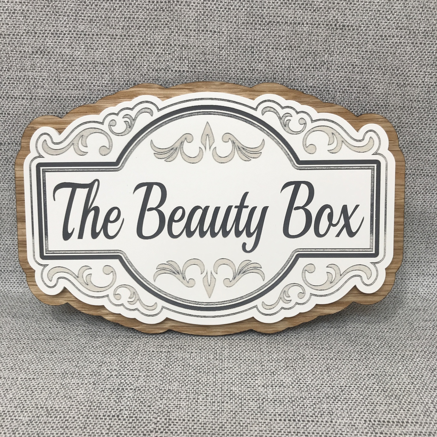 The sign is made from acrylic, mounted on an oak base or coloured base,
