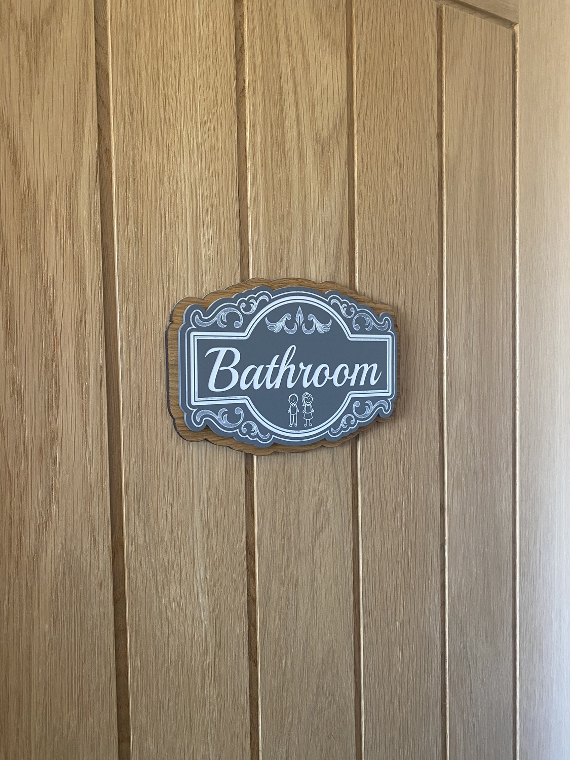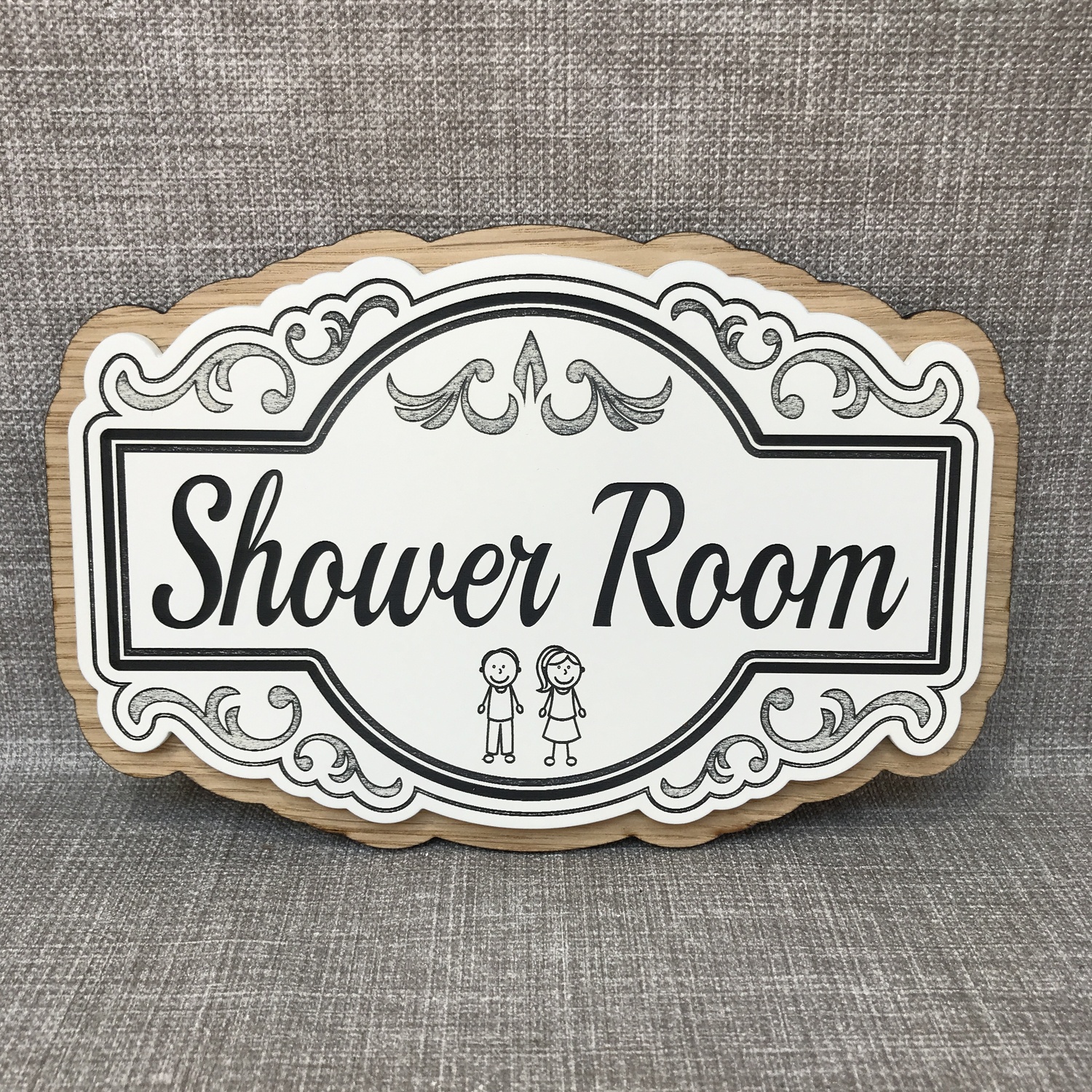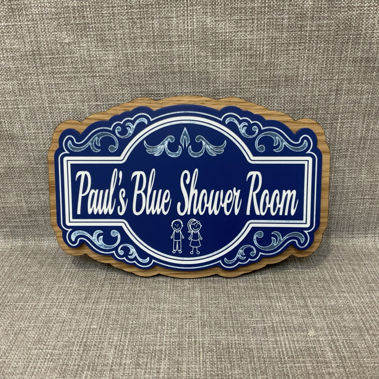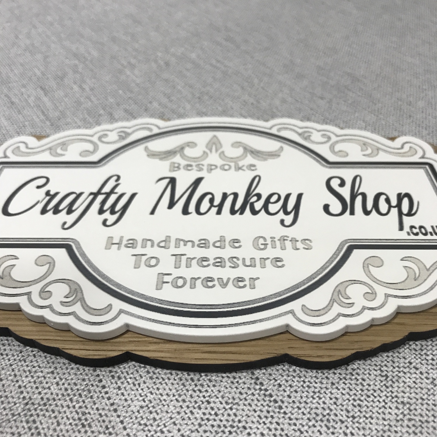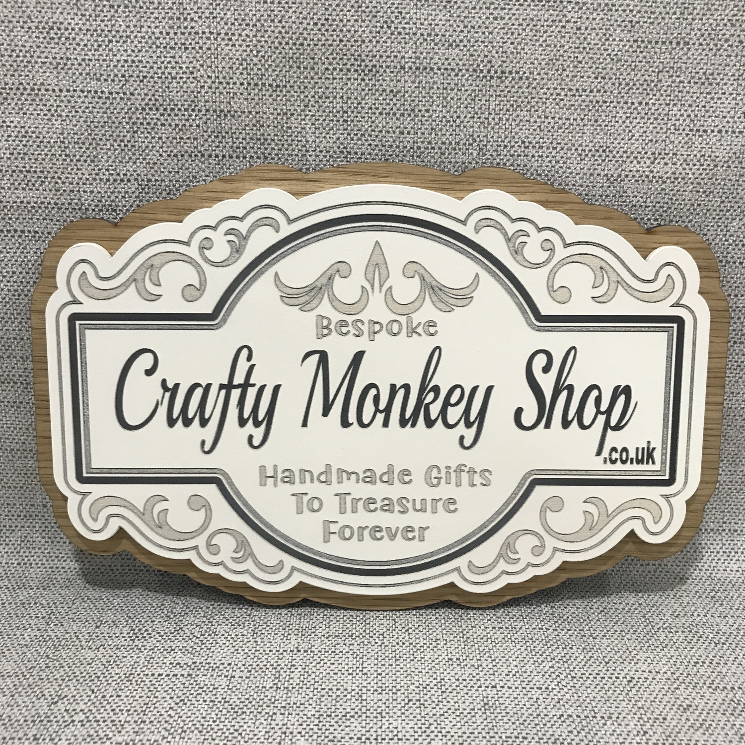 The sign is made from acrylic, mounted on an oak base or coloured base,