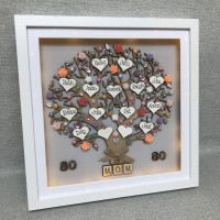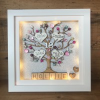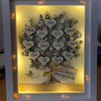 Text: Oh my word! I ordered our friends/ neighbours a personalised family tree frame with LED lights as they have just had a baby,, it is amazing!! excellent quality and looks unreal, the little finishes touches that were added were so thoughtful, think I will be ordering a few more friends and family gifts from here in the future, and an added bonus it took less than a week from ordering to arriving, thank you so much, you are brilliant at what you do @ Crafty Monkey xx