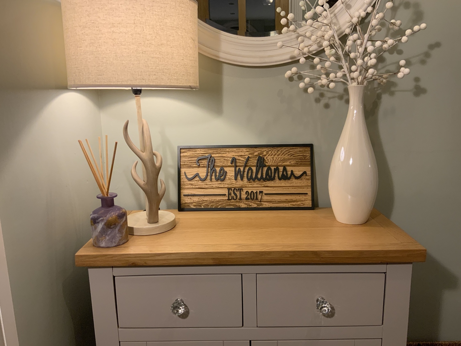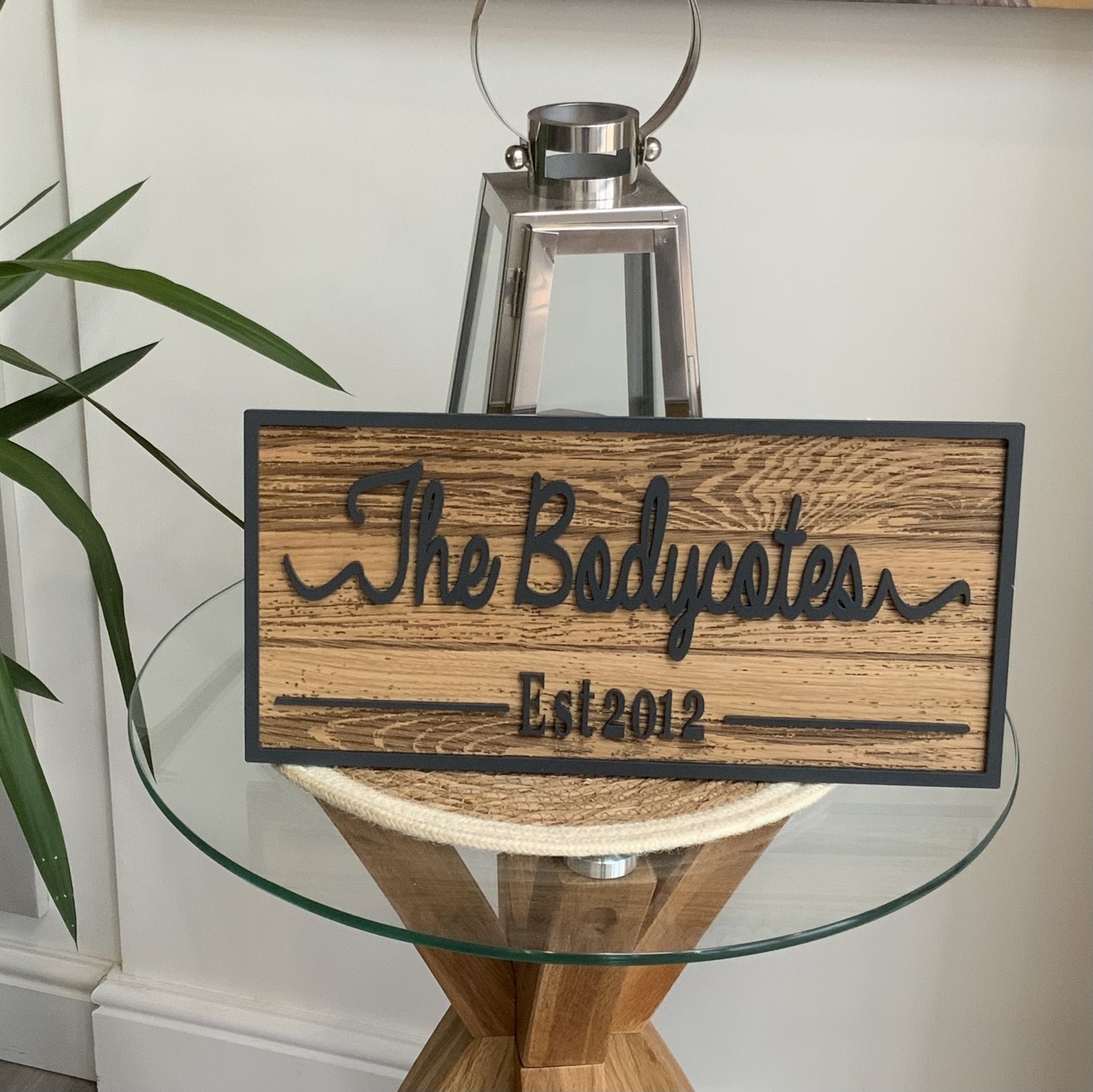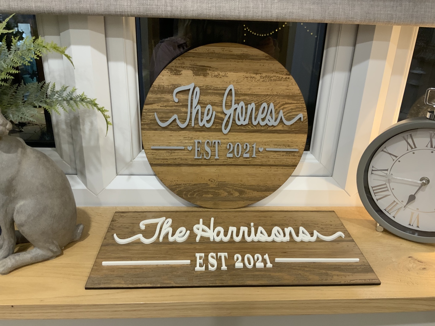 Feel a sense of pride growing within you when you display the name of your family or established date on one of our beautiful Personalized Last Name Signs made from High Quality Oak veneer with Engraved wood grain.